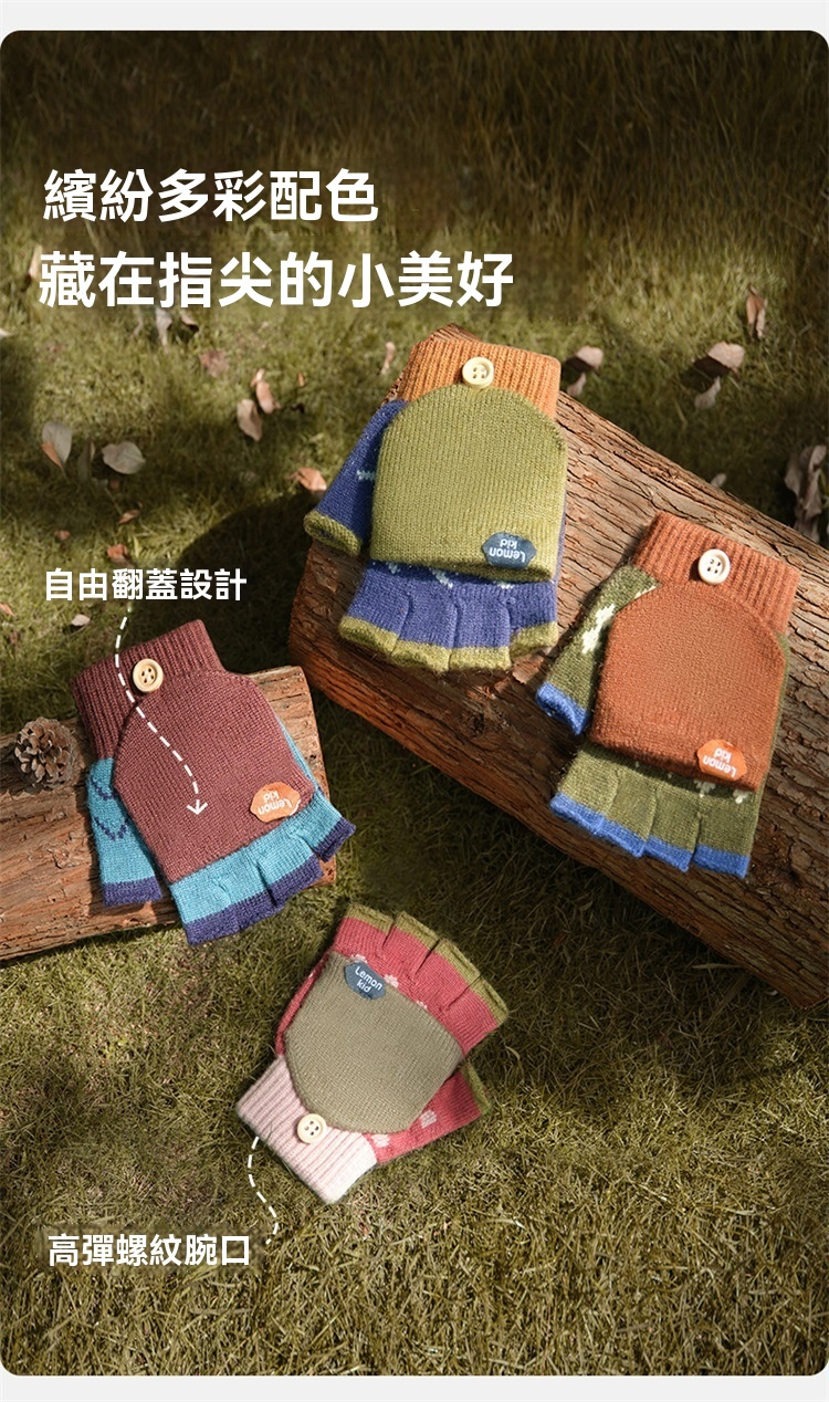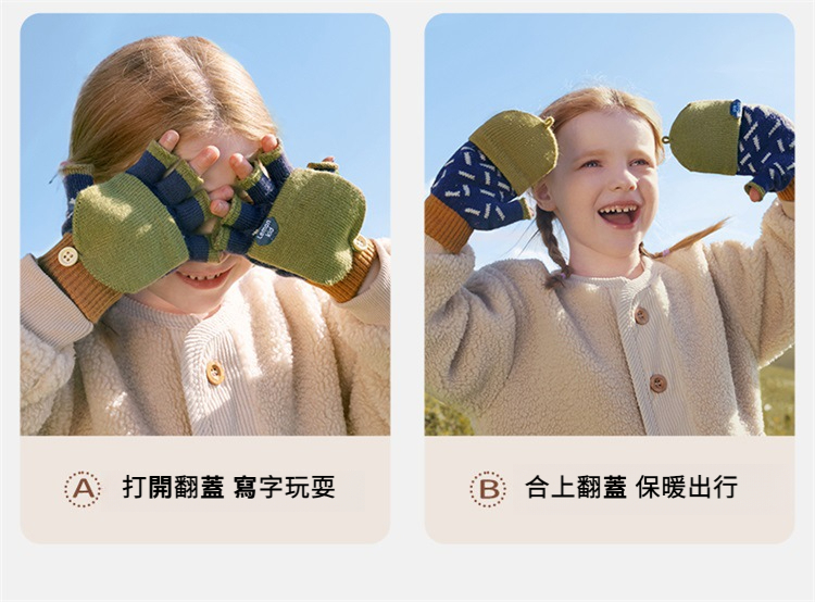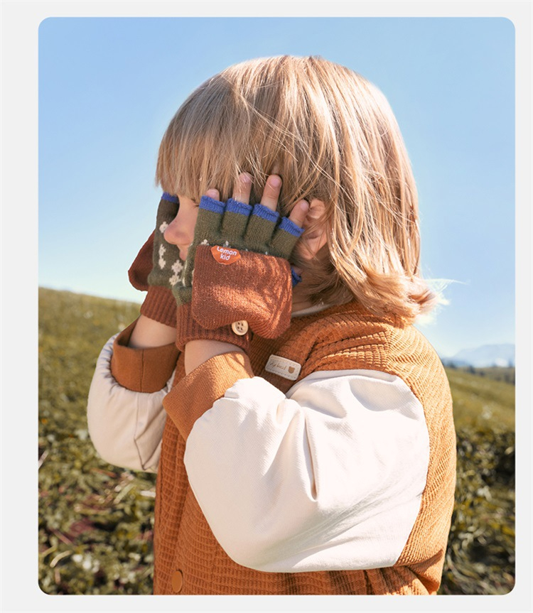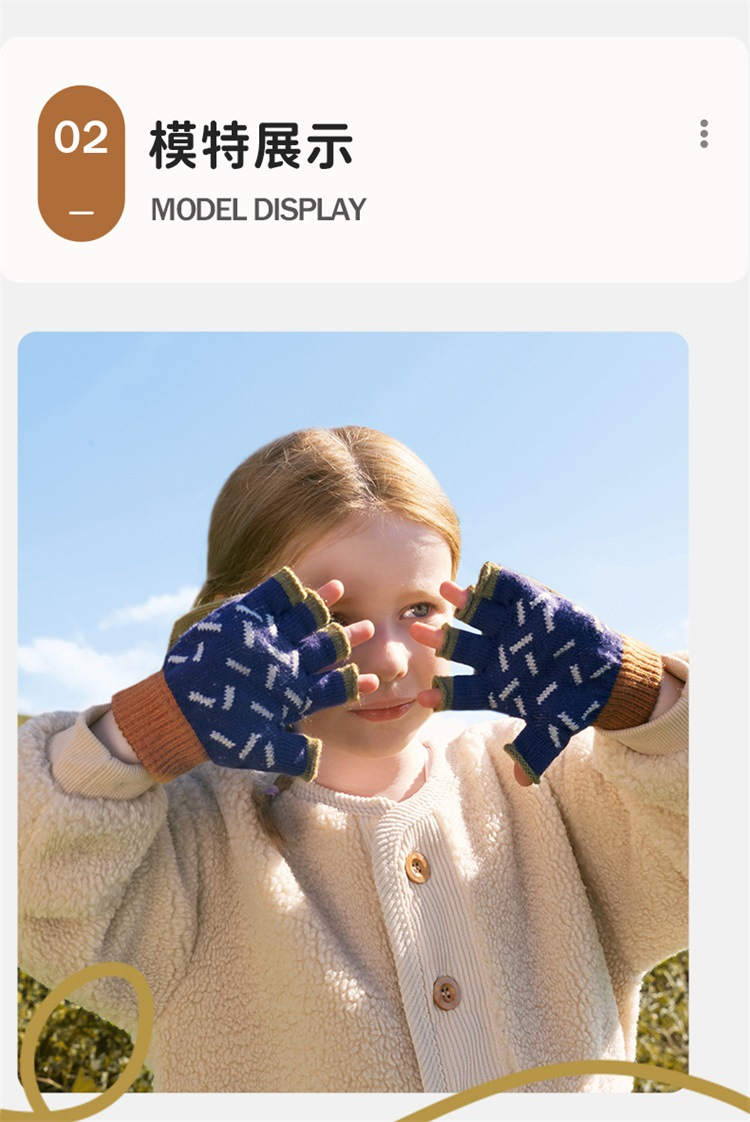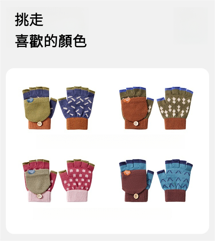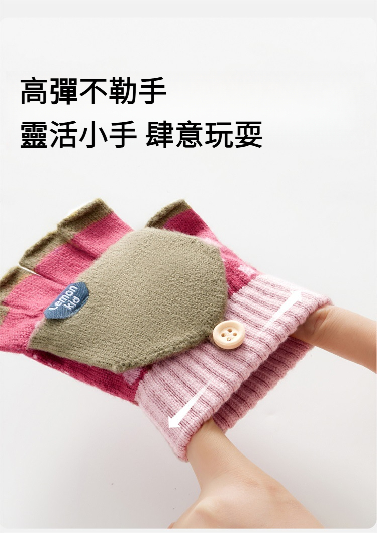 兒童冬季五指半指翻蓋手套