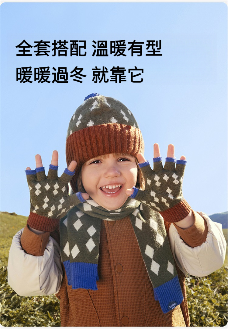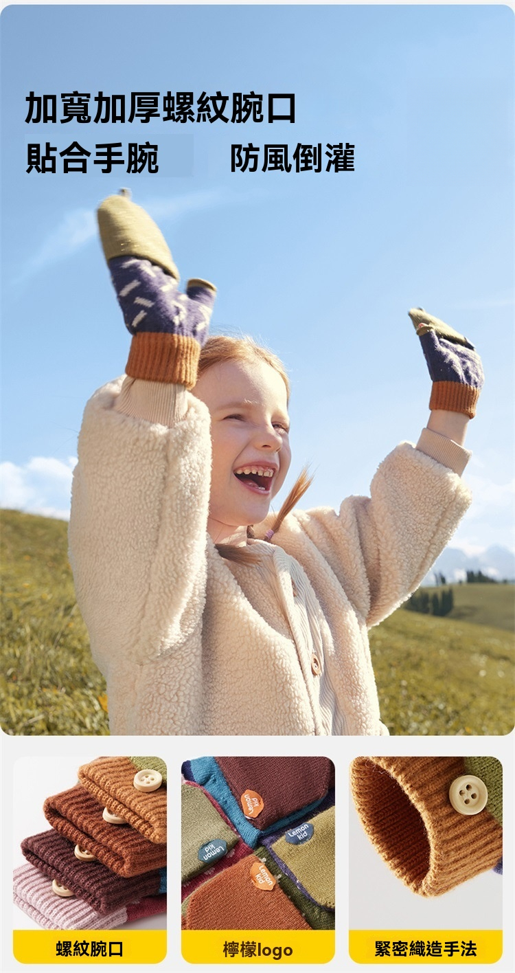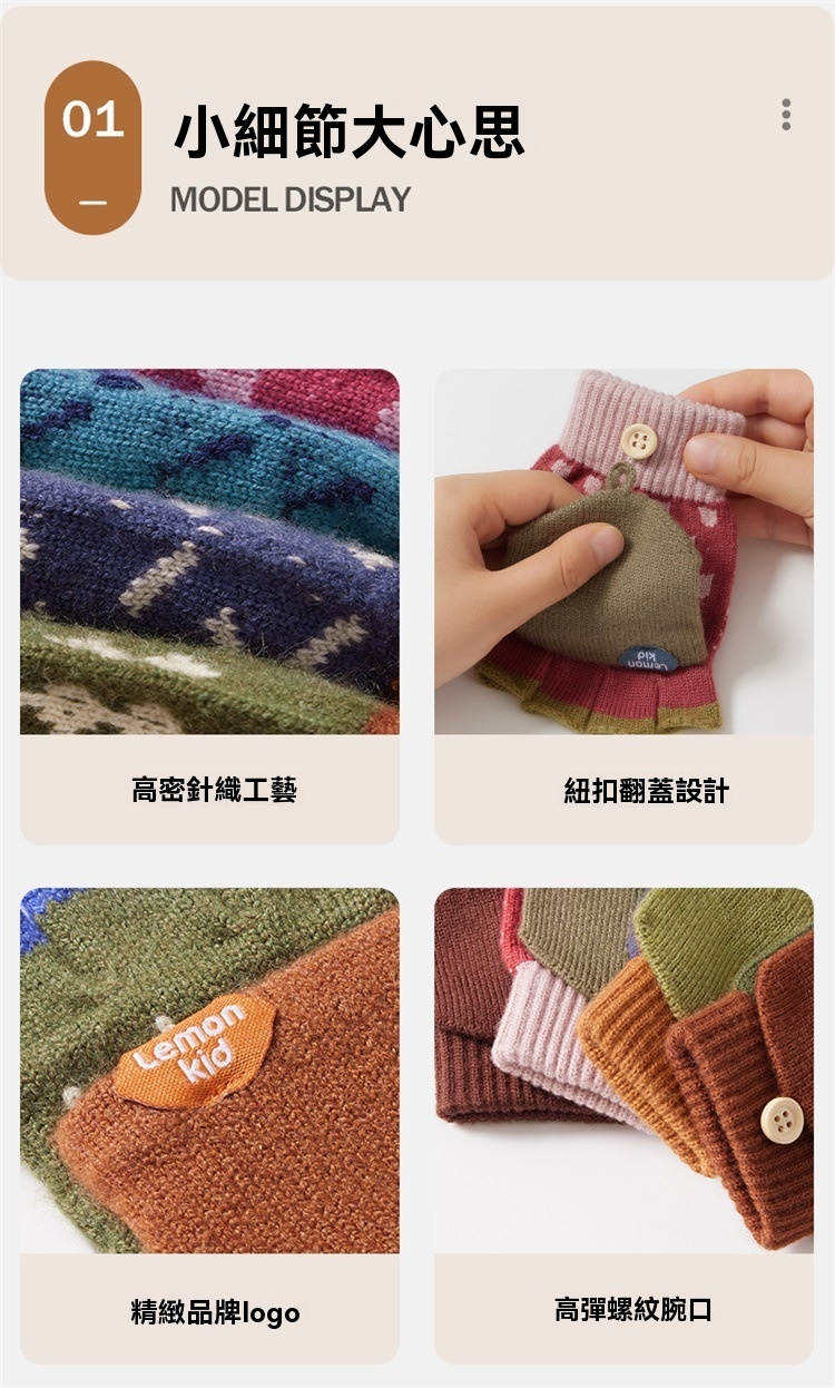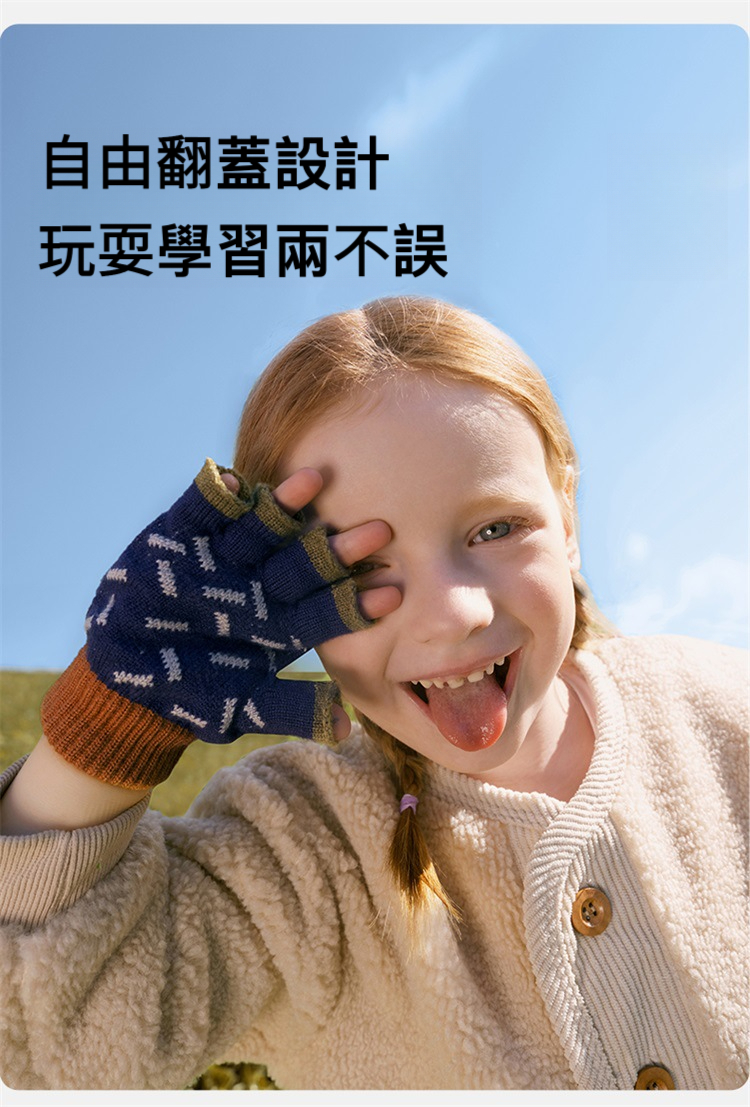 兒童冬季五指半指翻蓋手套