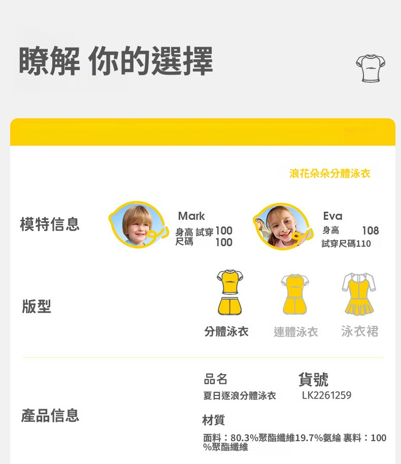 兒童分體夏季防曬泳衣