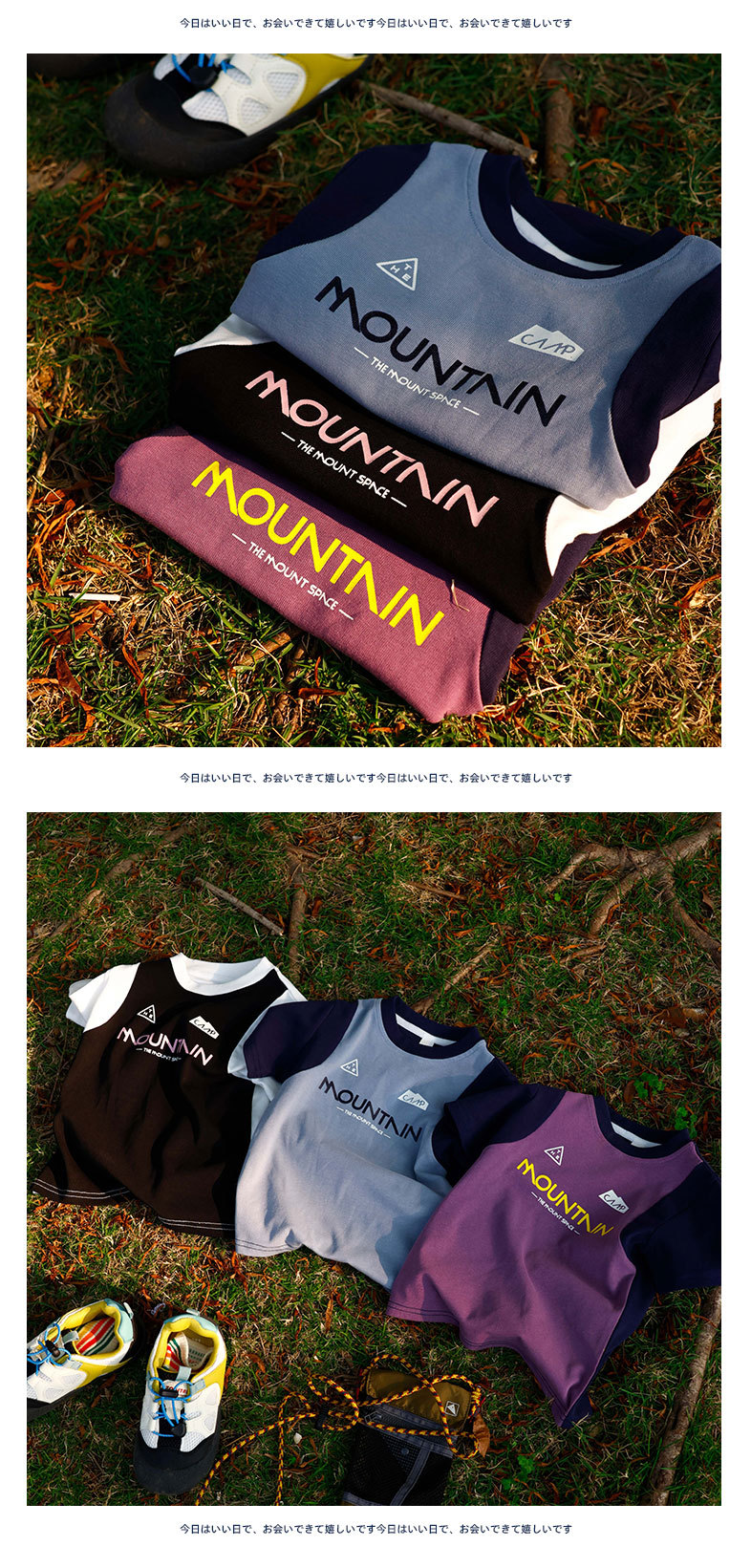 兒童山系撞色拼接圓領短袖t恤親子裝