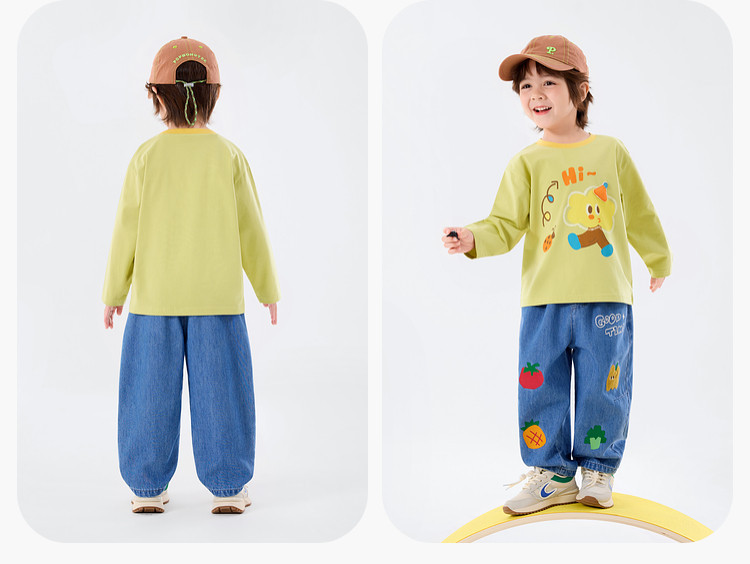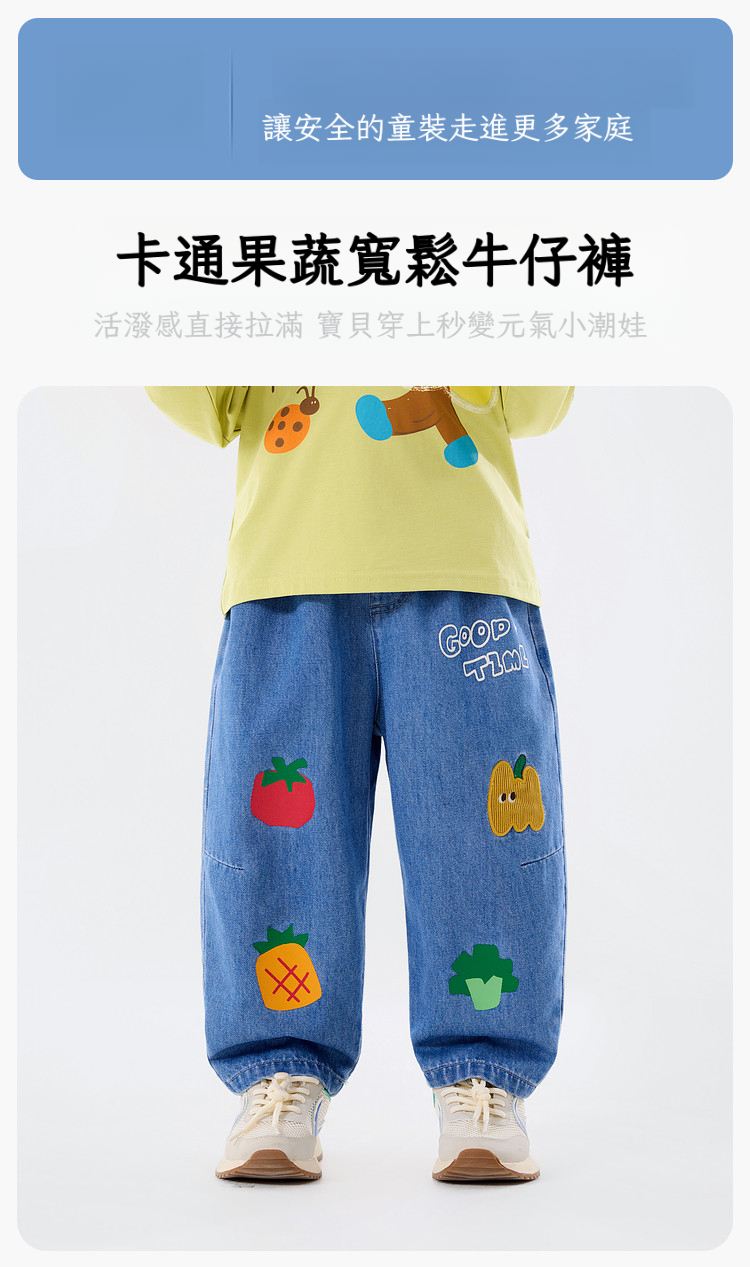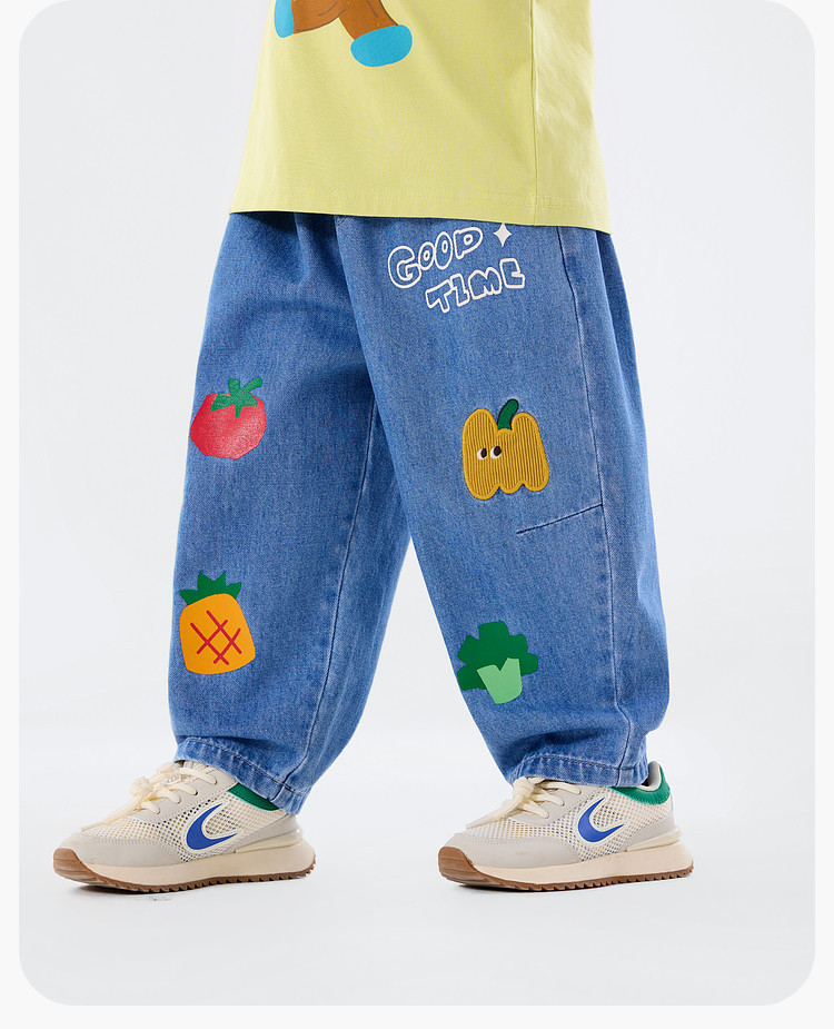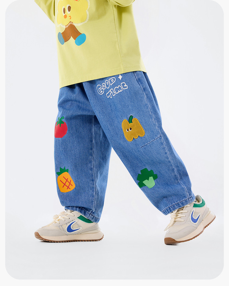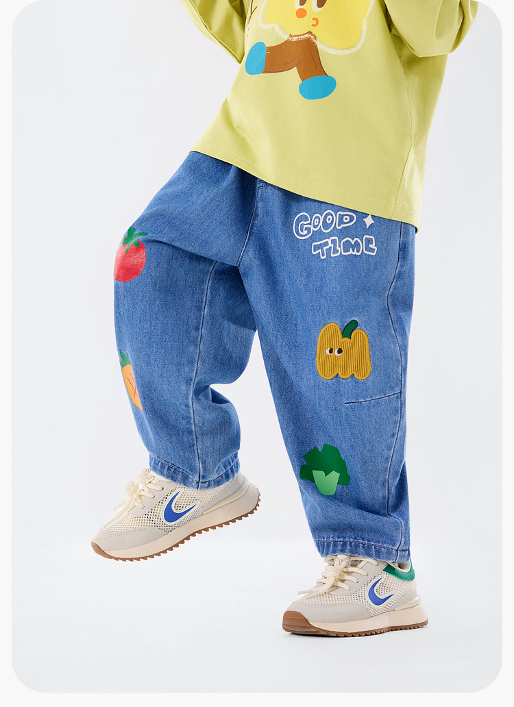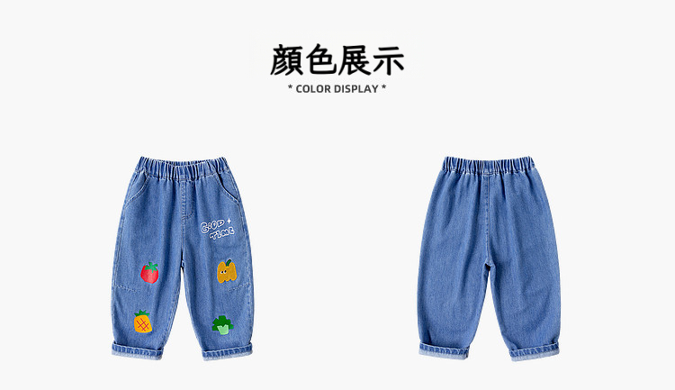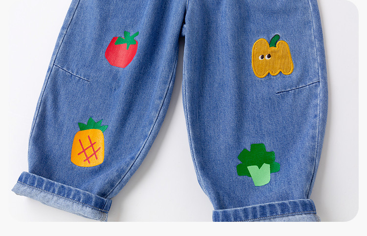 兒童春季卡通果蔬寬鬆休閒牛仔褲
