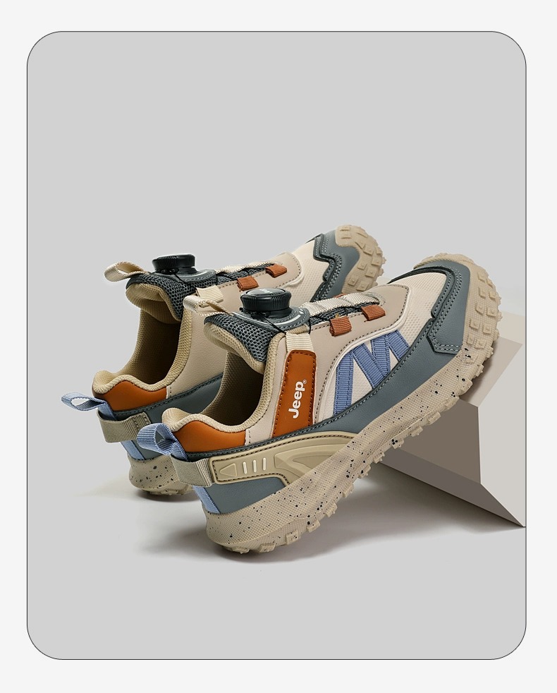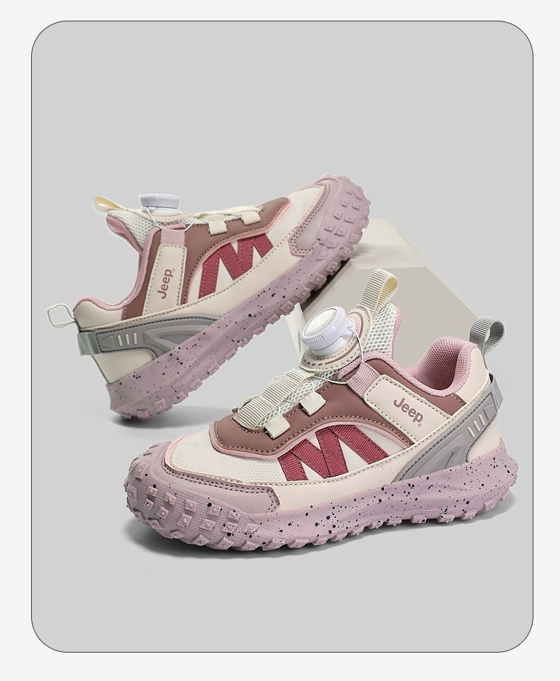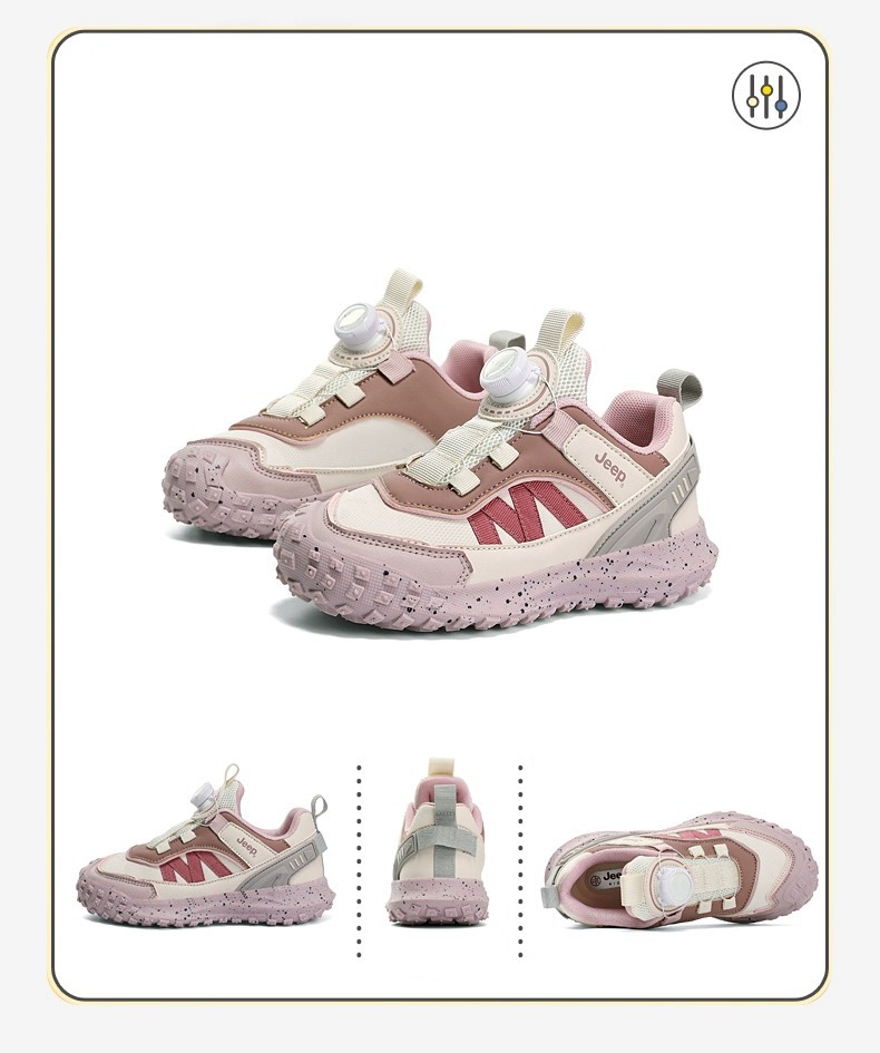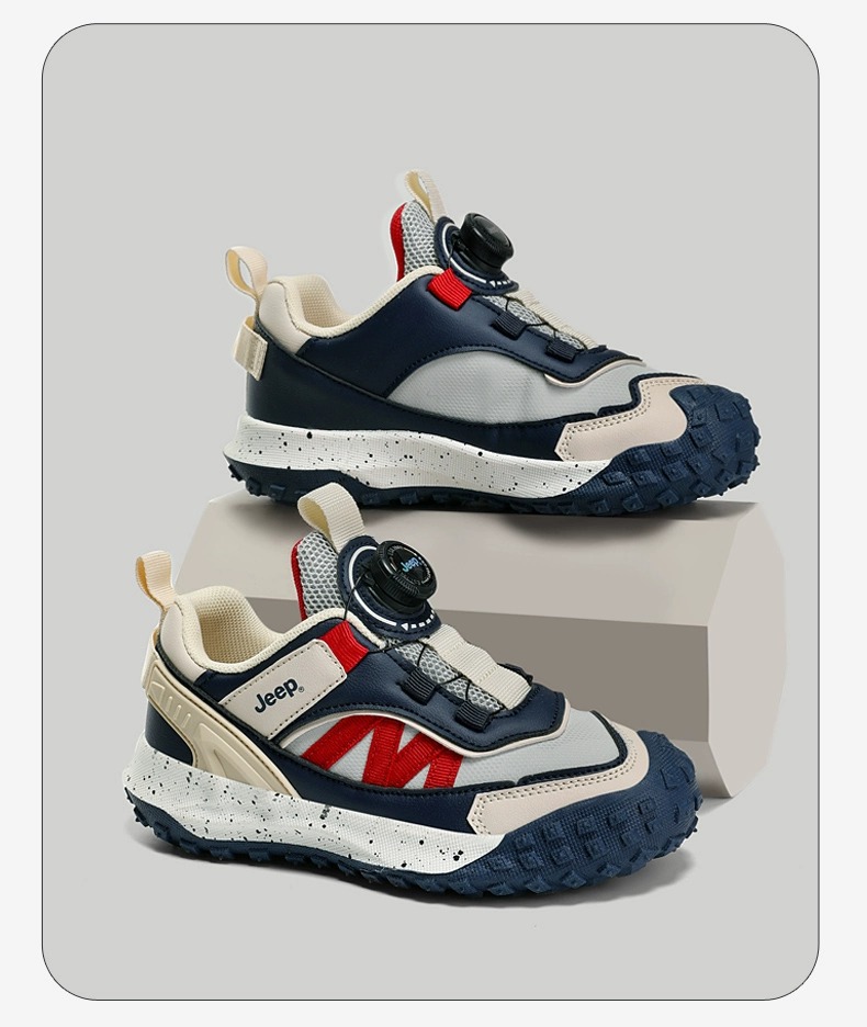 兒童春秋紐扣防滑登山跑步鞋
