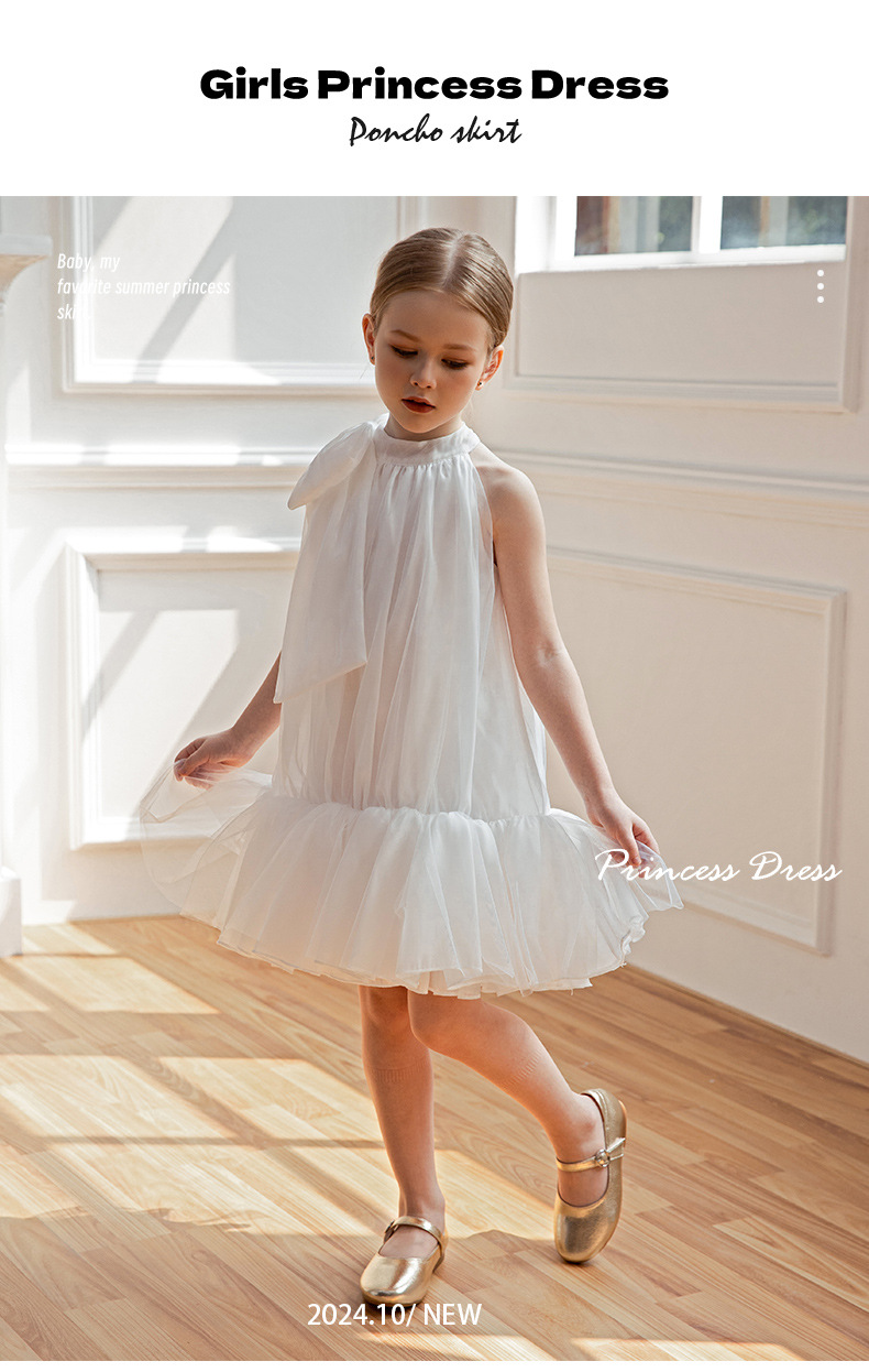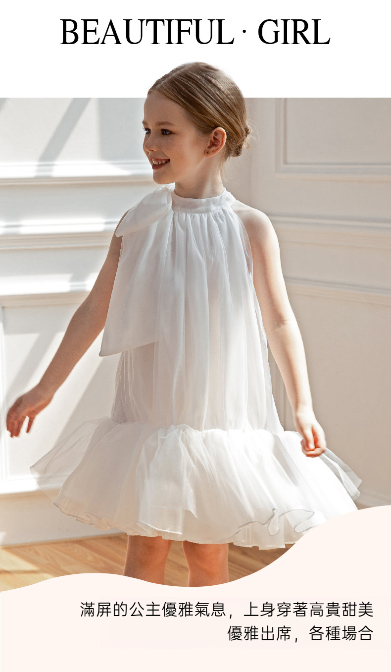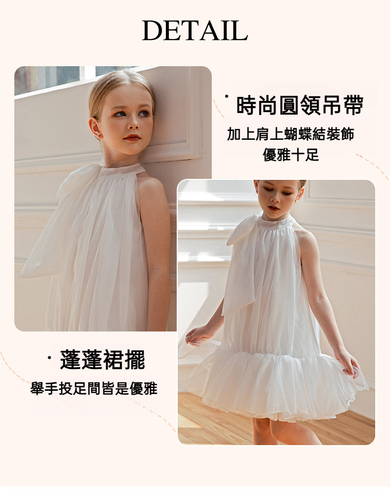 兒童時尚吊帶圓領蓬蓬裙
