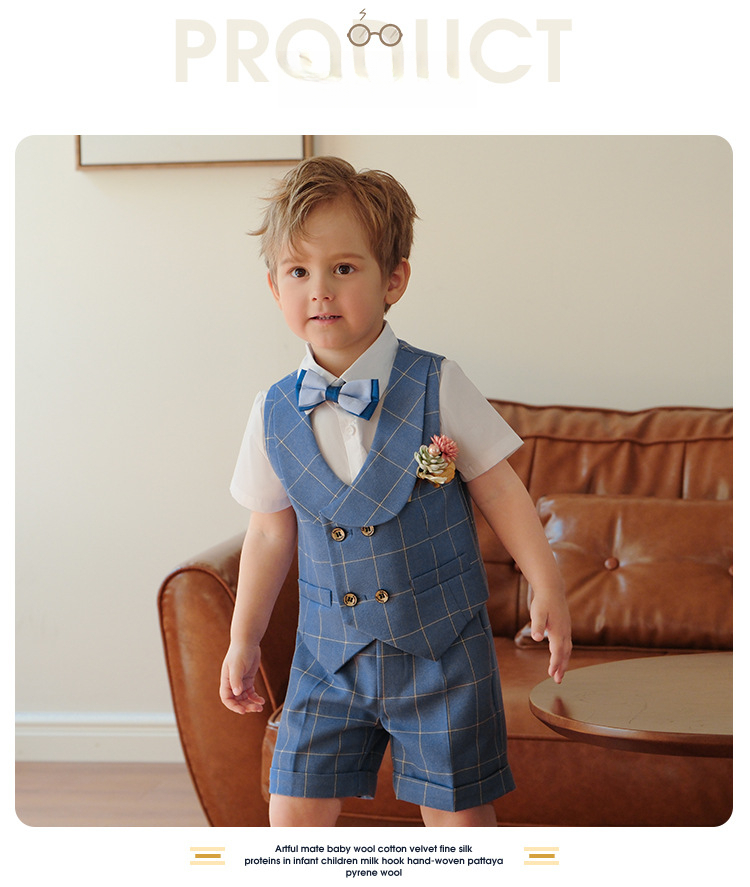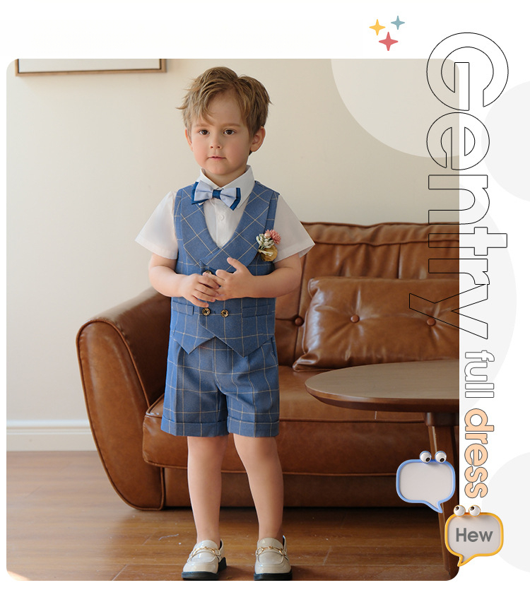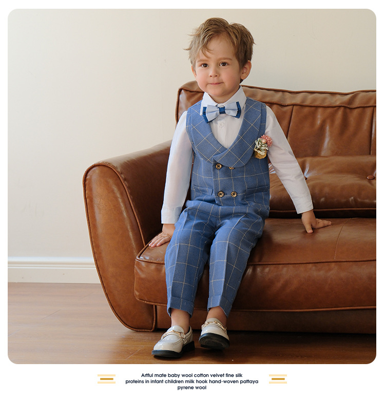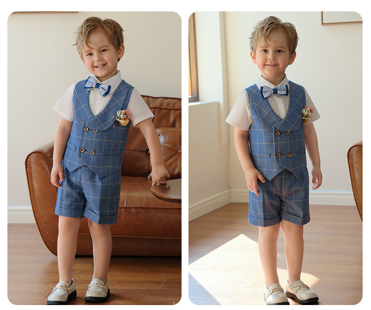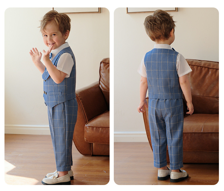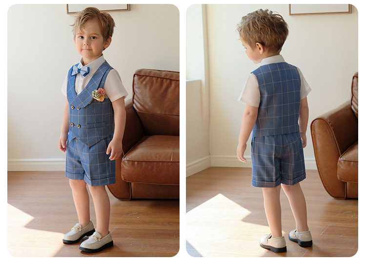兒童男童格子西服套裝
