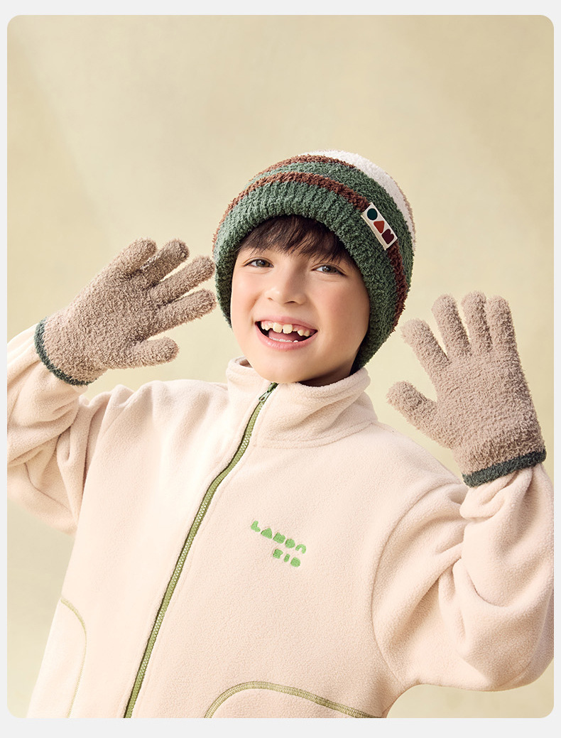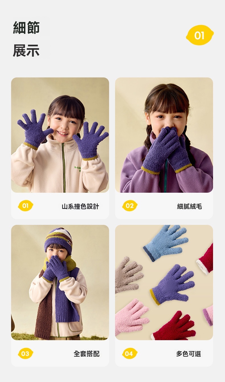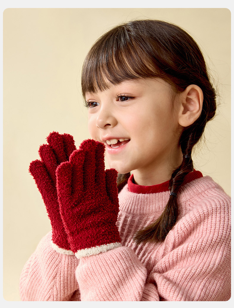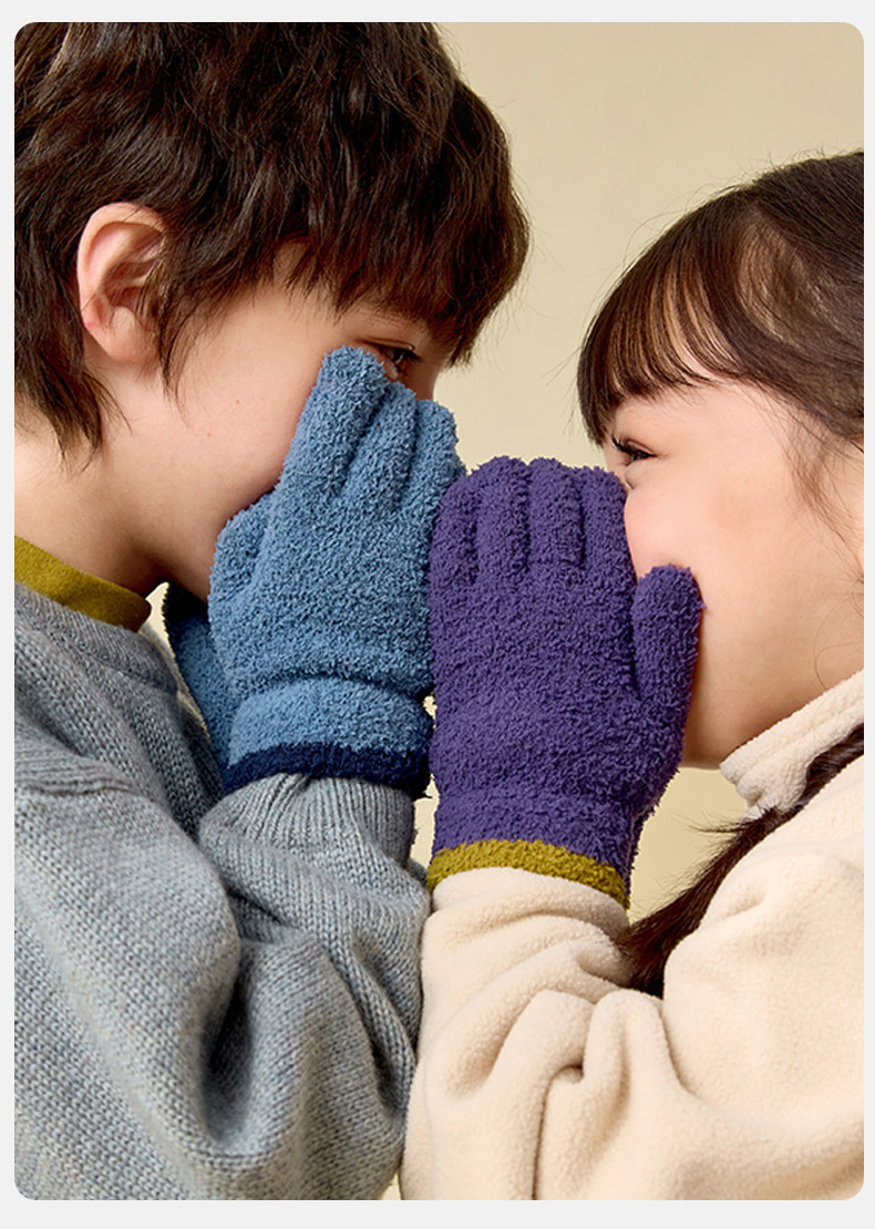 兒童秋冬抗靜電毛絨戶外防風手套