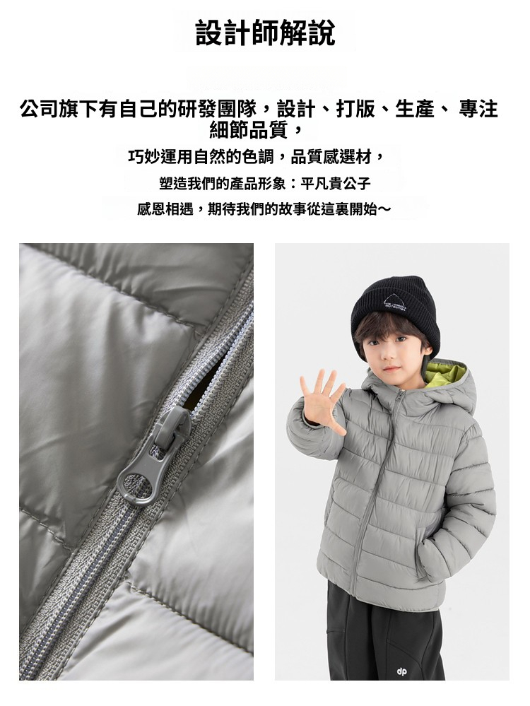 兒童秋冬雲感連帽防潑水棉服