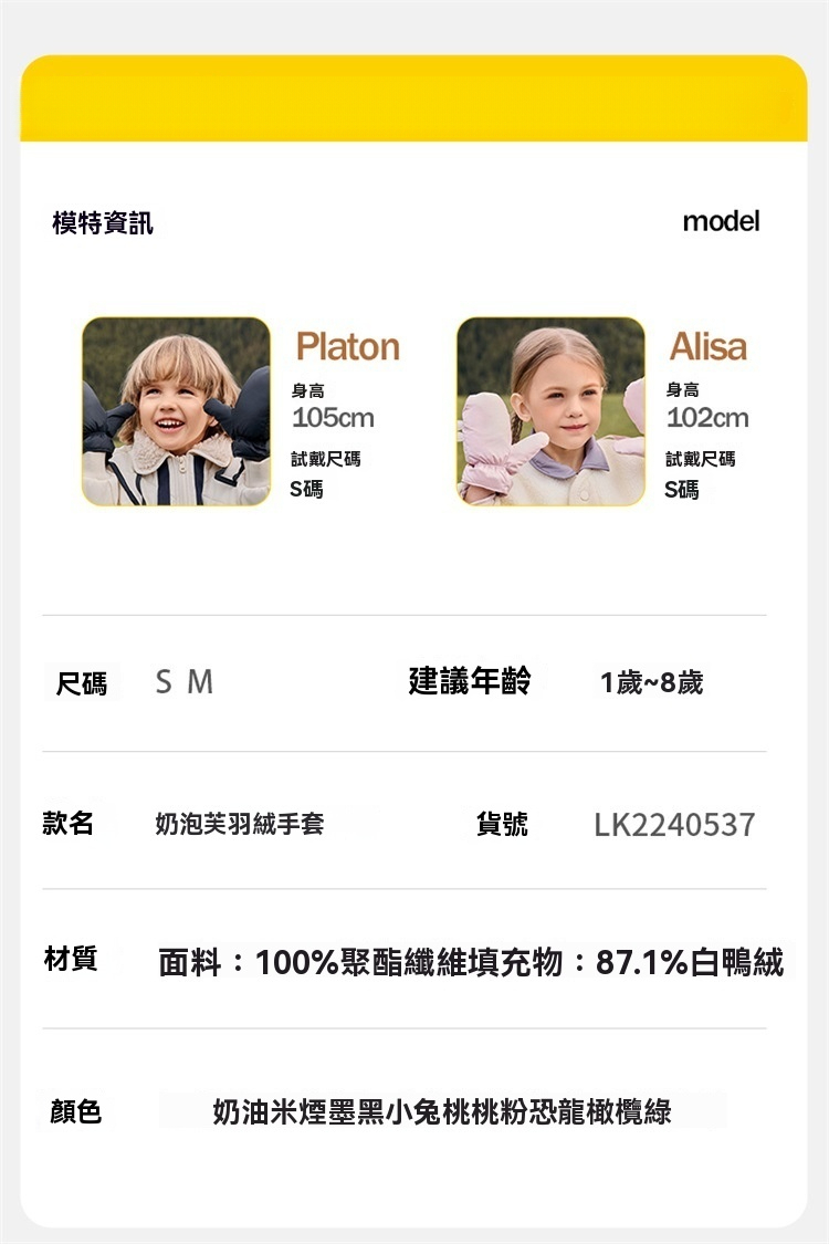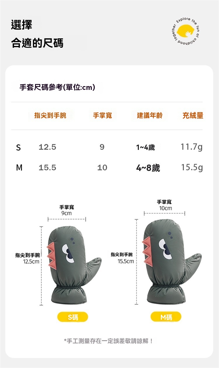 兒童羽絨保暖手套