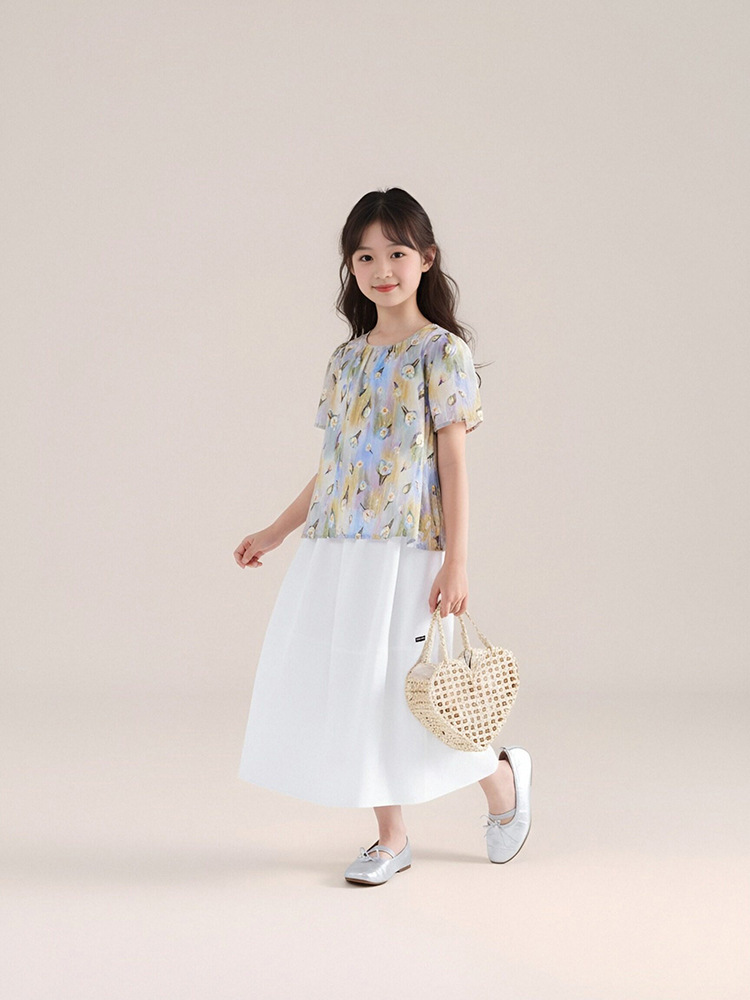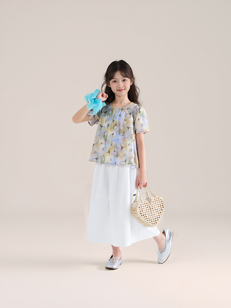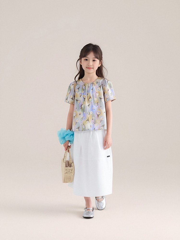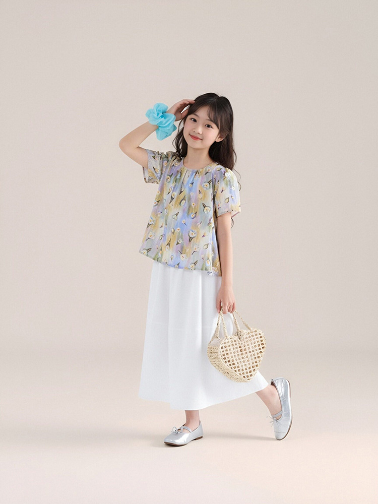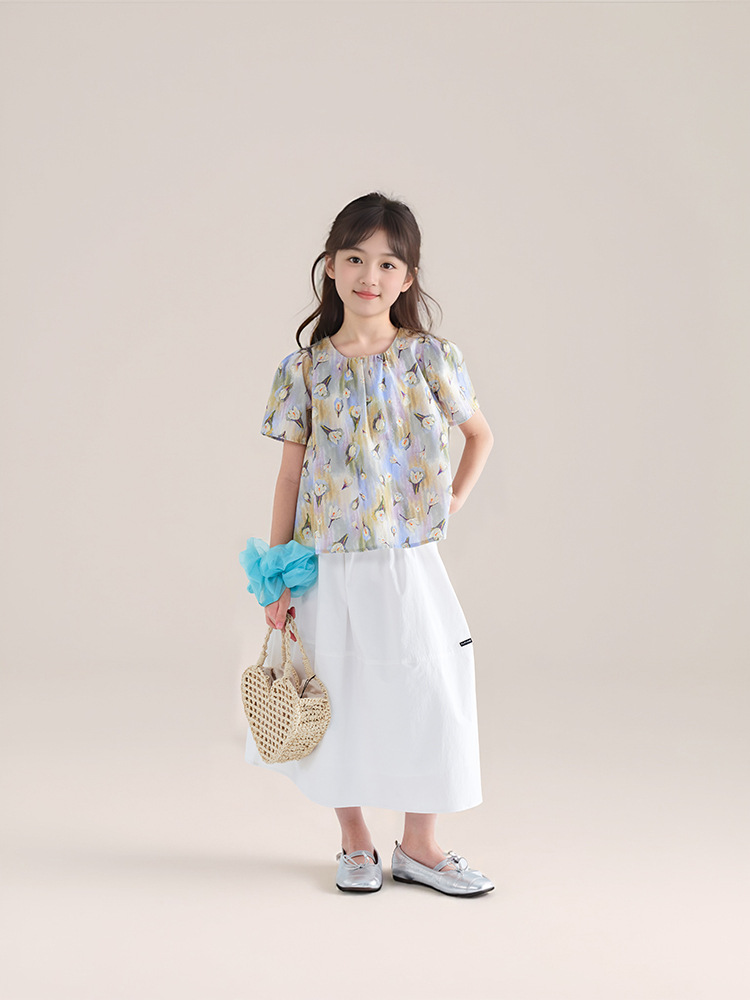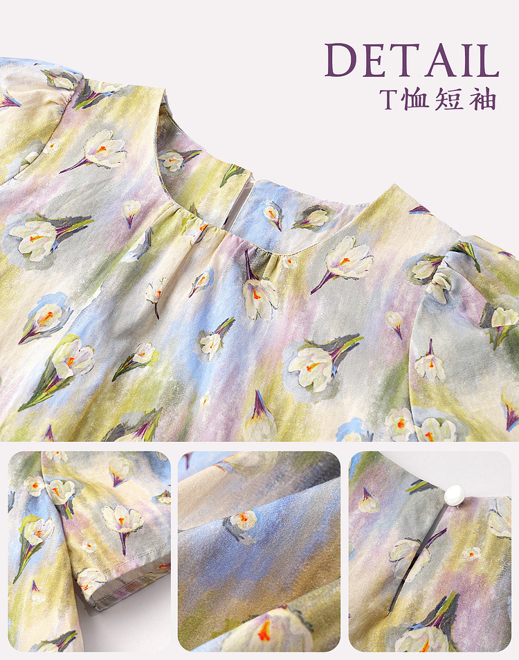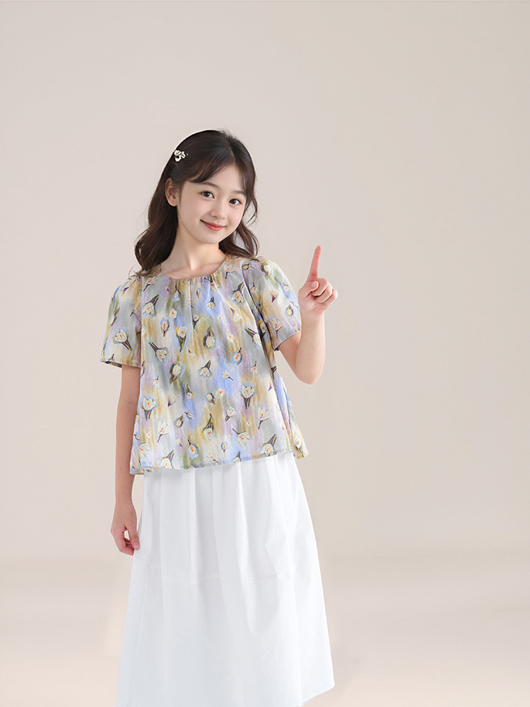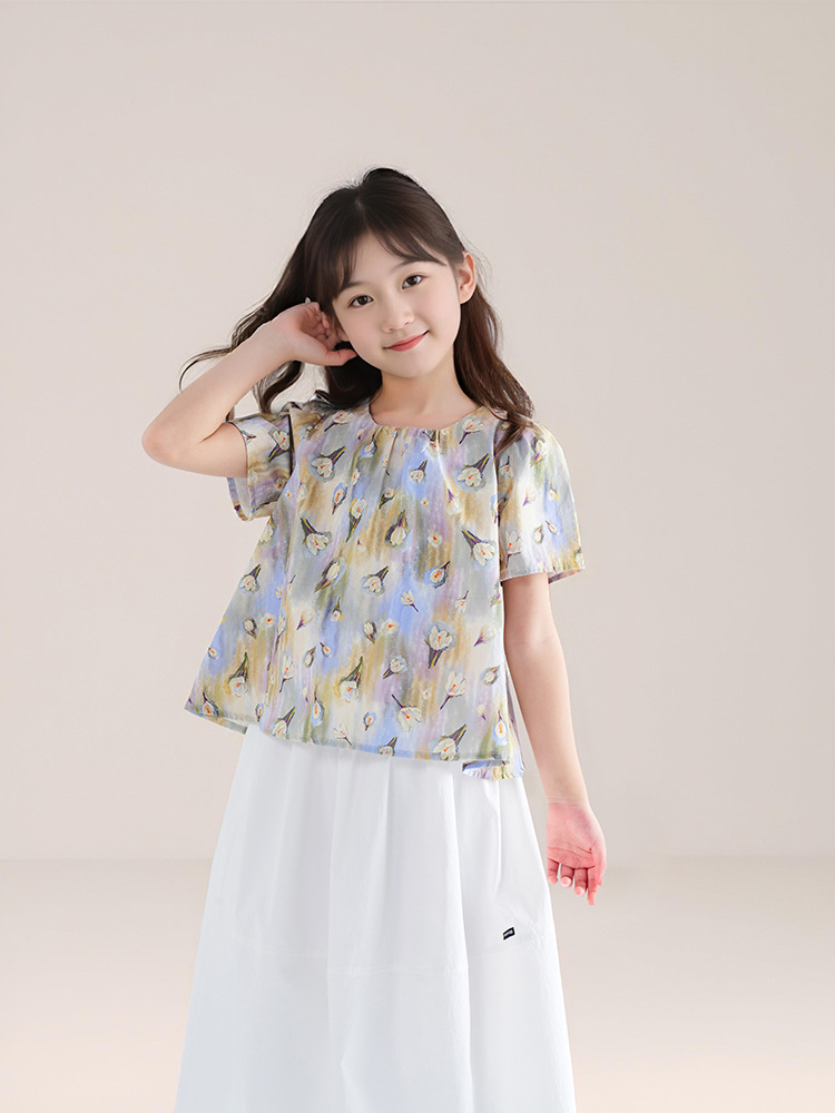 夏季新款女童莫奈碎花短䄂上衣