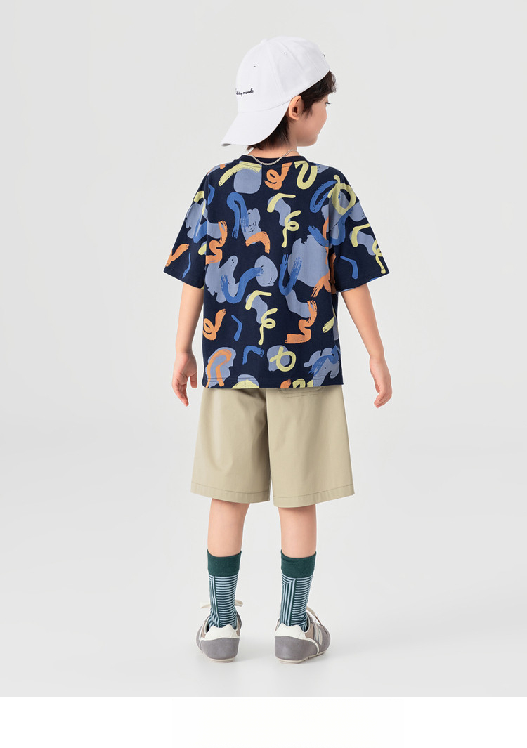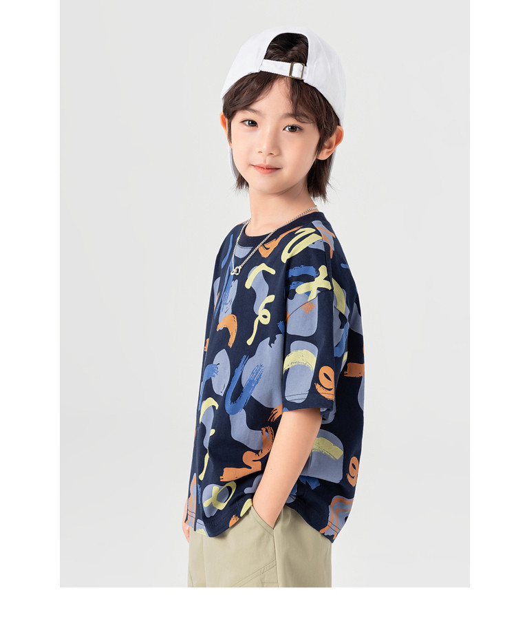 夏季男童花版滿印百搭舒適軟糯冰感短袖