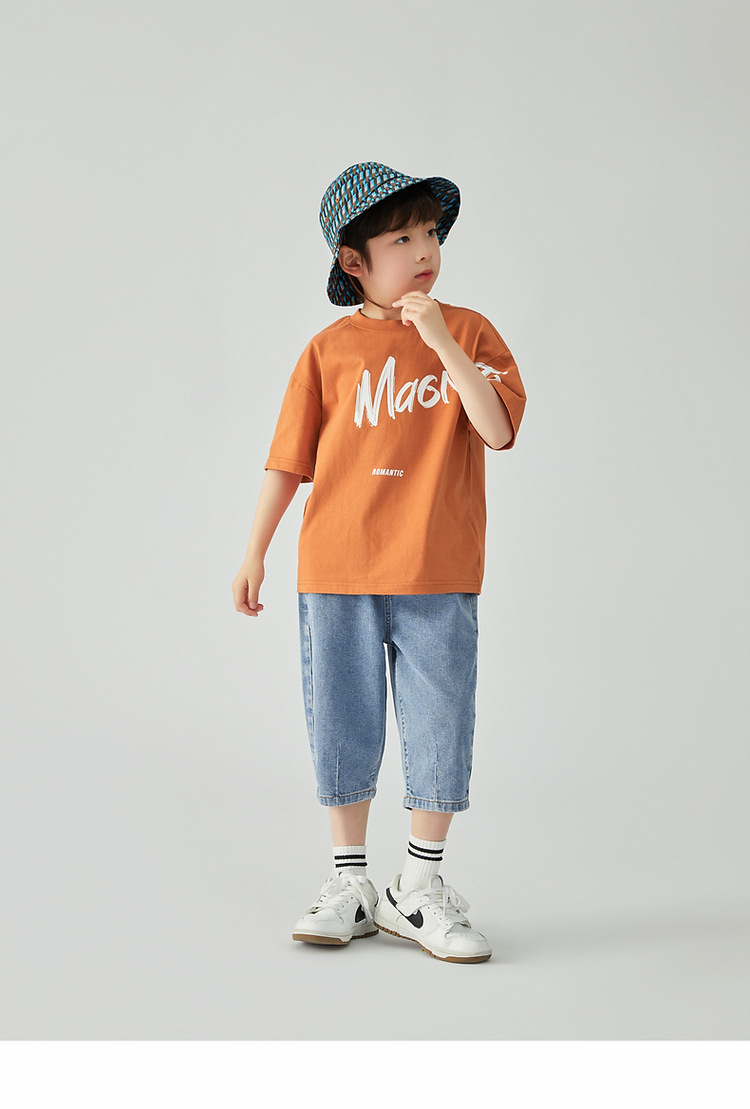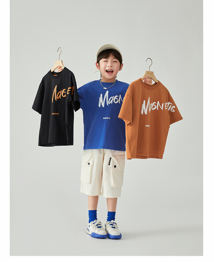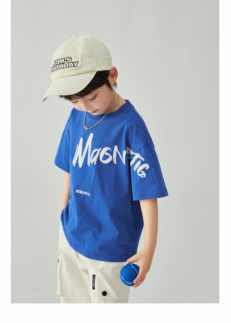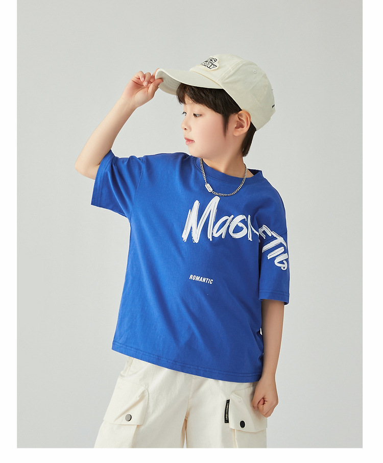 夏季男童薄款涼感印花短袖運動休閑純棉上衣