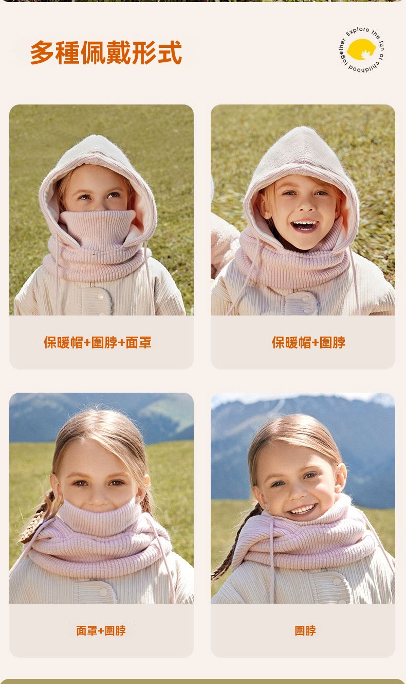 女兒童秋冬帽子圍巾一體雙面可戴防風護耳
