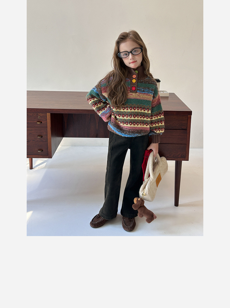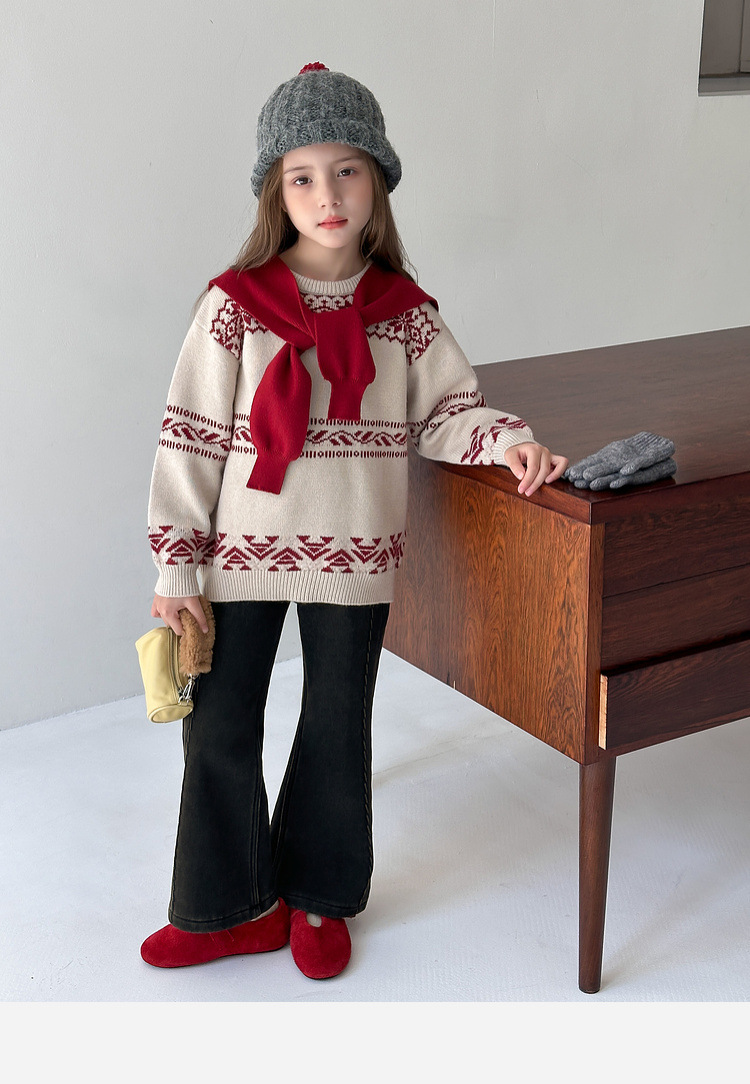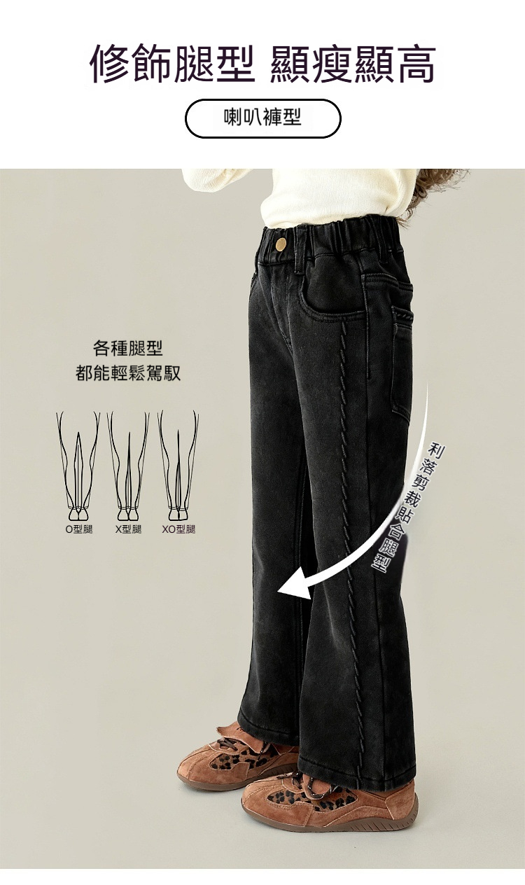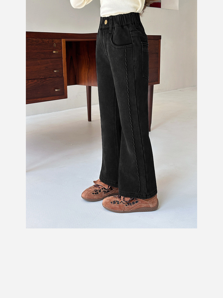 女童加絨牛仔喇叭褲
