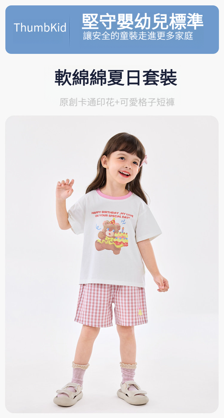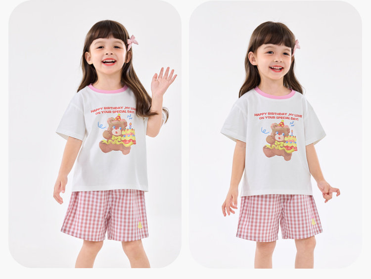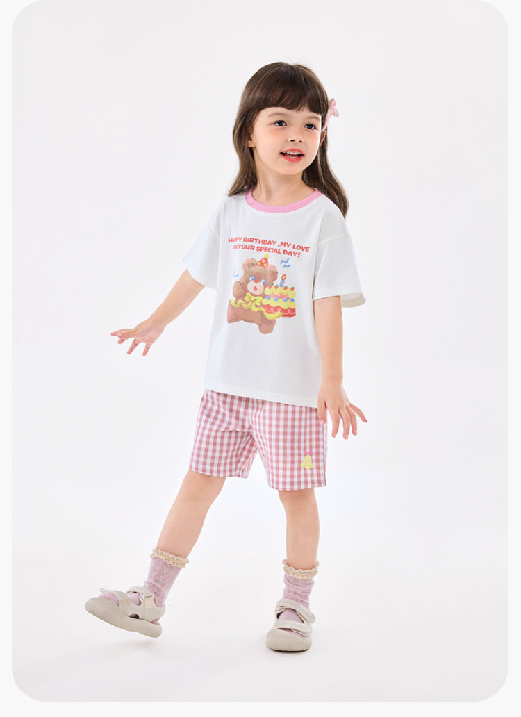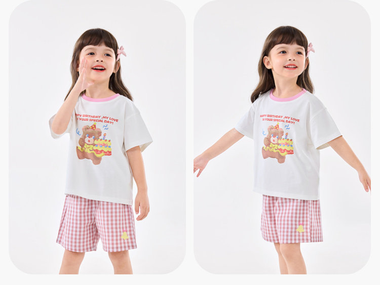 女童夏季卡通刺繡甜美短袖短褲兩件套