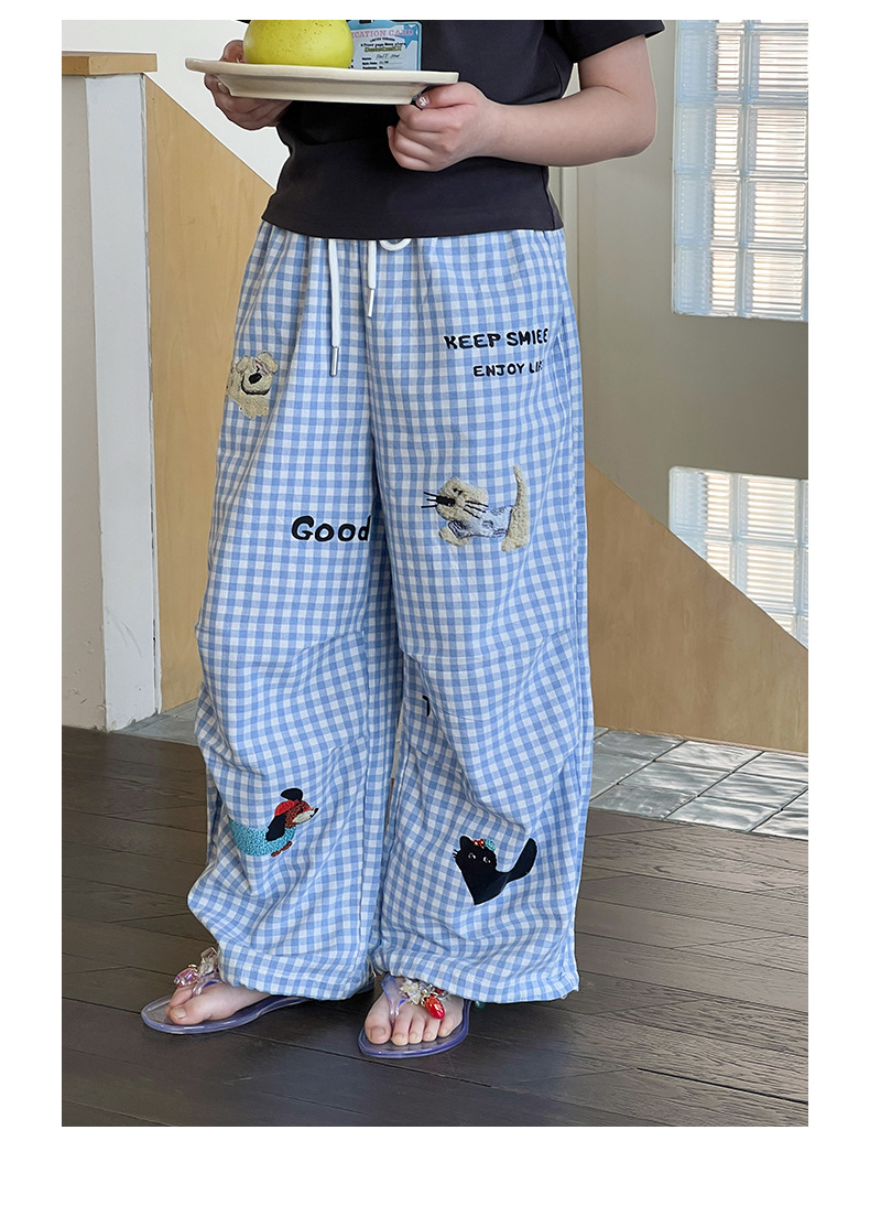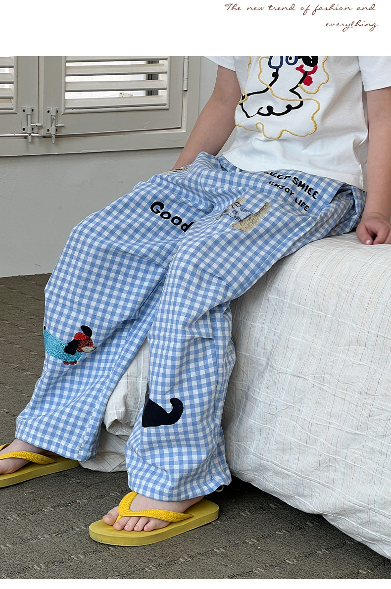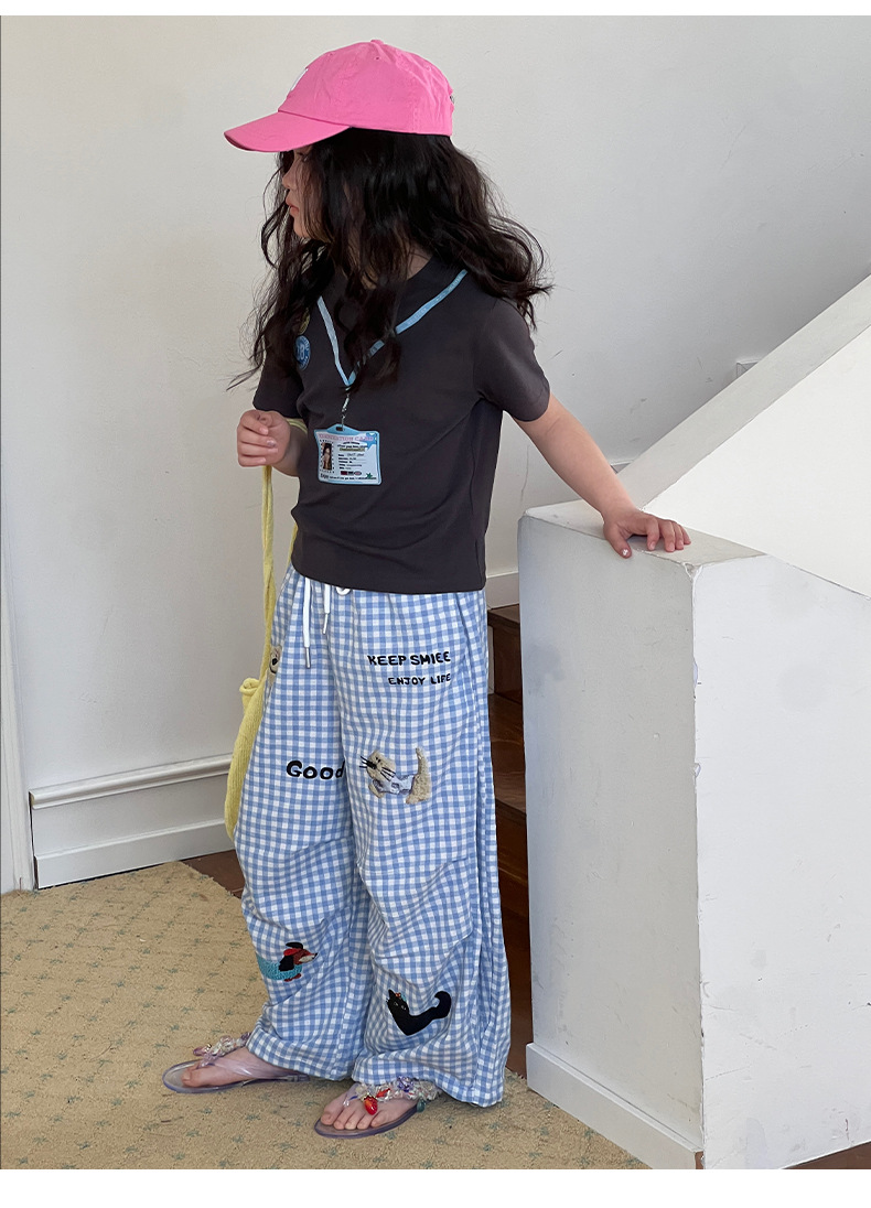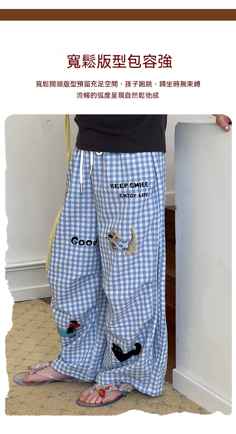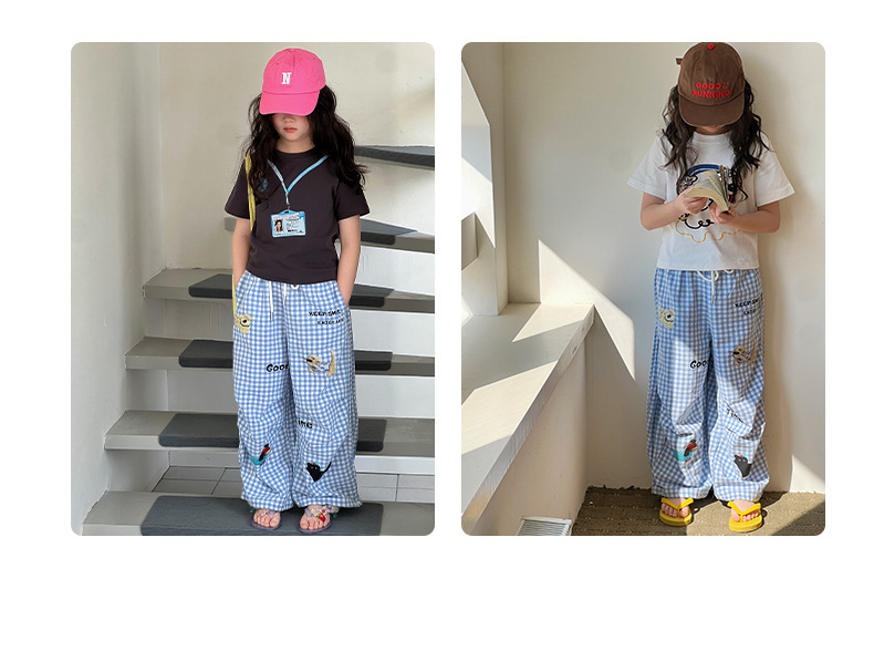 女童夏季卡通刺繡直筒沙灘闊腿褲