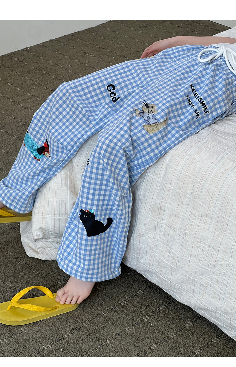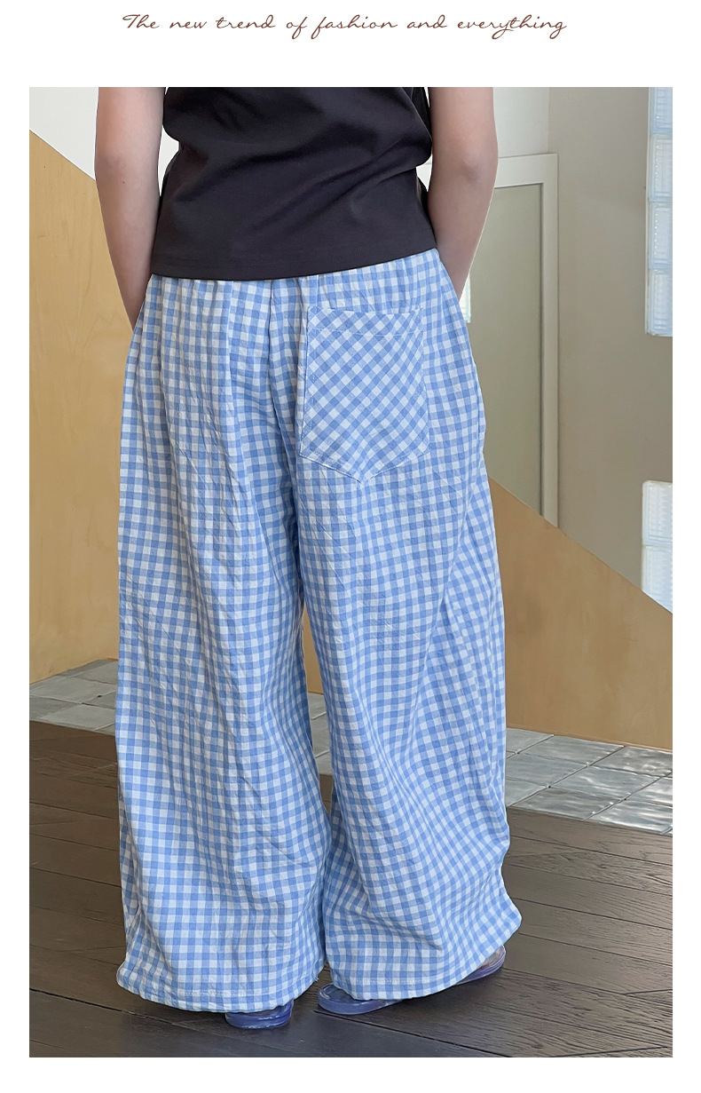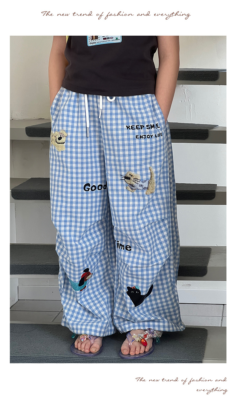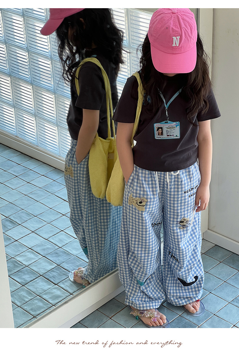 女童夏季卡通刺繡直筒沙灘闊腿褲