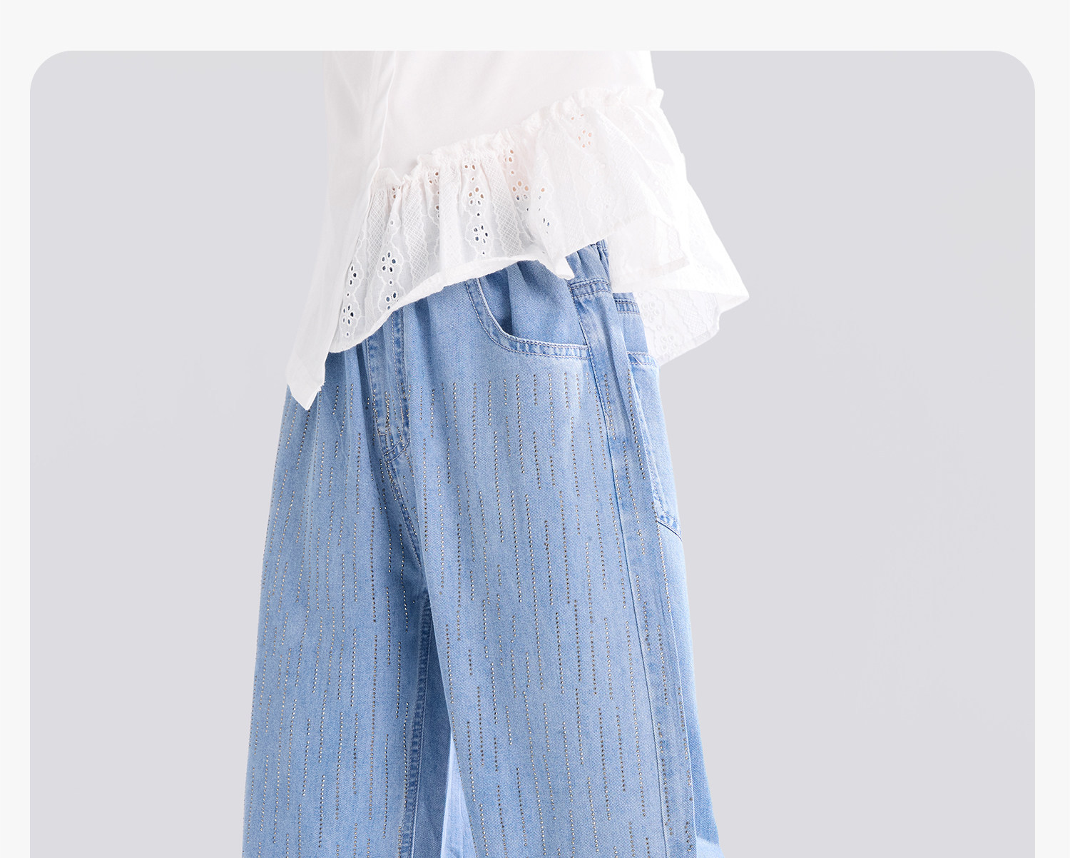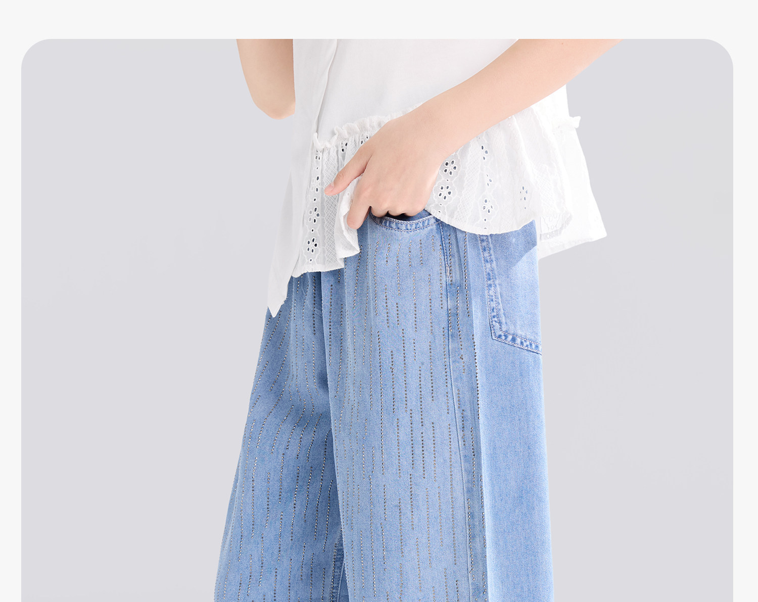 女童夏季流星燙鑽牛仔褲