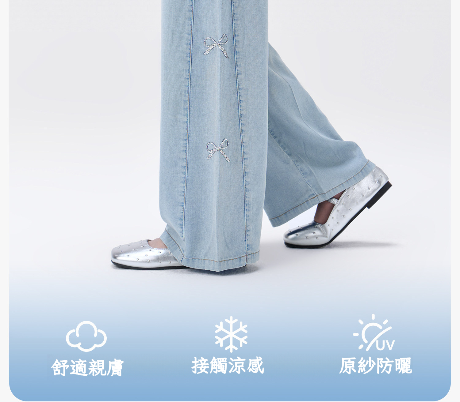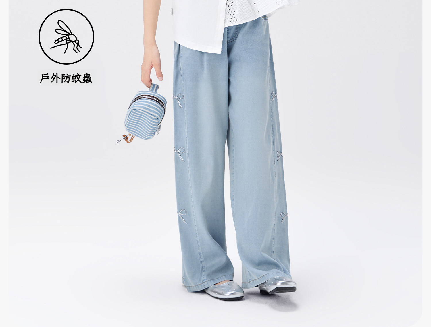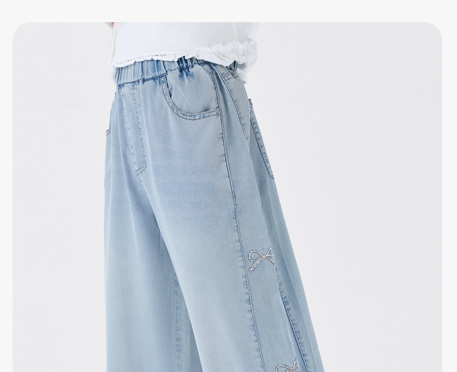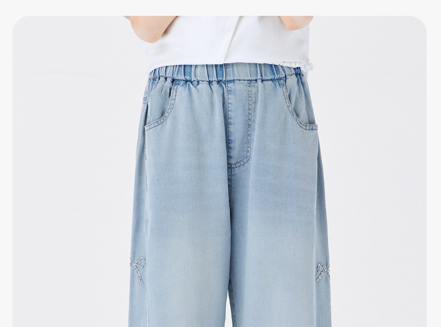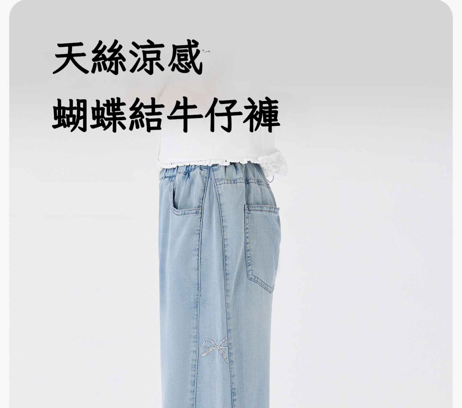 女童夏季甜美蝴蝶結天絲牛仔褲