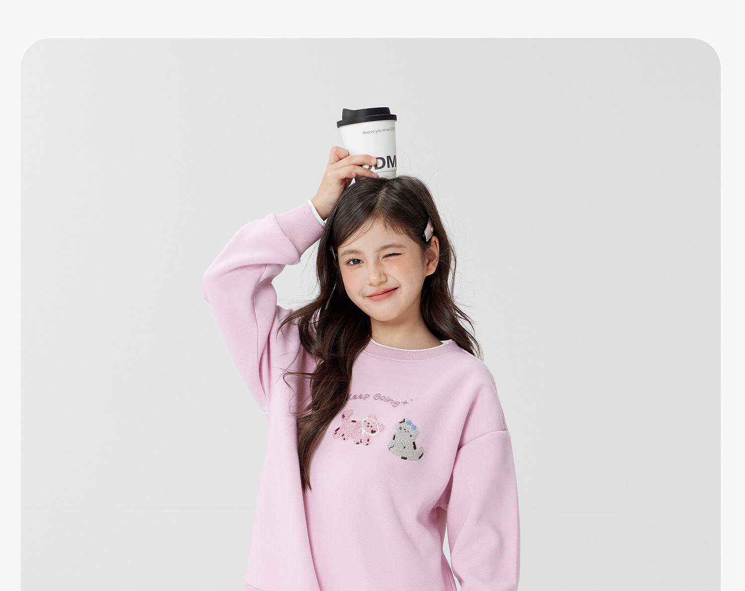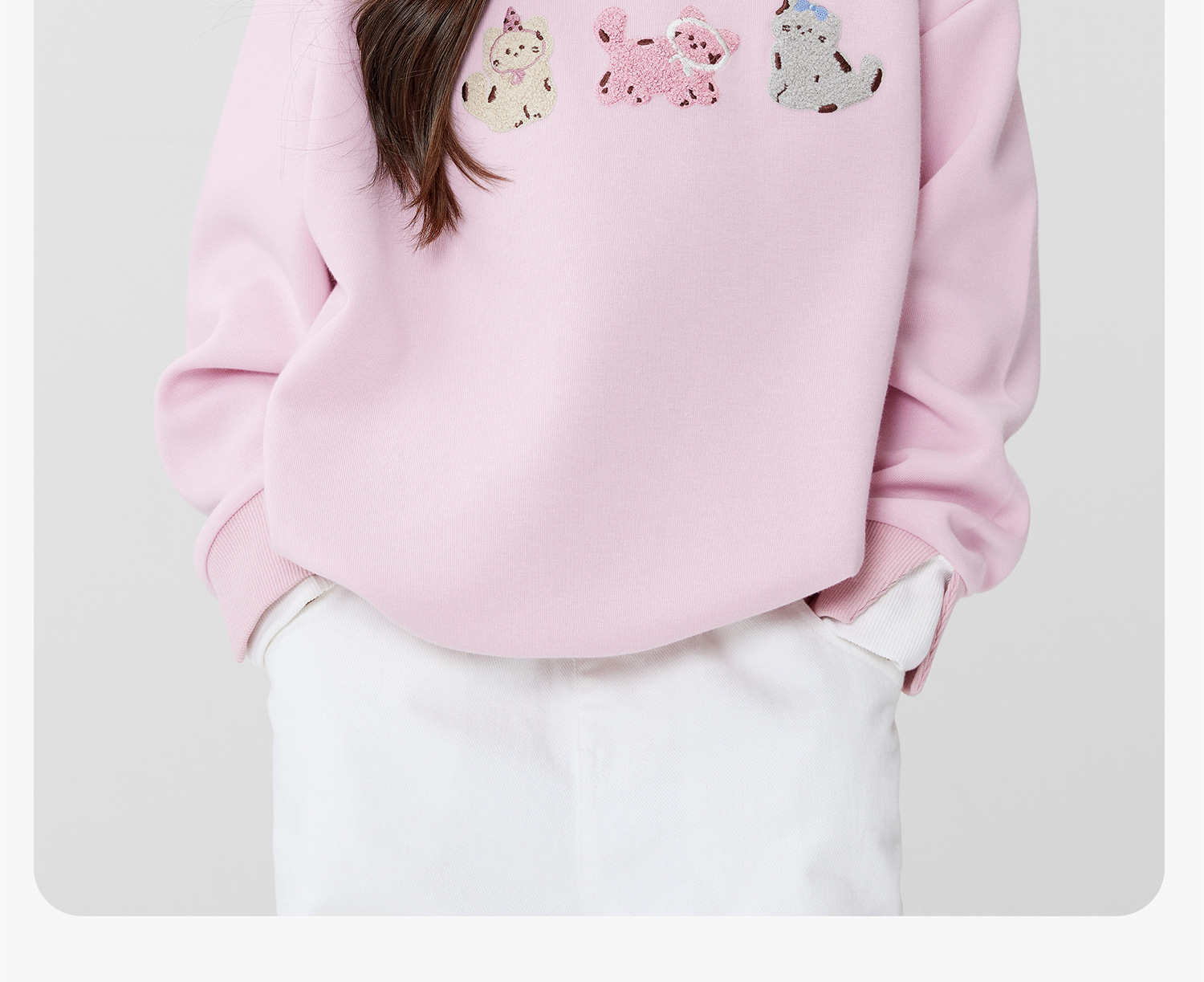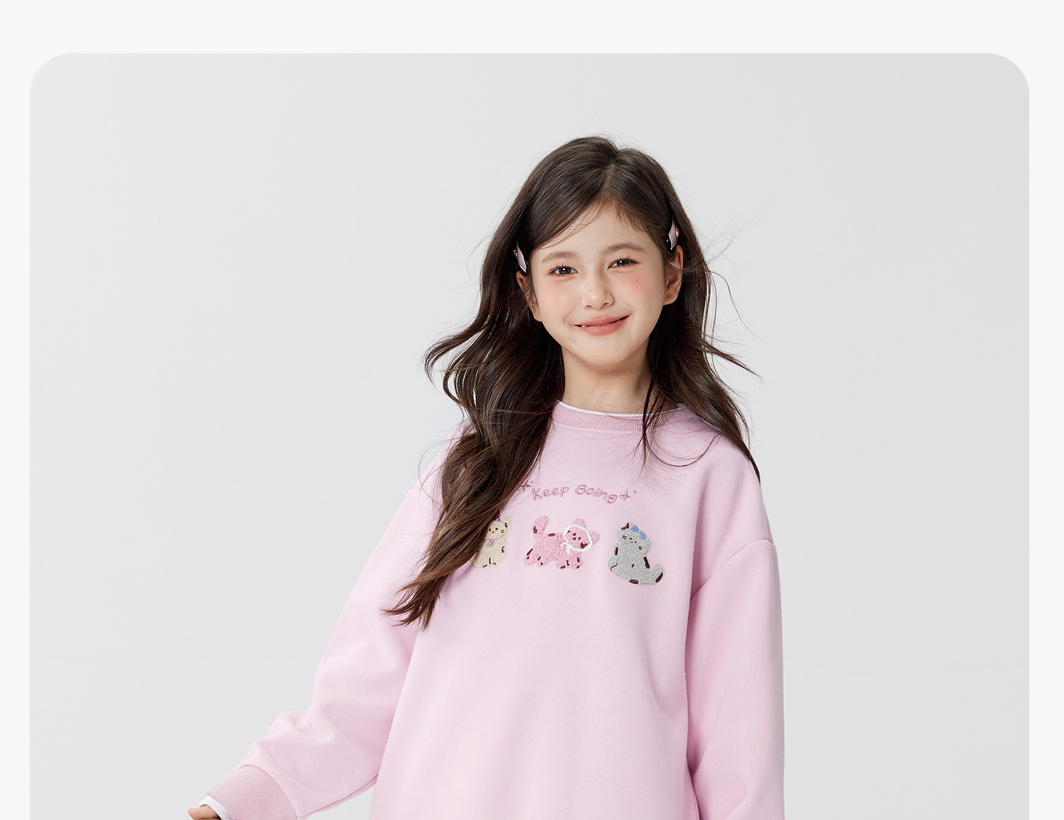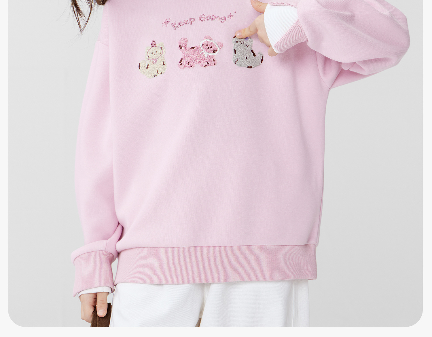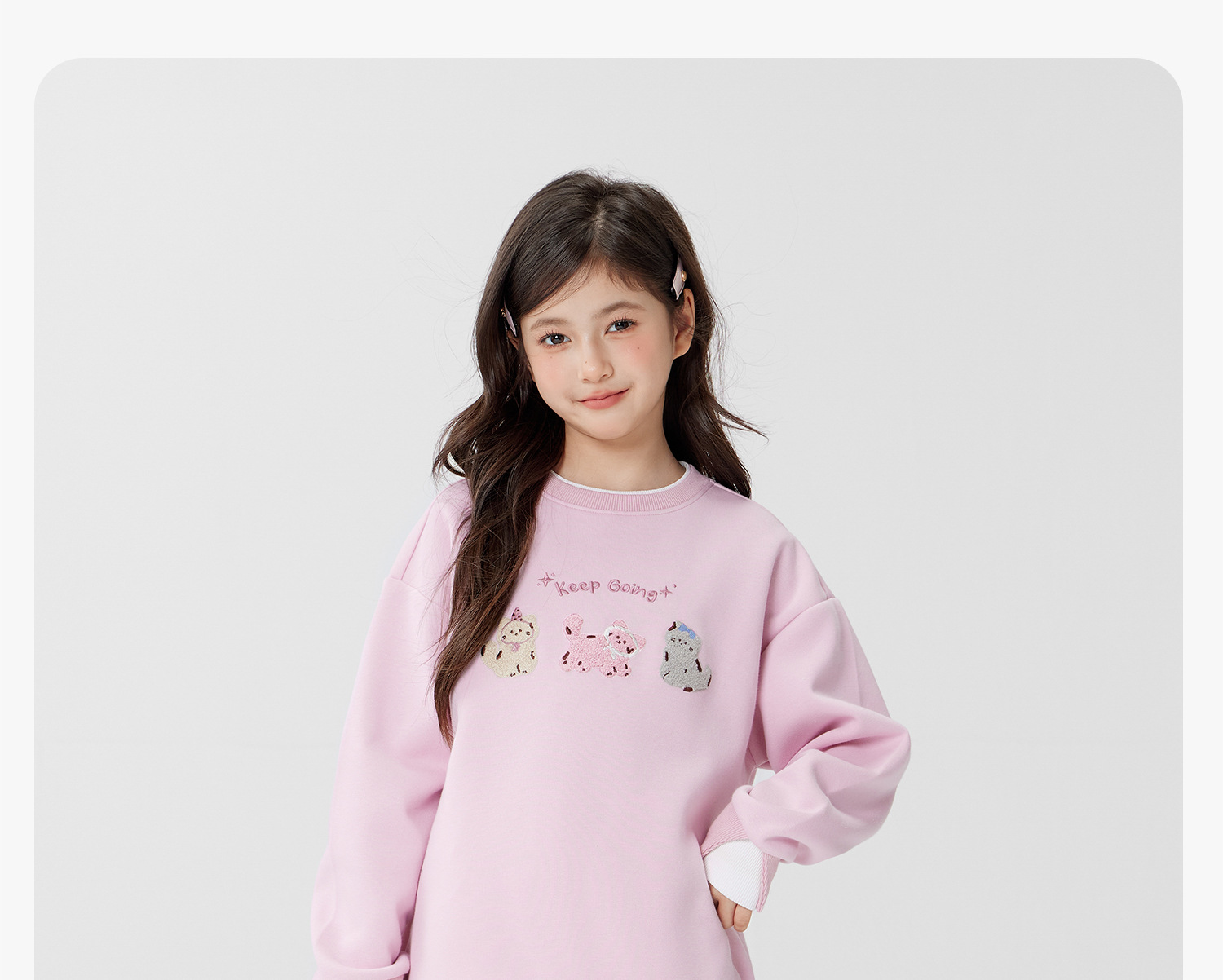 女童春季假兩件小貓圓領衛衣