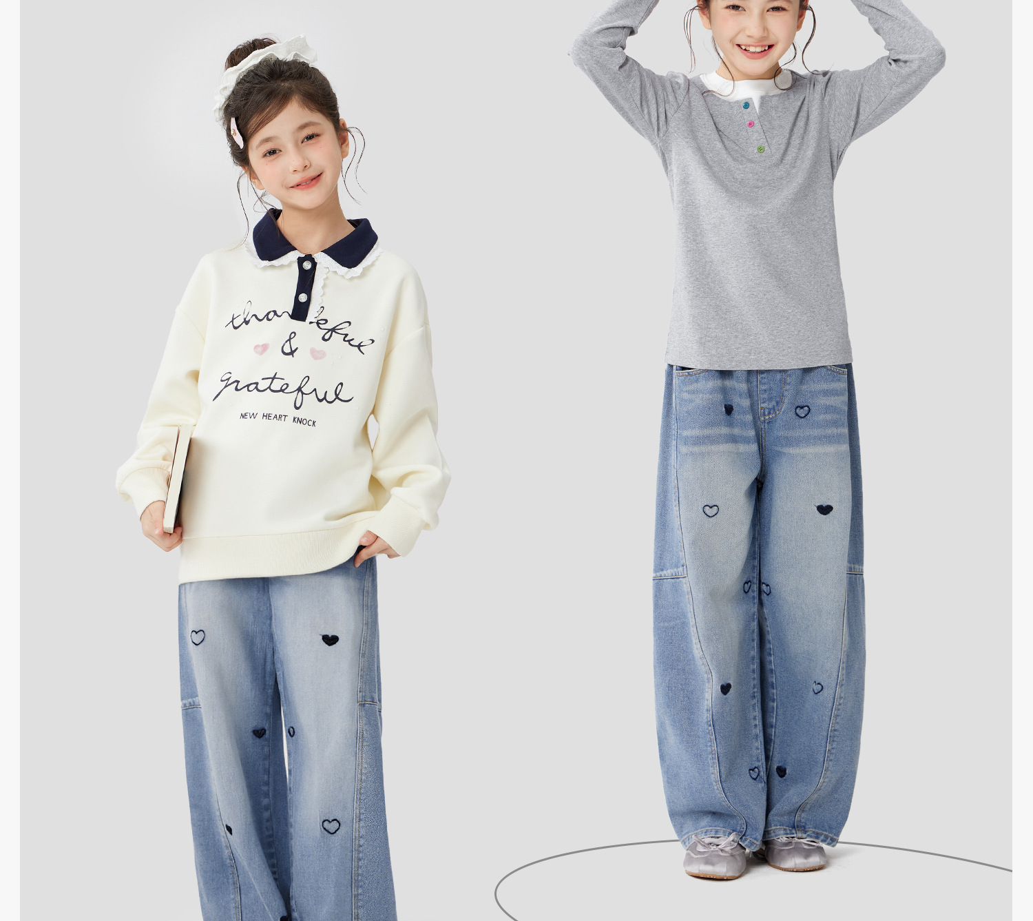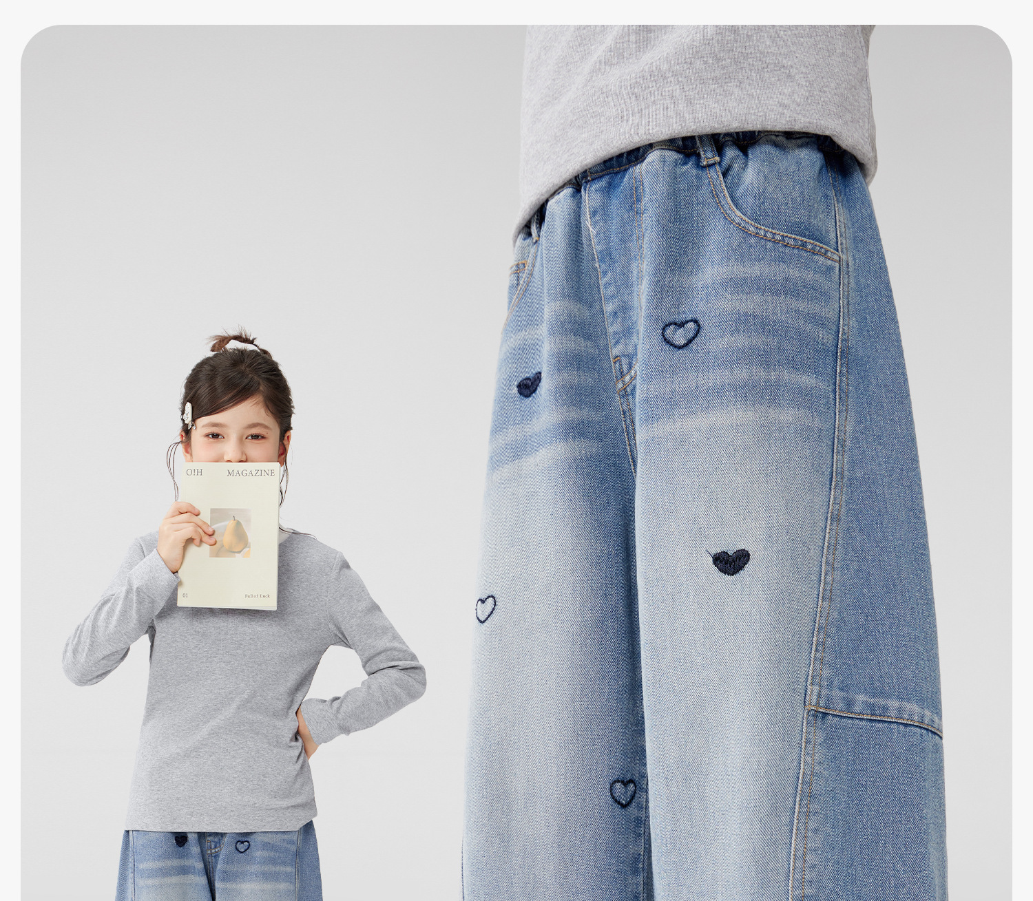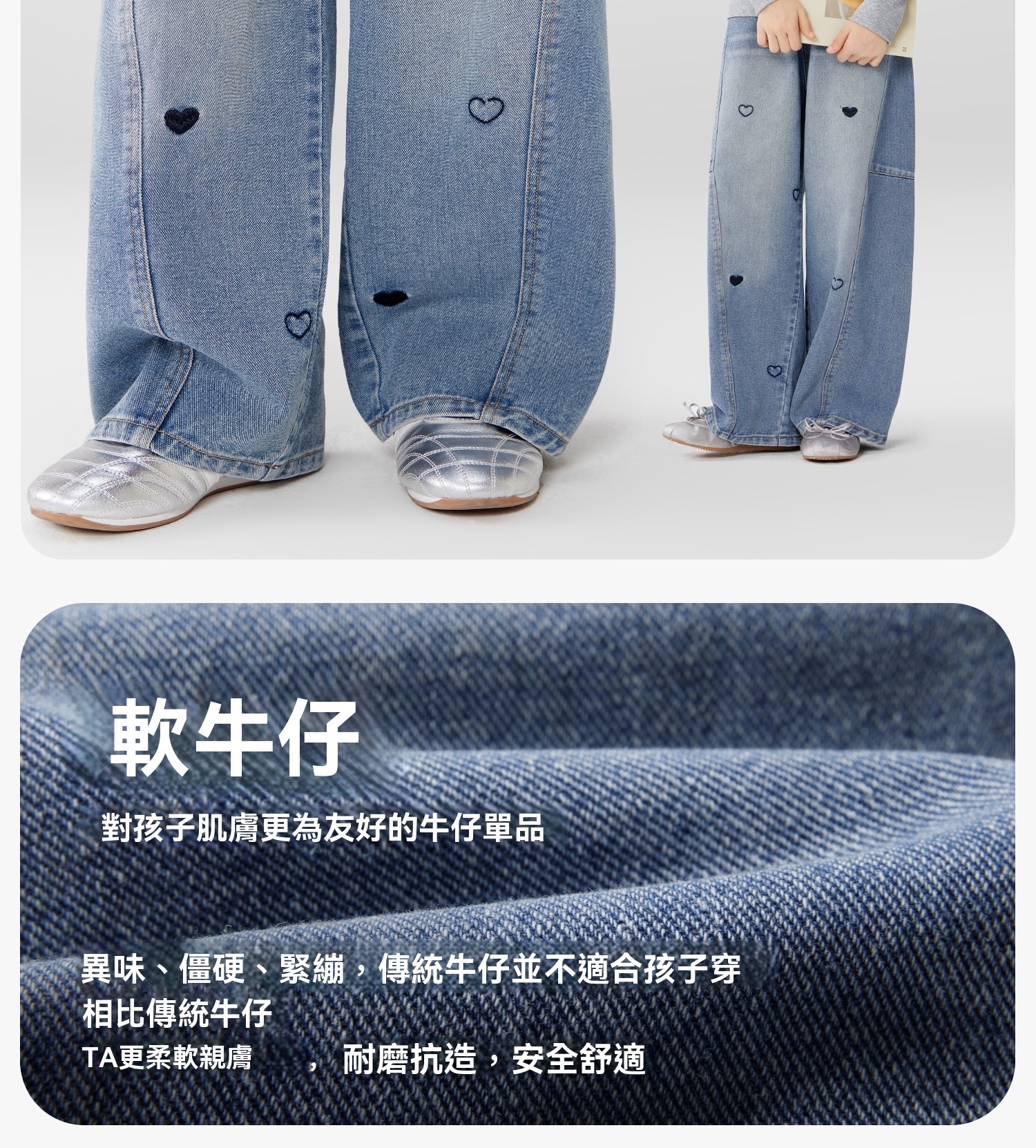 女童春季愛心甜美彎刀牛仔褲