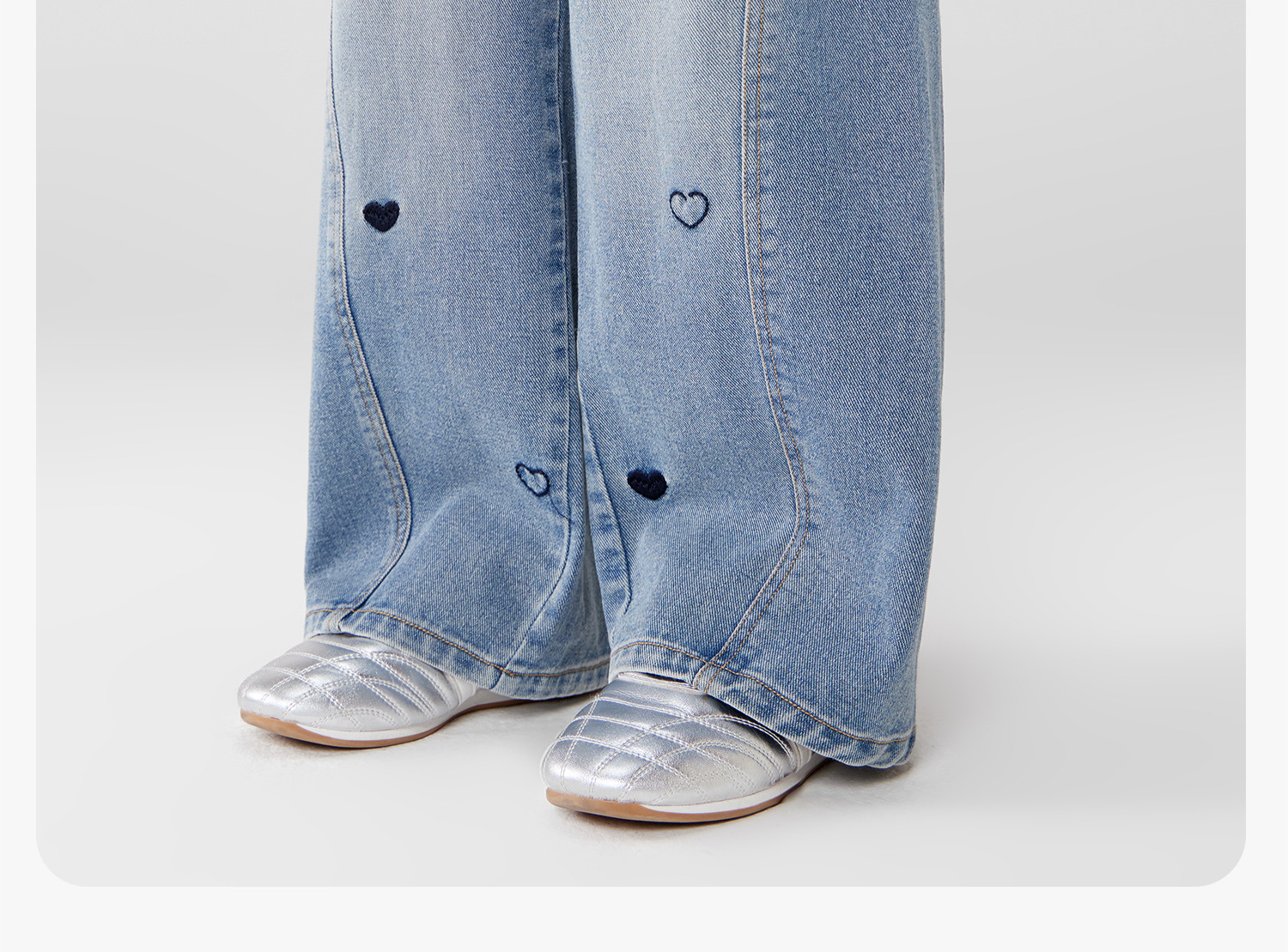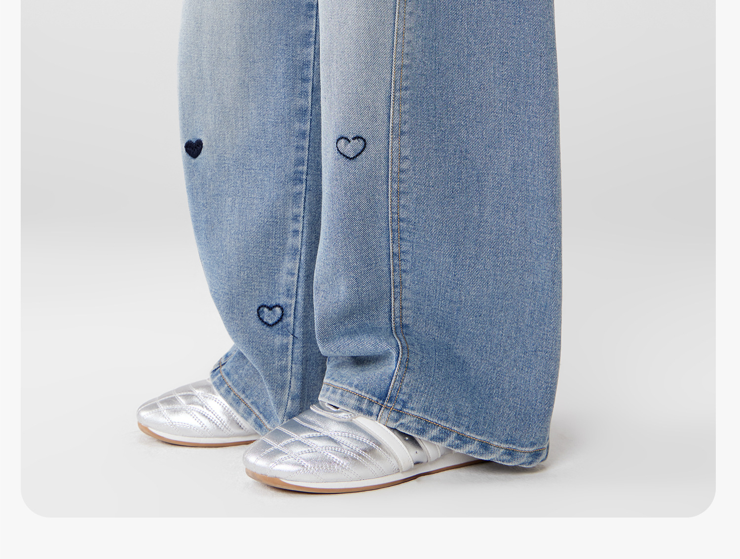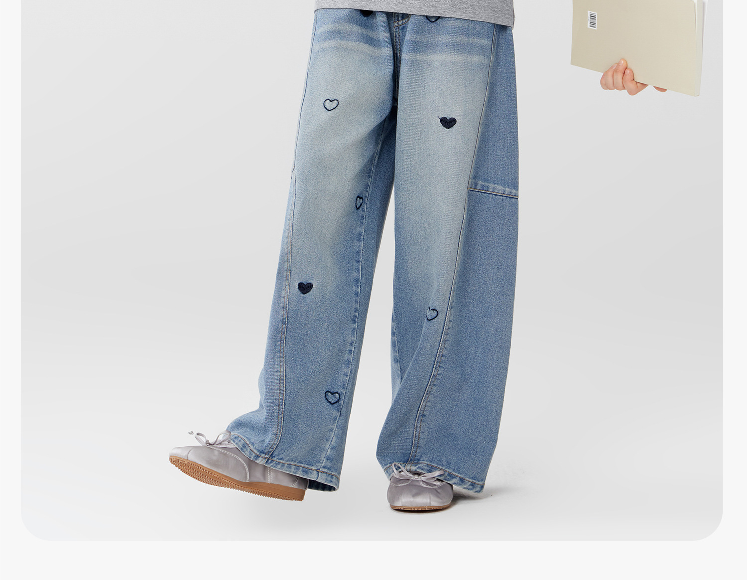 女童春季愛心甜美彎刀牛仔褲