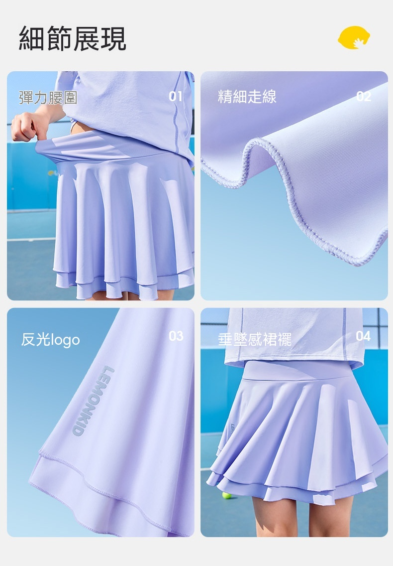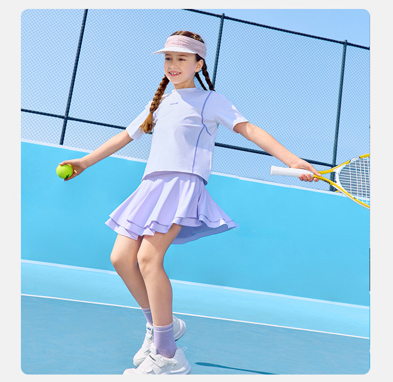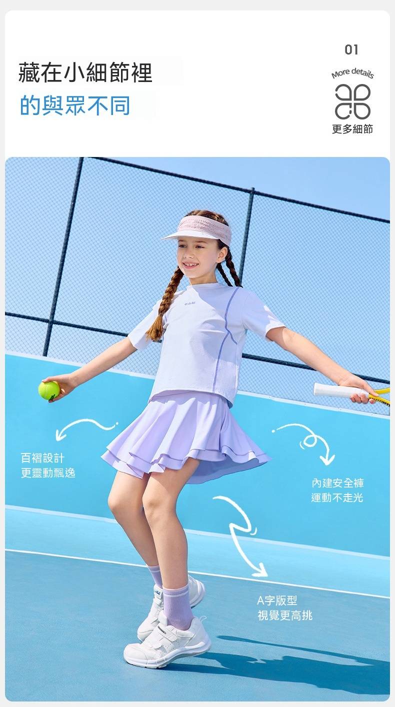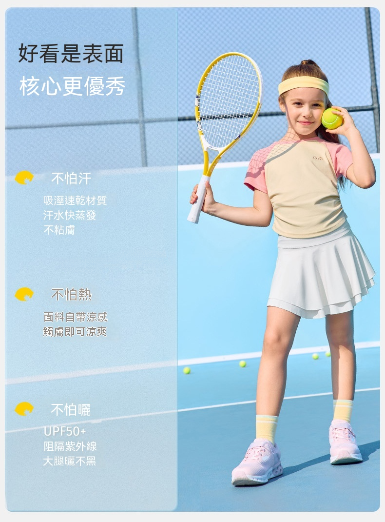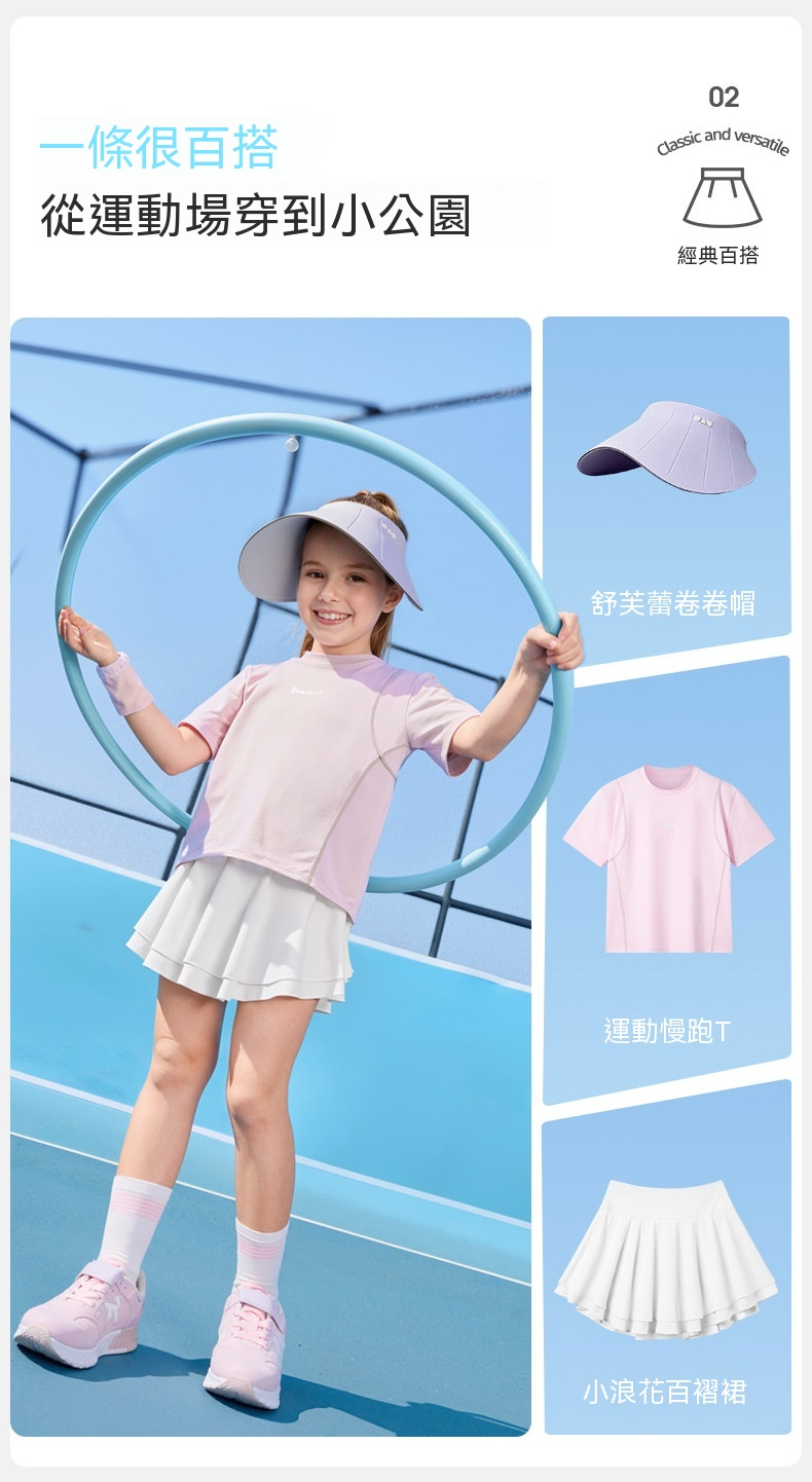 女童涼感網球純色百褶裙