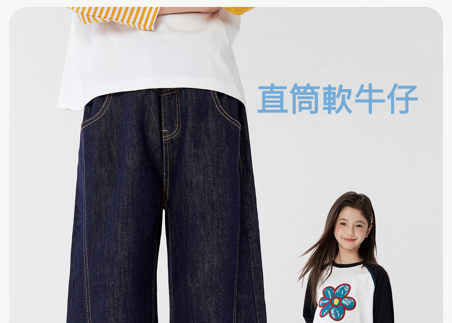 女童防褪色春秋洋氣直筒牛仔褲