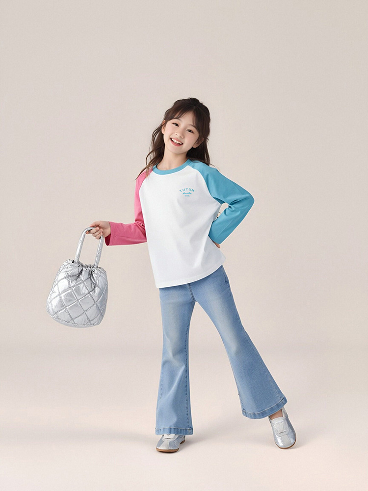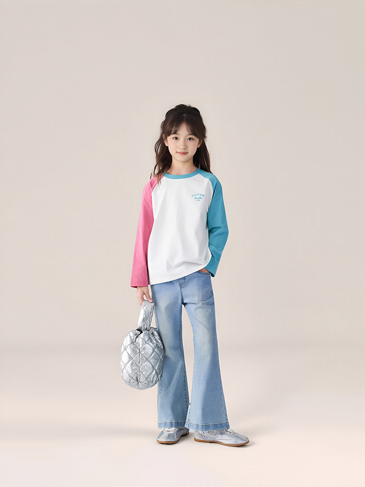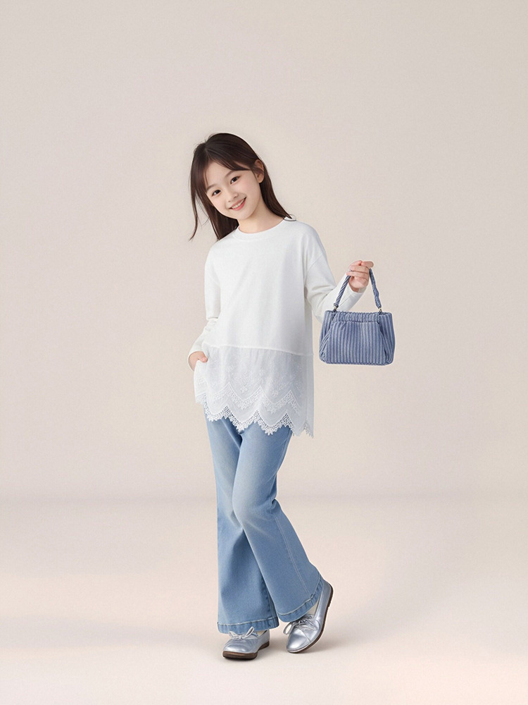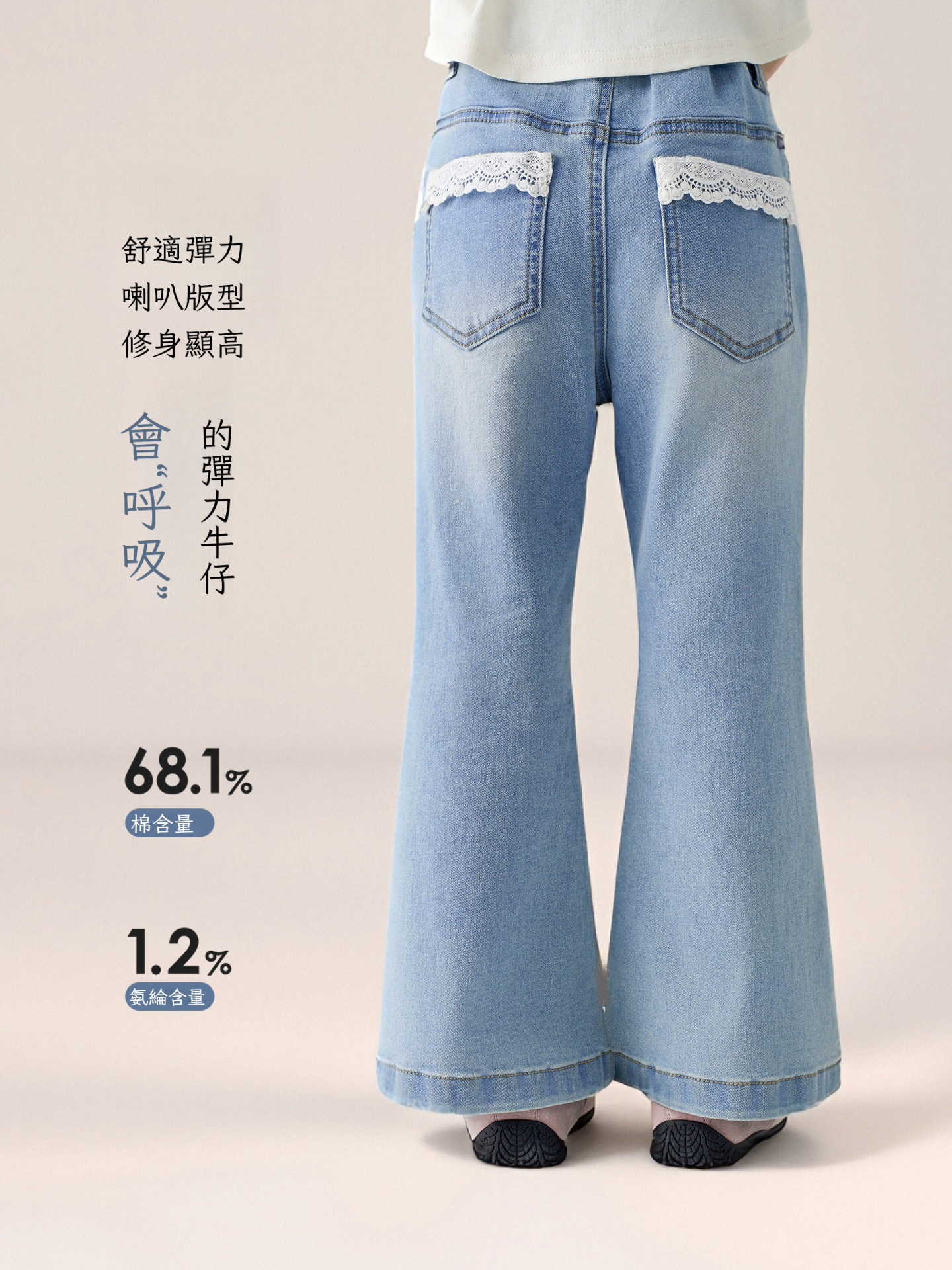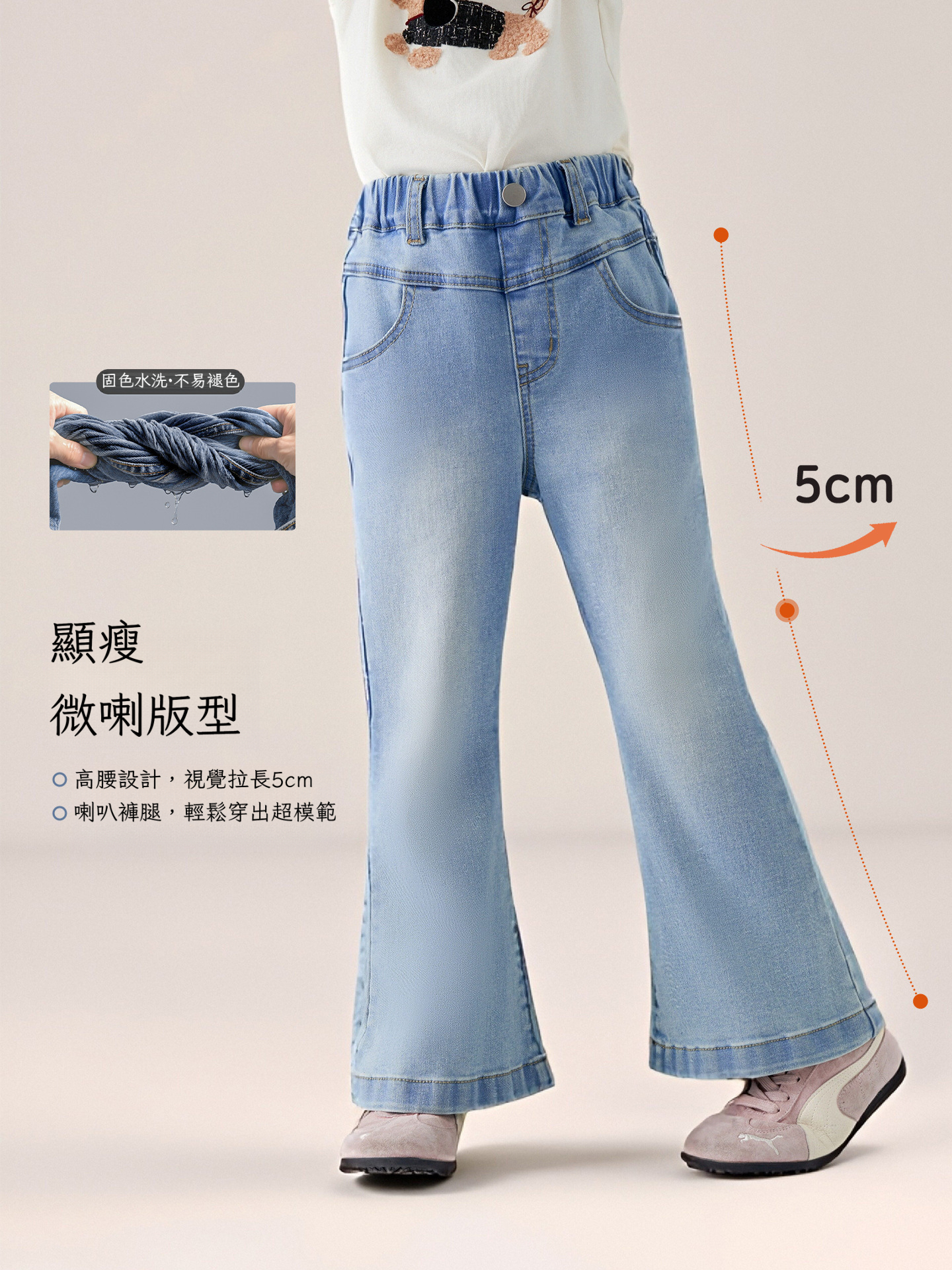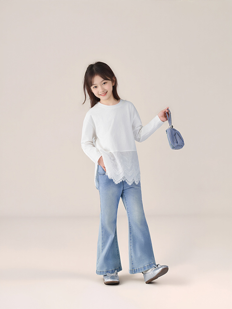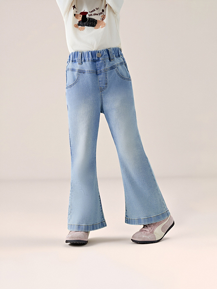 春季兒童百搭長褲水洗牛仔褲喇叭褲