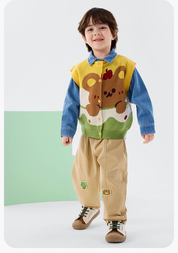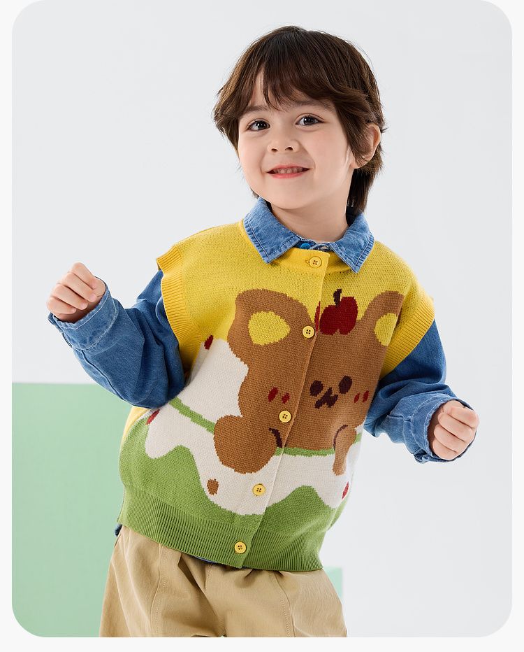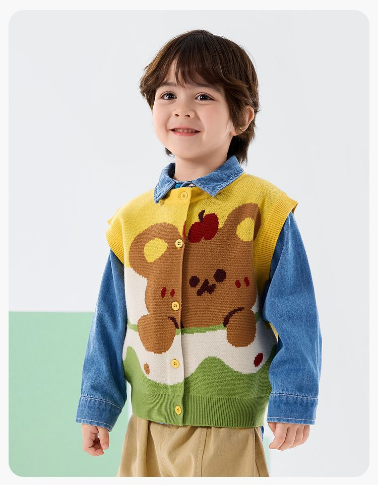 春季兒童萌熊針織馬甲