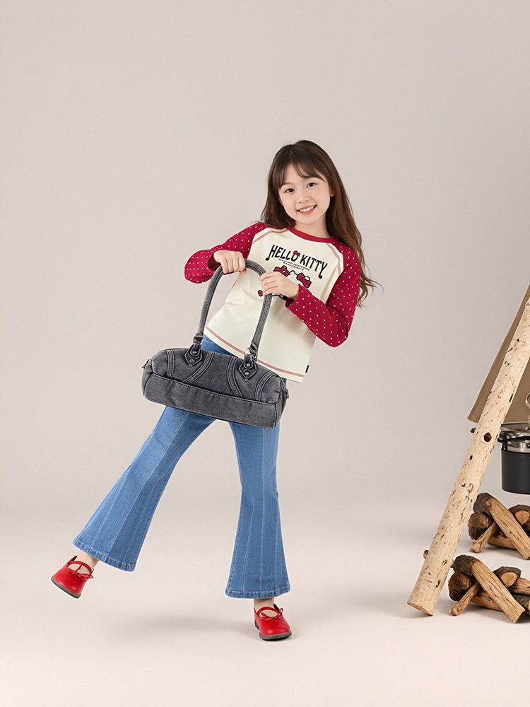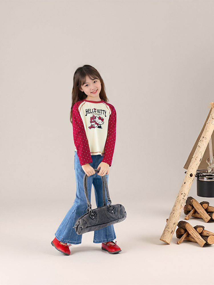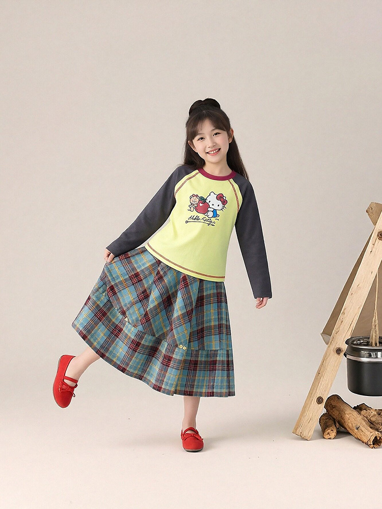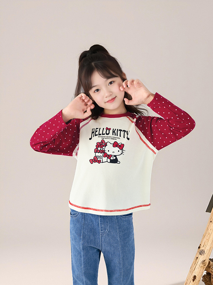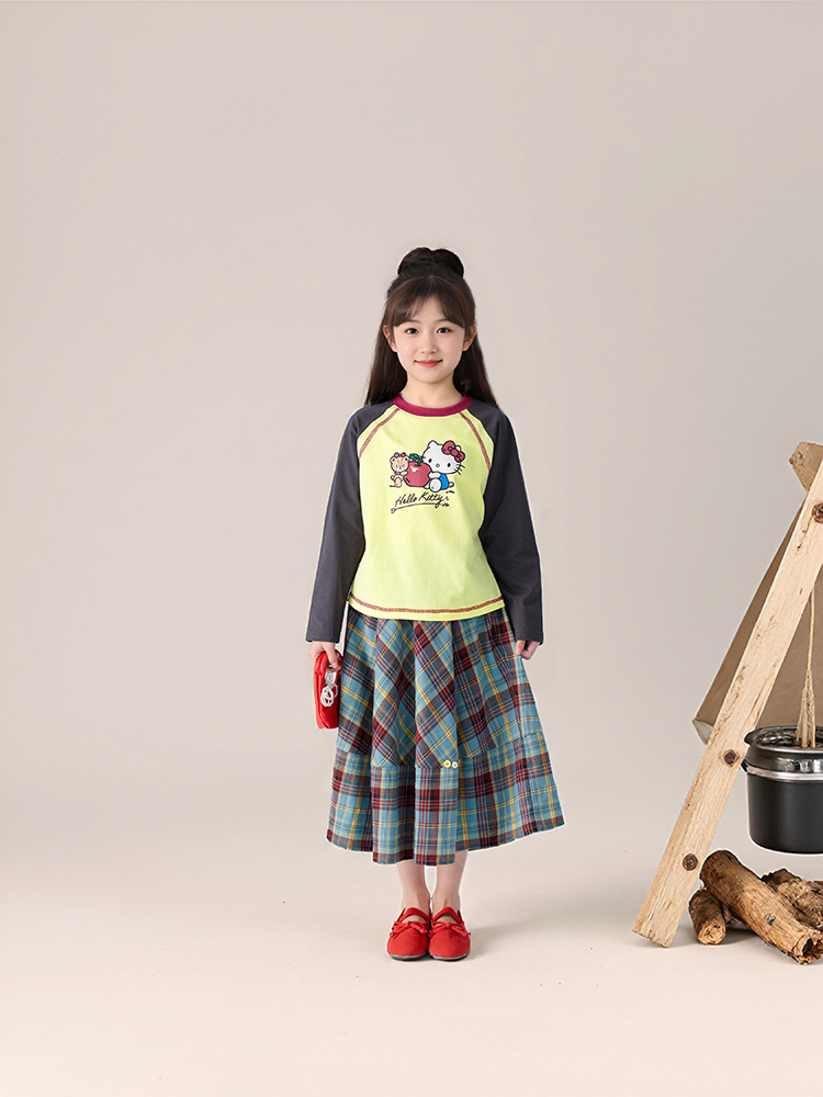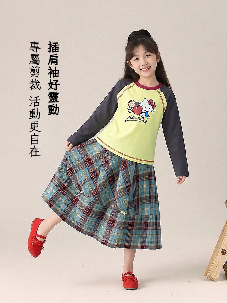 春季女童插肩袖長袖T恤