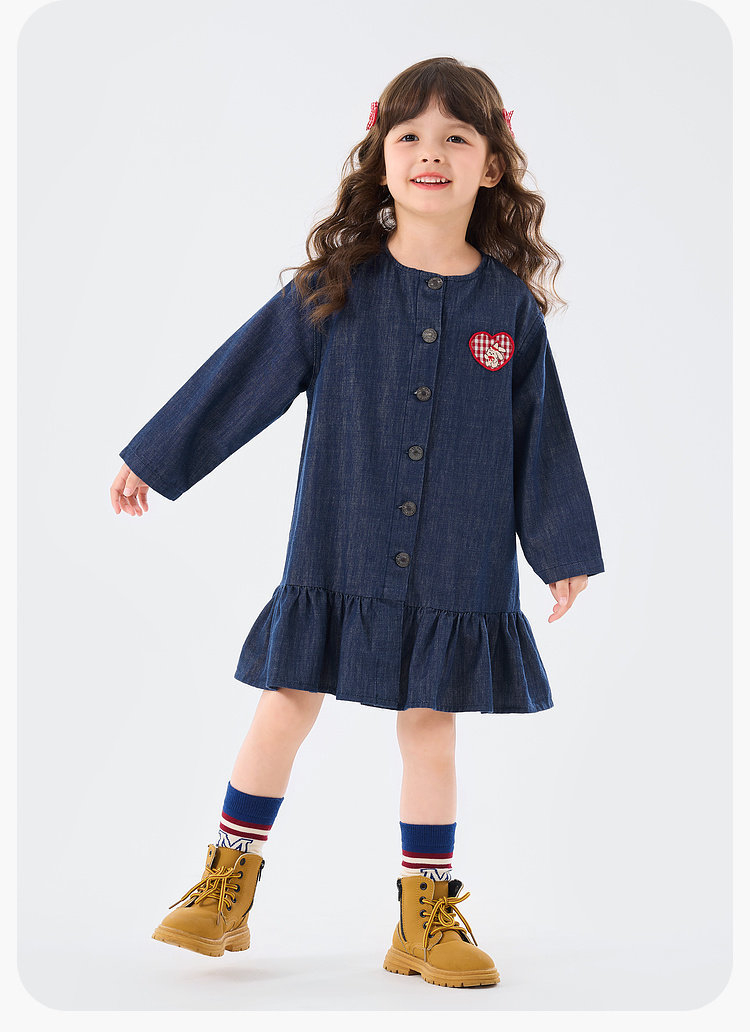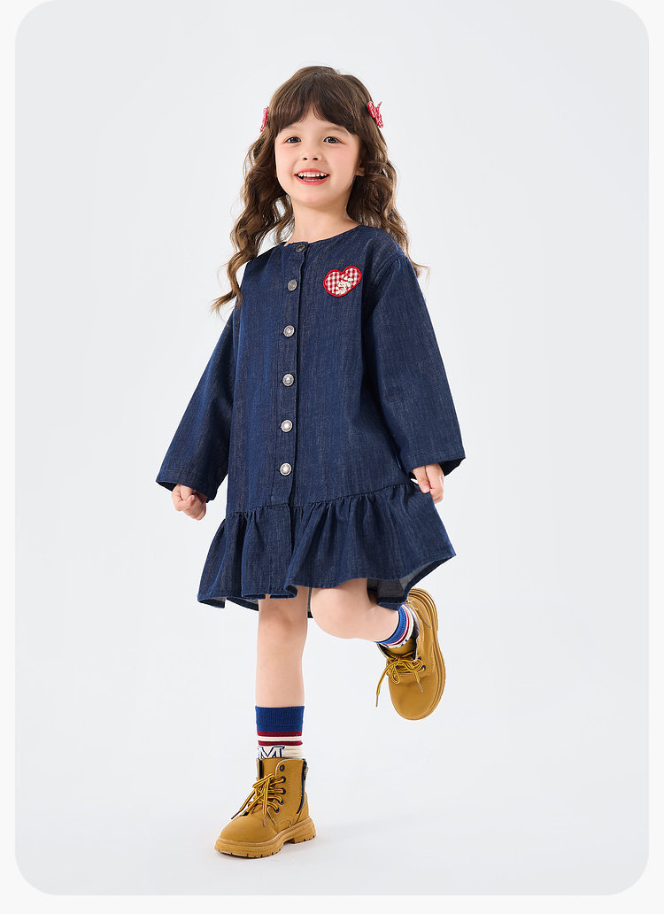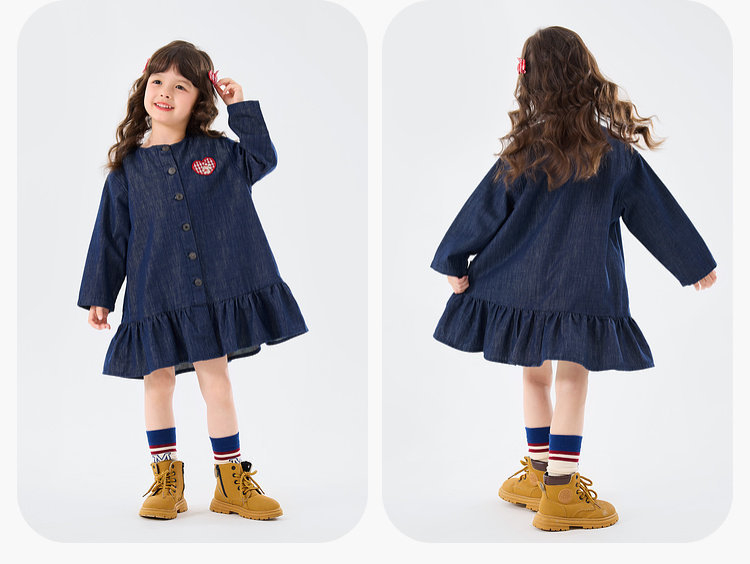 春季女童牛仔藍連衣裙