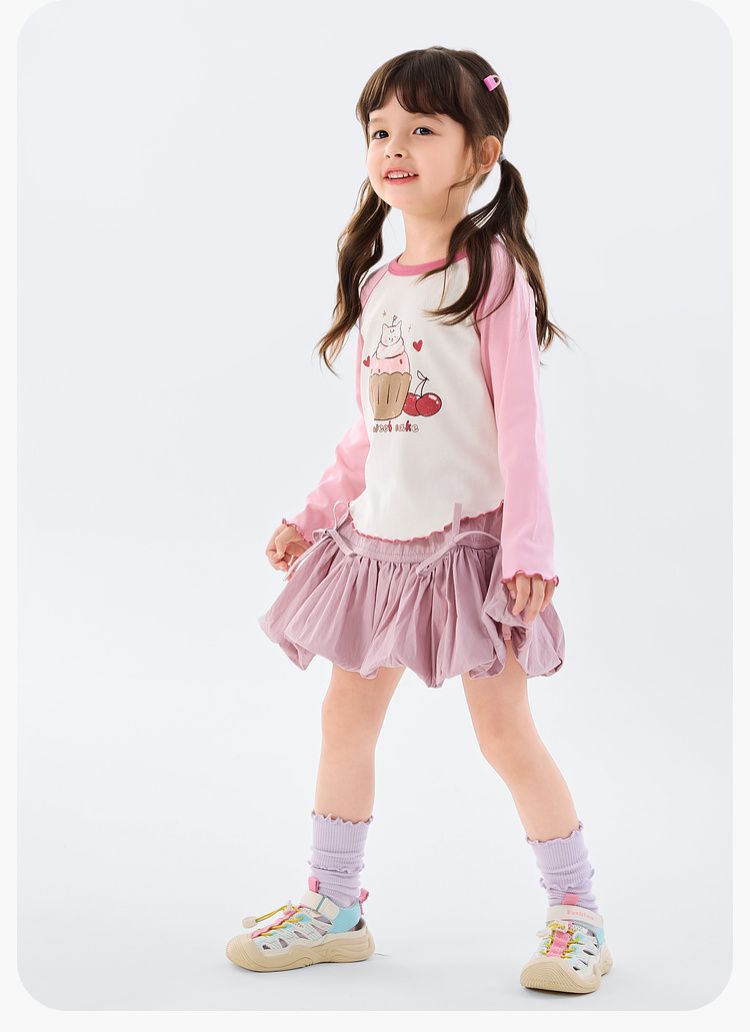 春季女童童趣插肩袖T恤