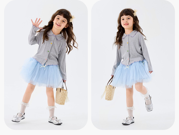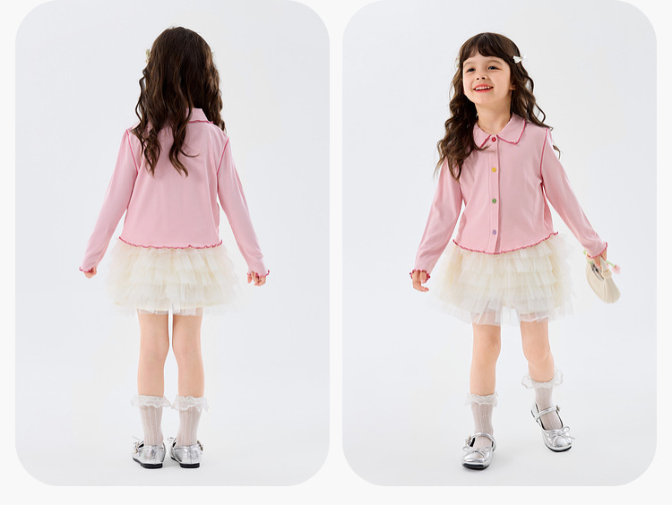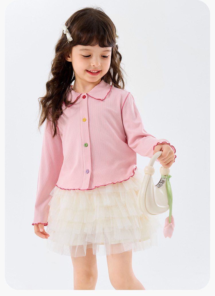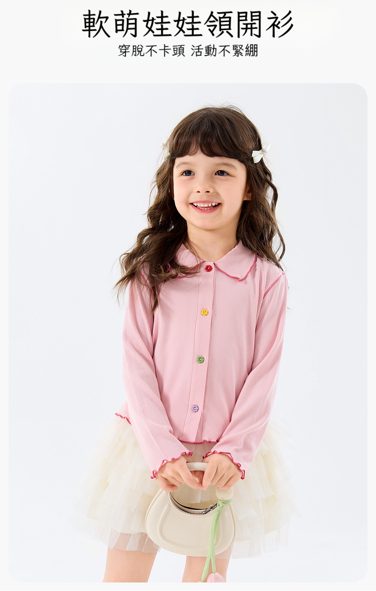 春季女童軟萌娃娃領多巴胺開衫上衣