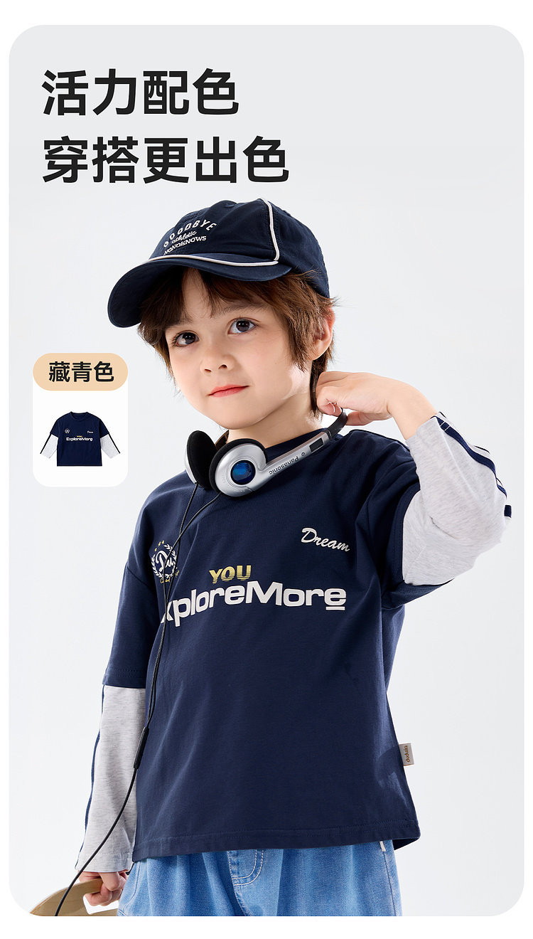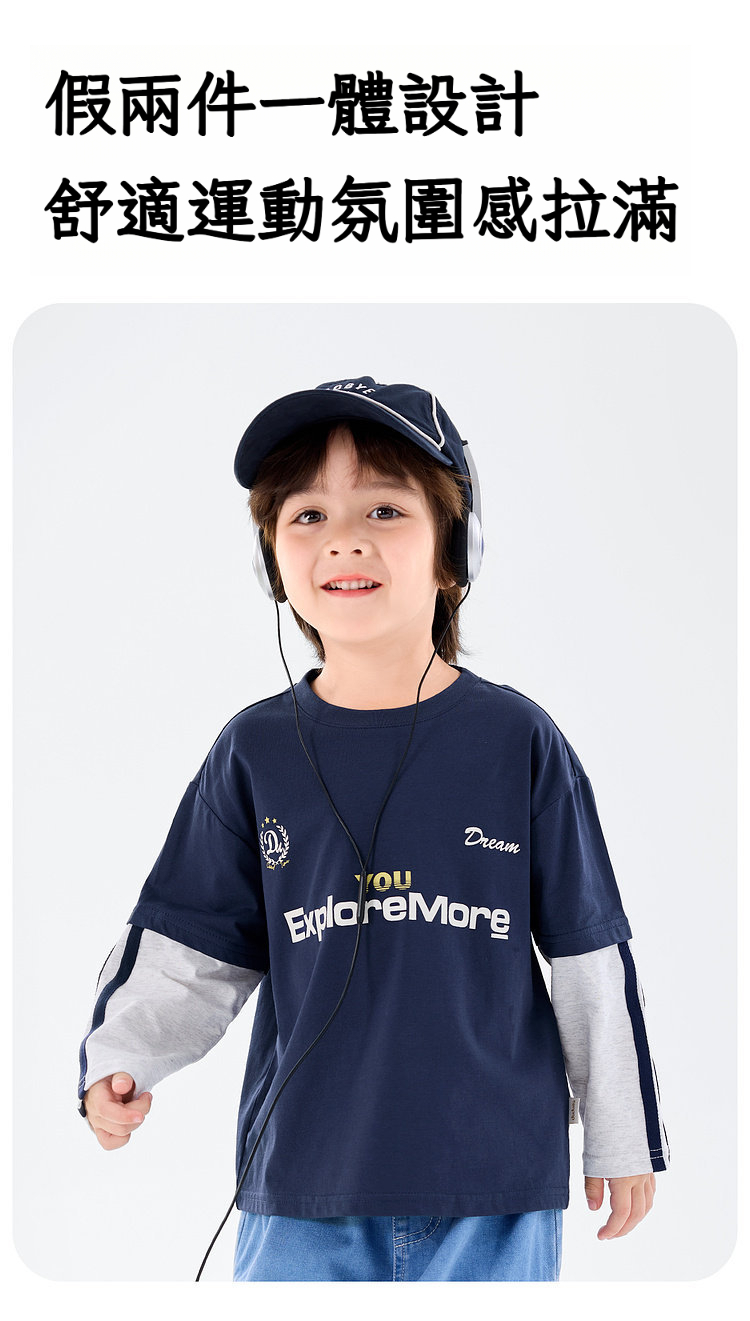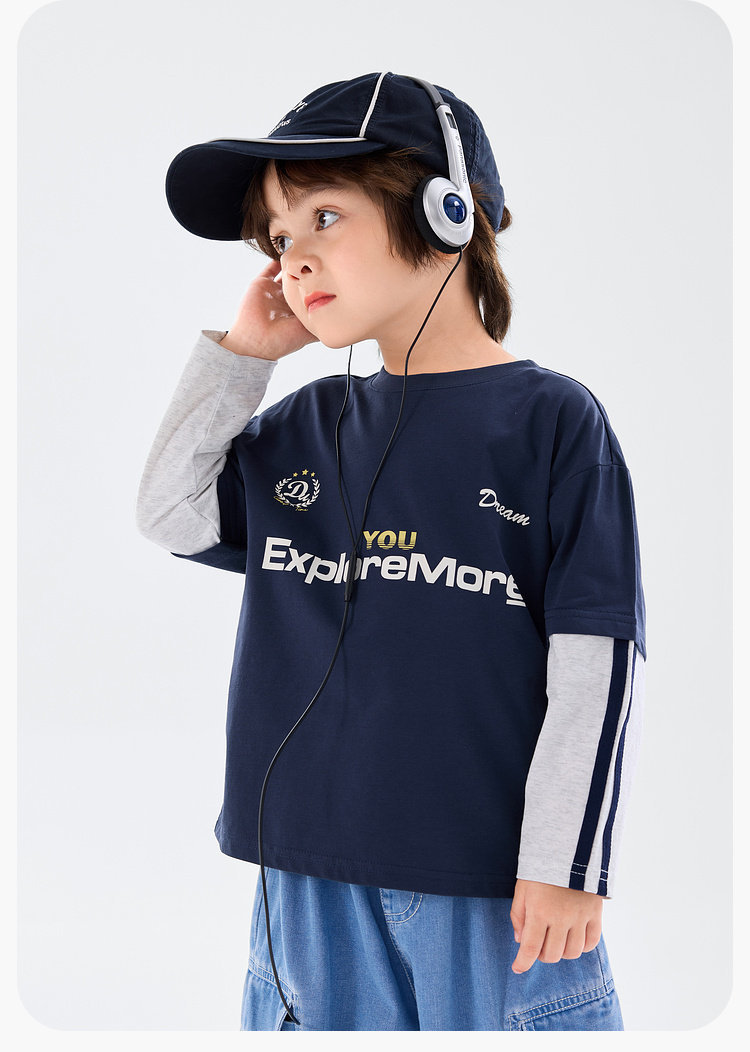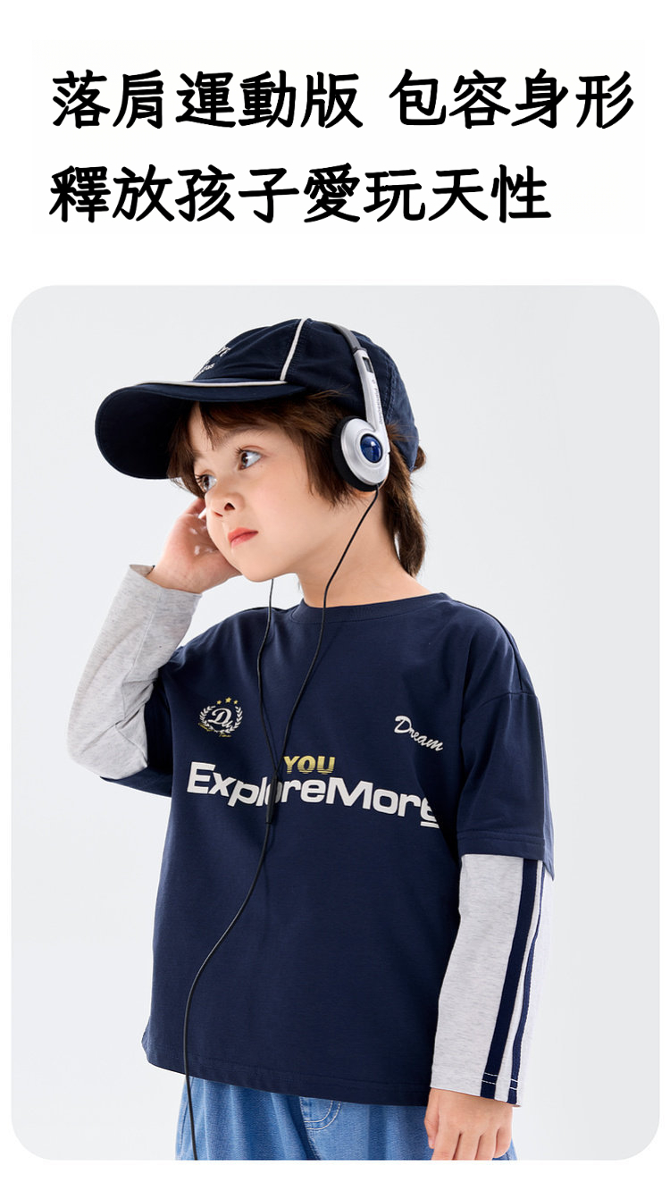 春季男童假兩件長袖T恤