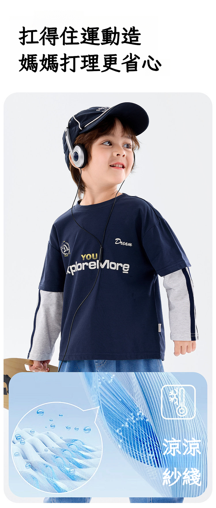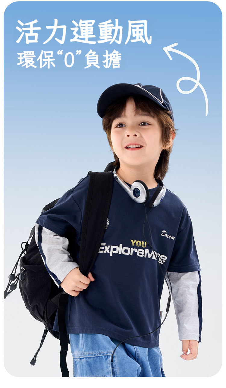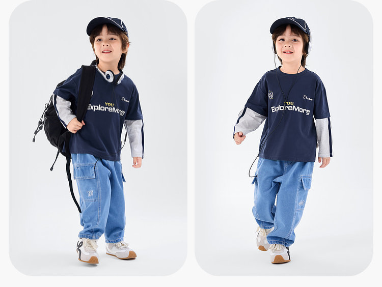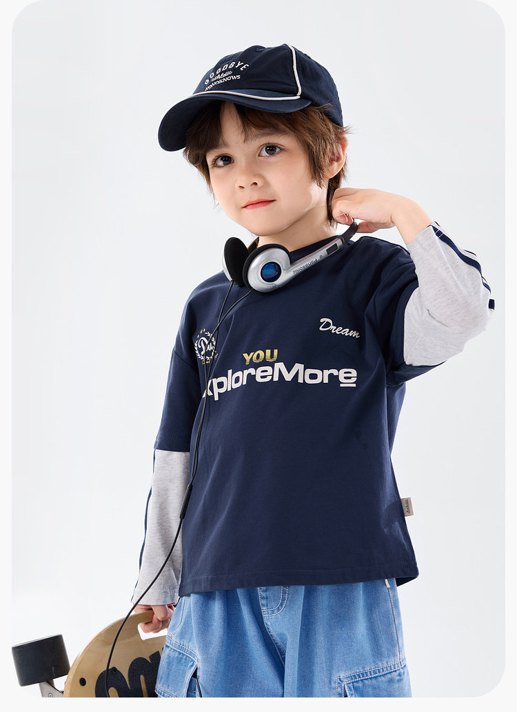春季男童假兩件長袖T恤