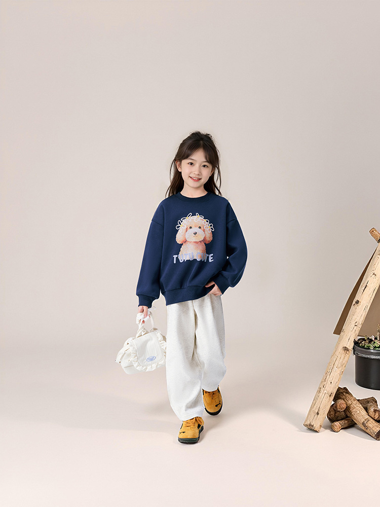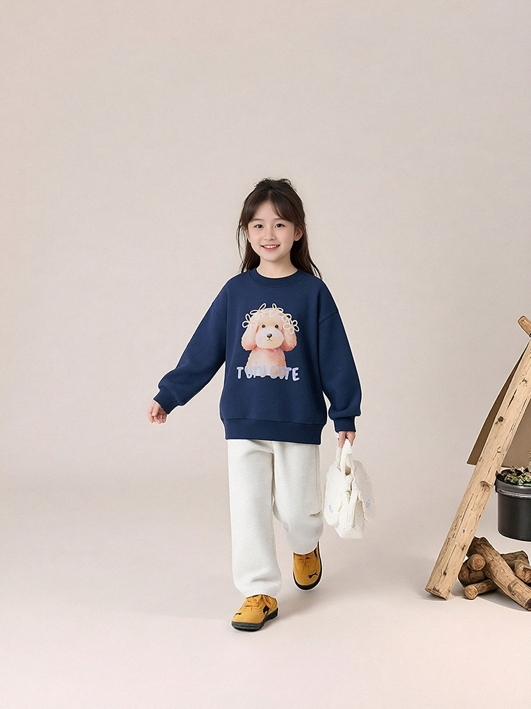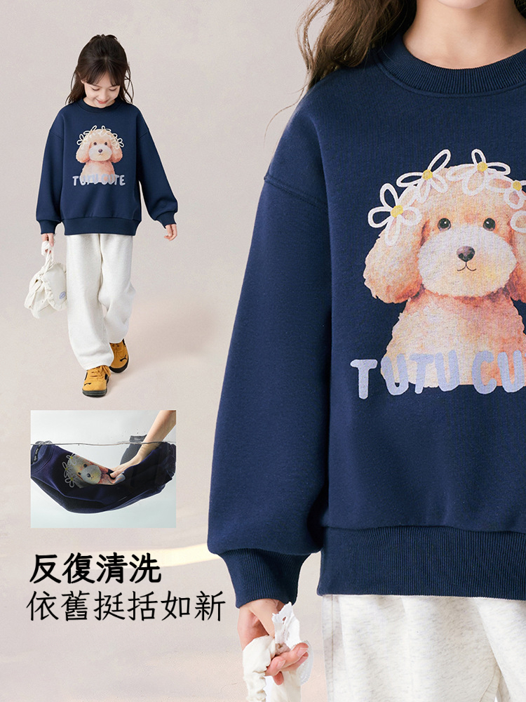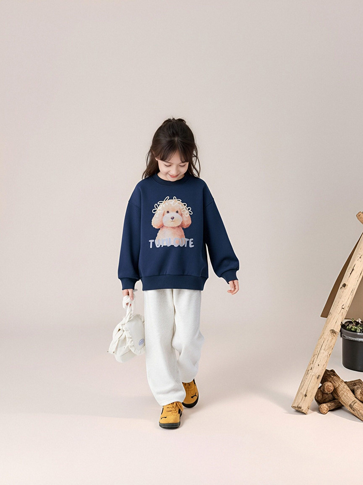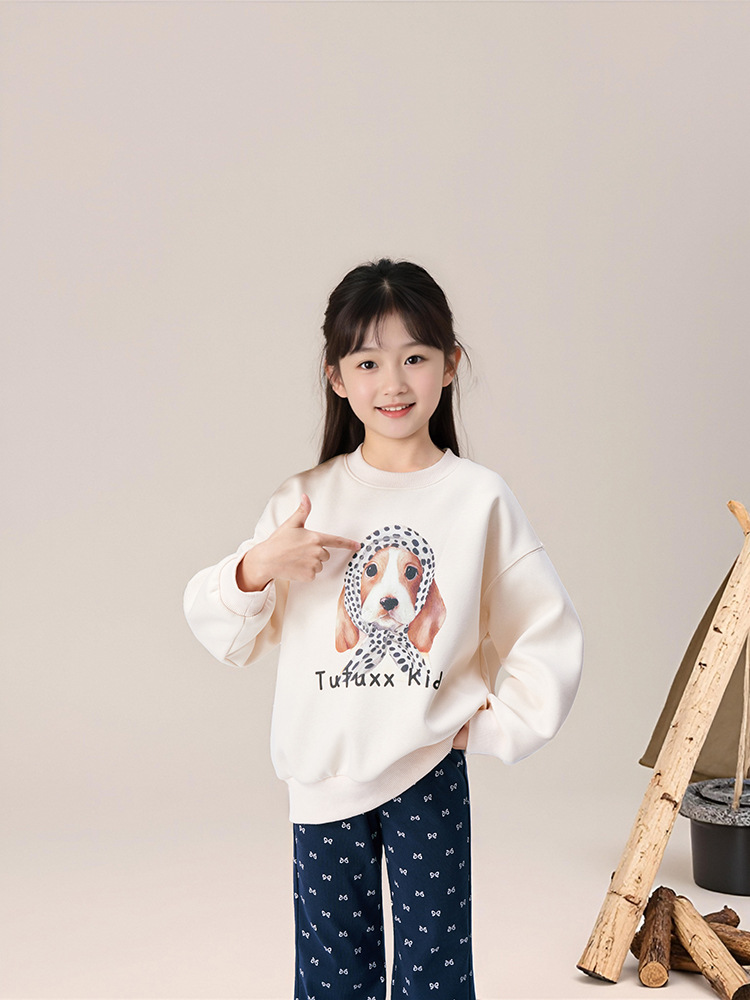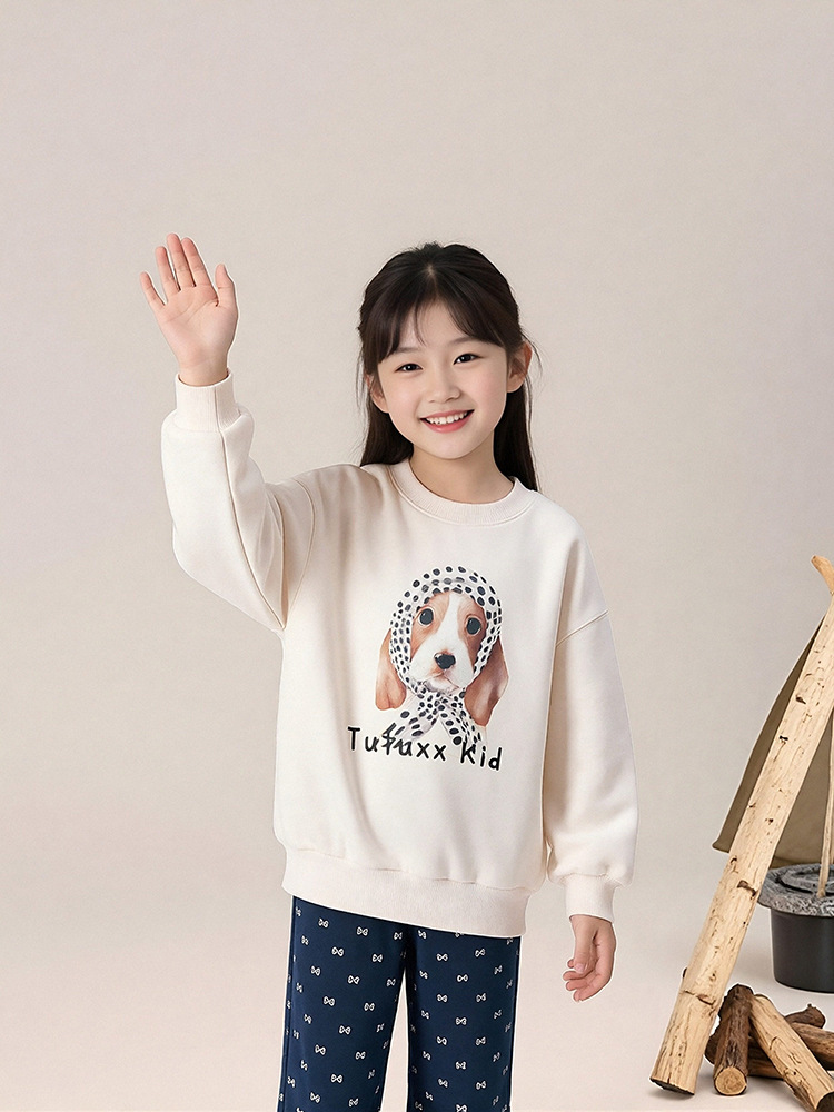 春秋女童狗狗卡通印花圓領薄款衛衣