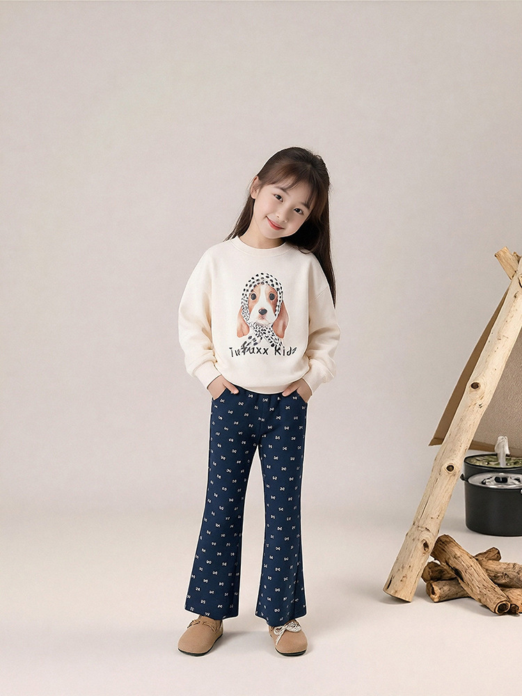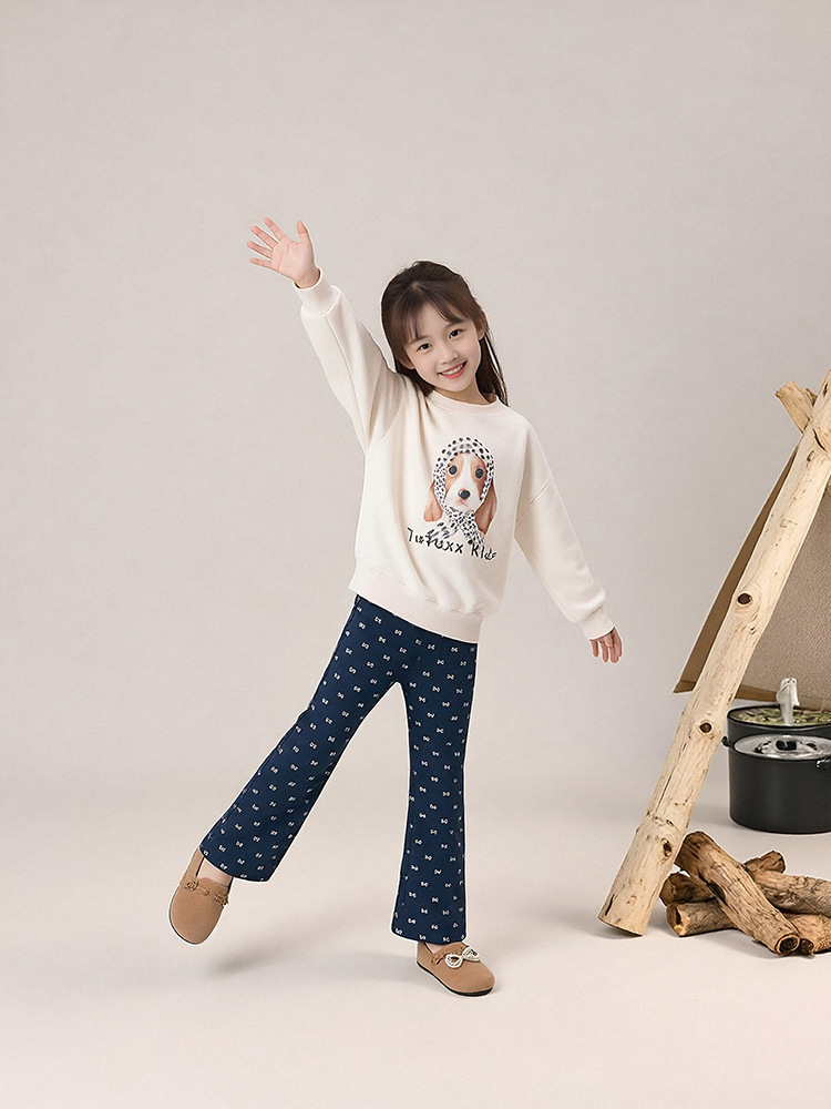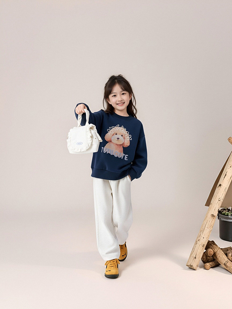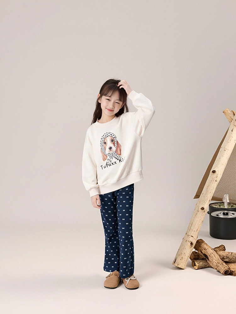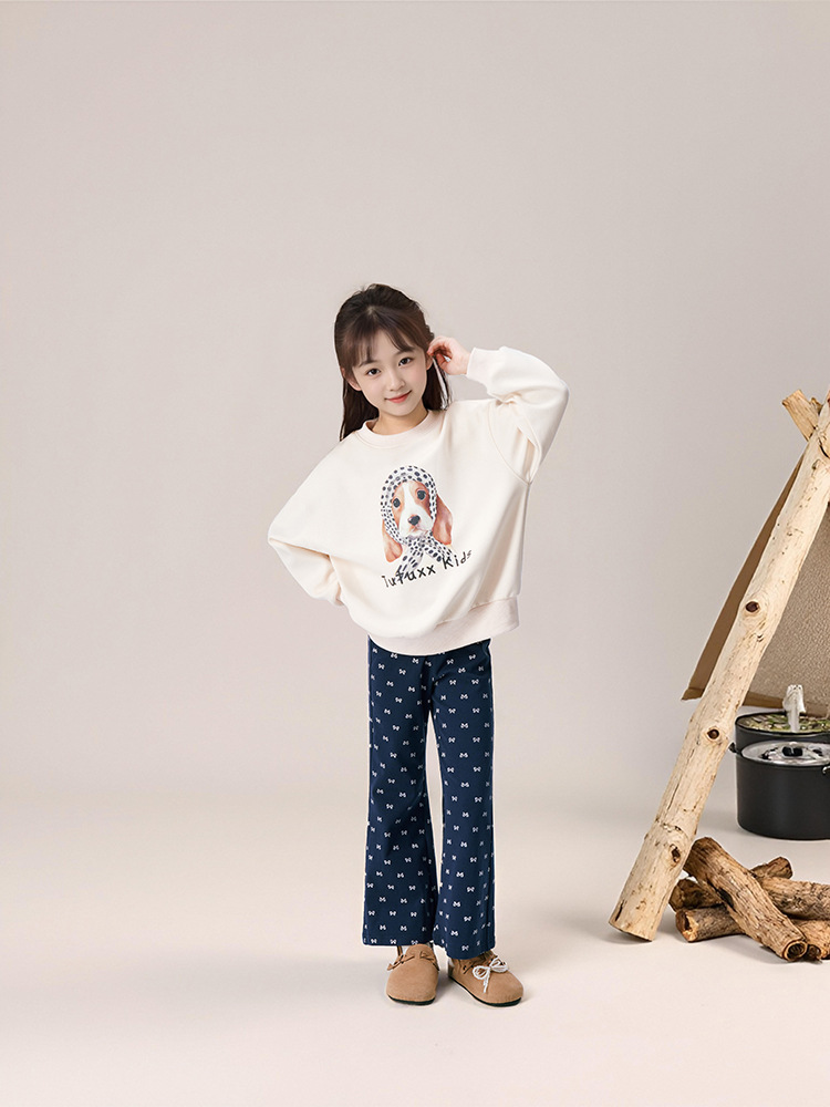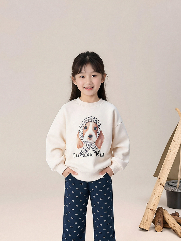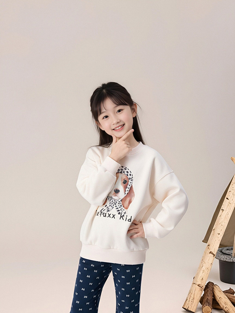 春秋女童狗狗卡通印花圓領薄款衛衣