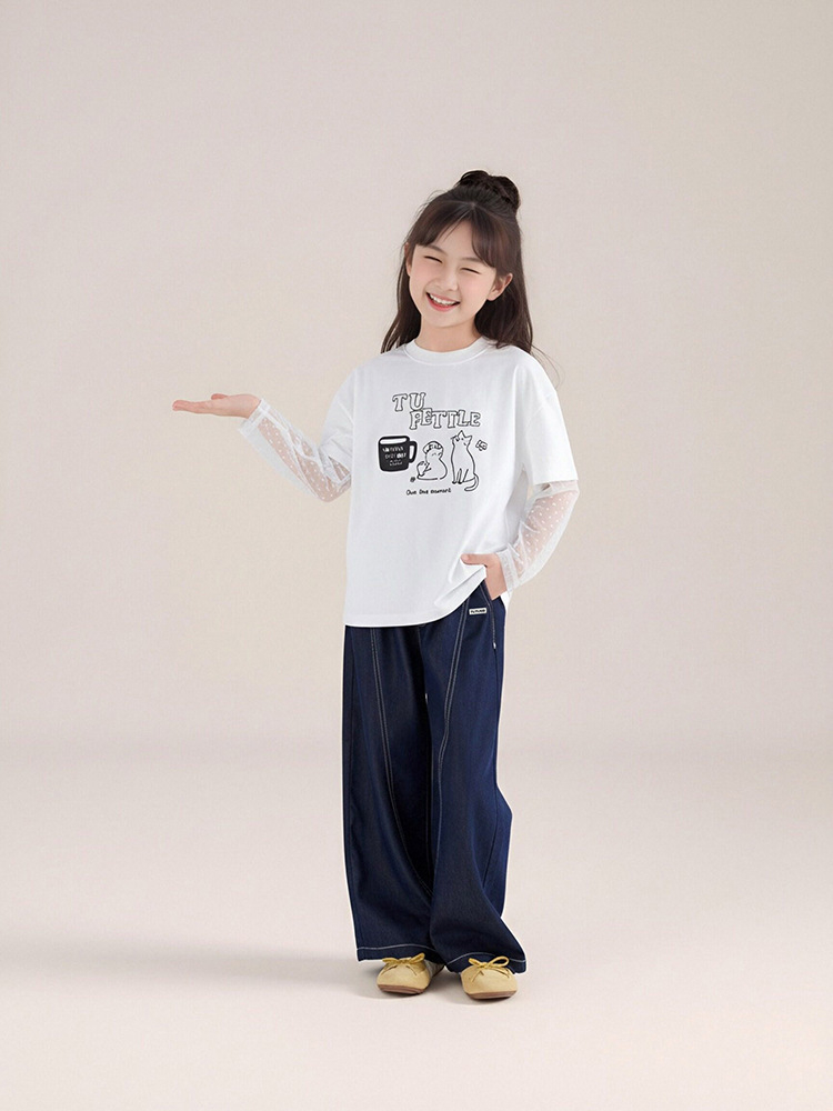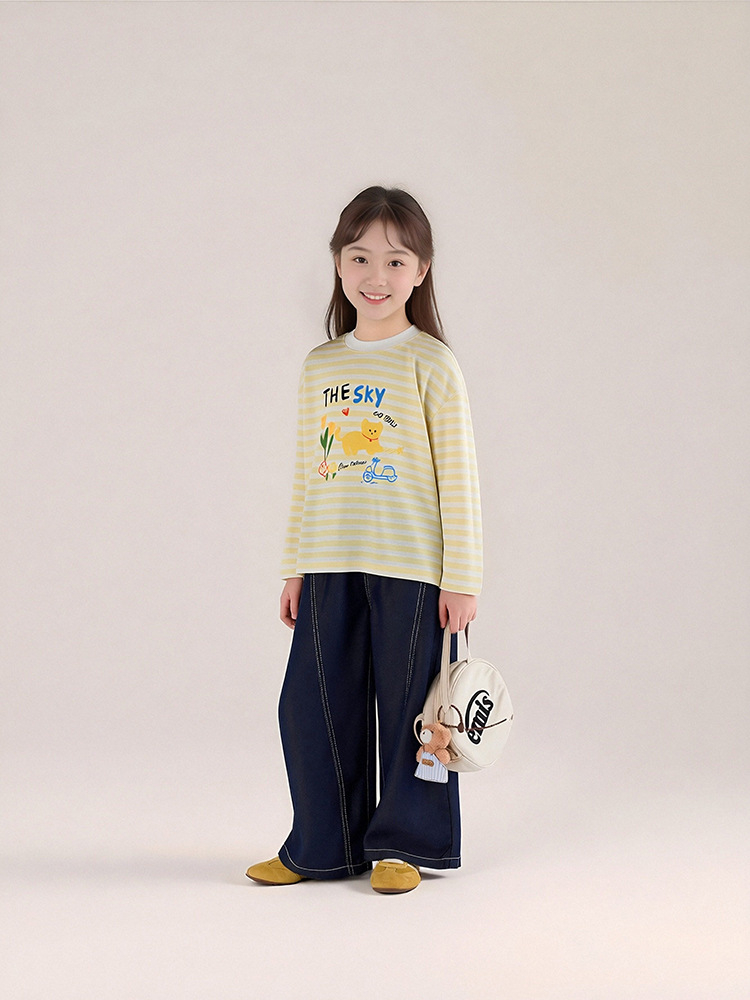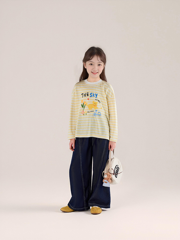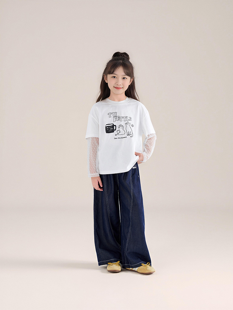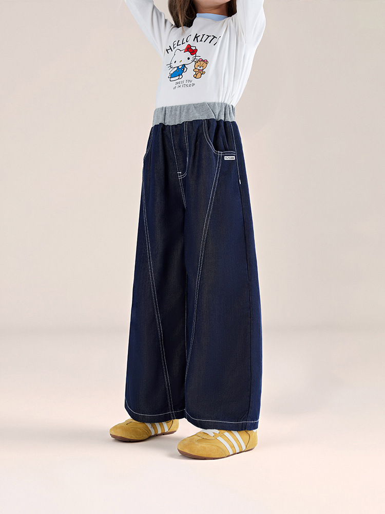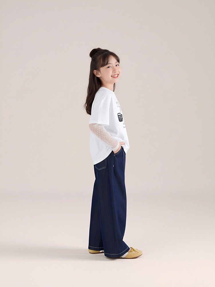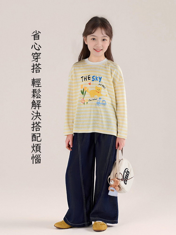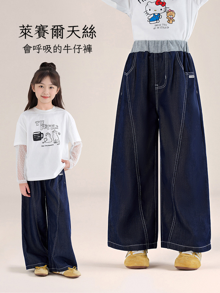 春秋女童萊薩爾天絲牛仔褲闊腿褲休閑長褲