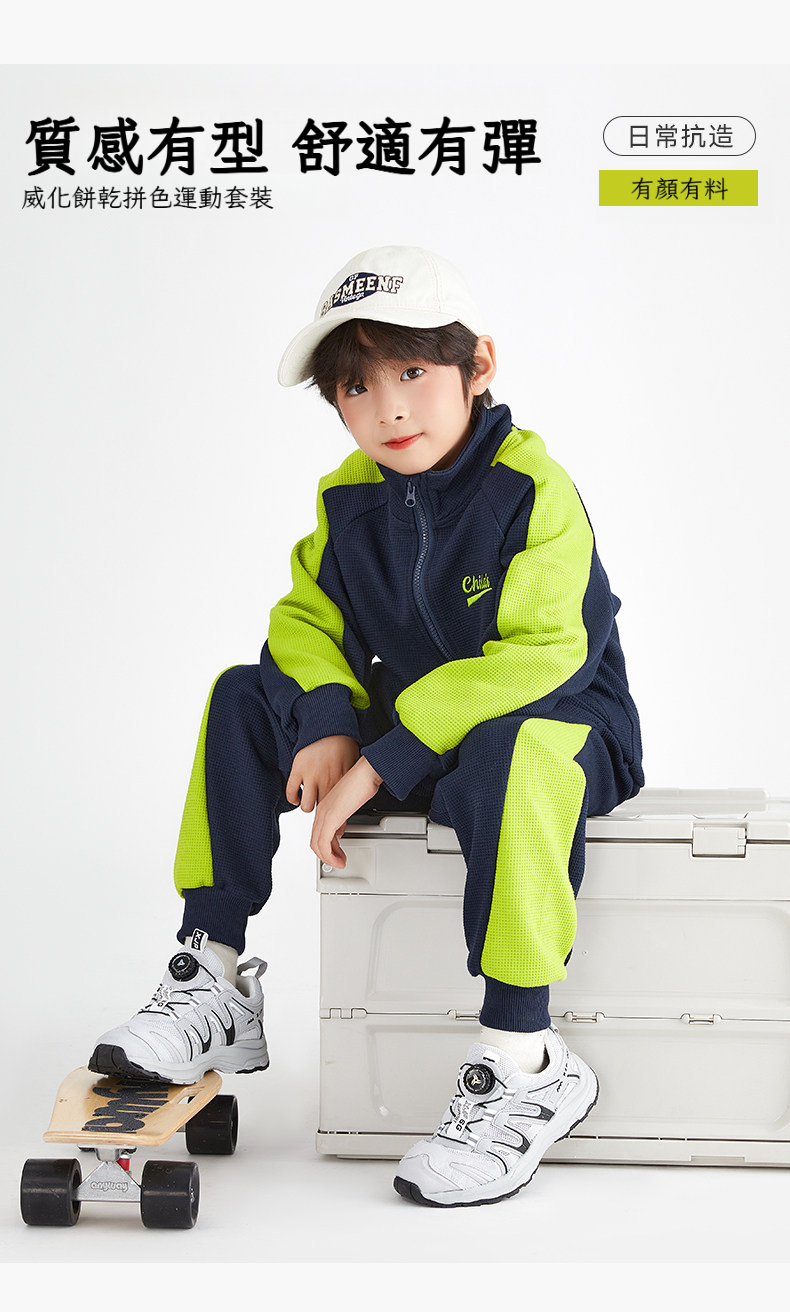 春秋季男童拼接色運動套裝