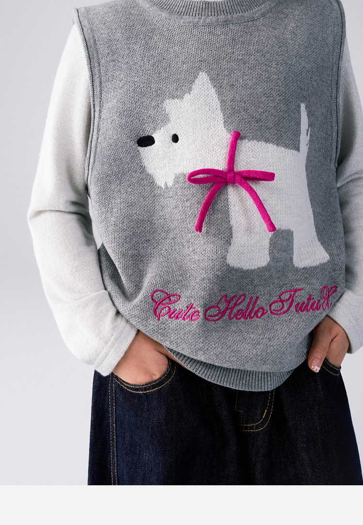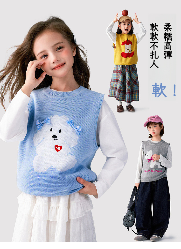 春秋新款女童卡通針織馬甲