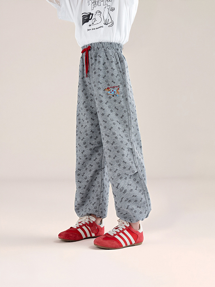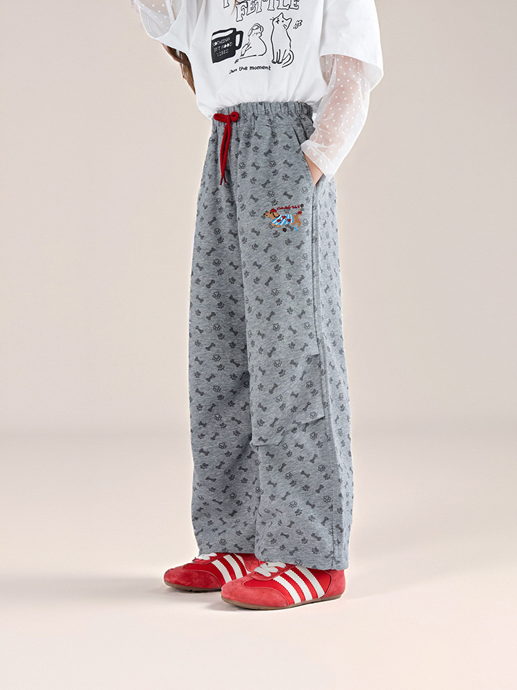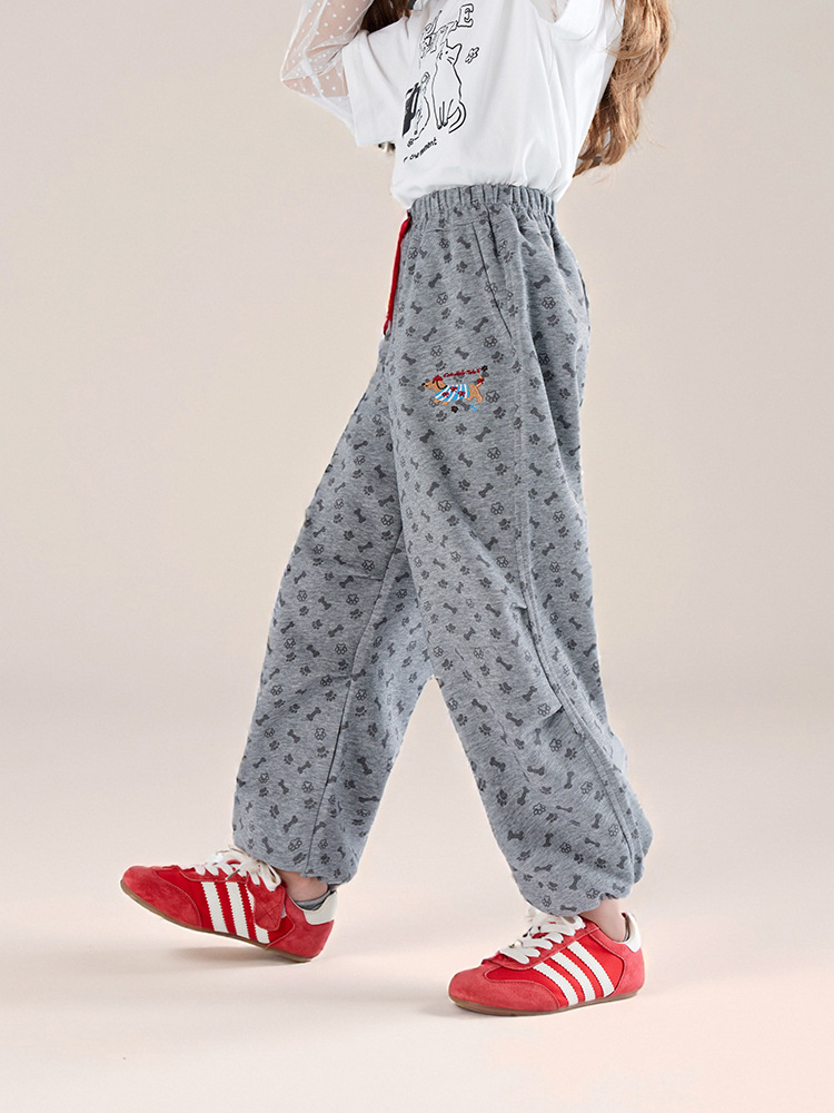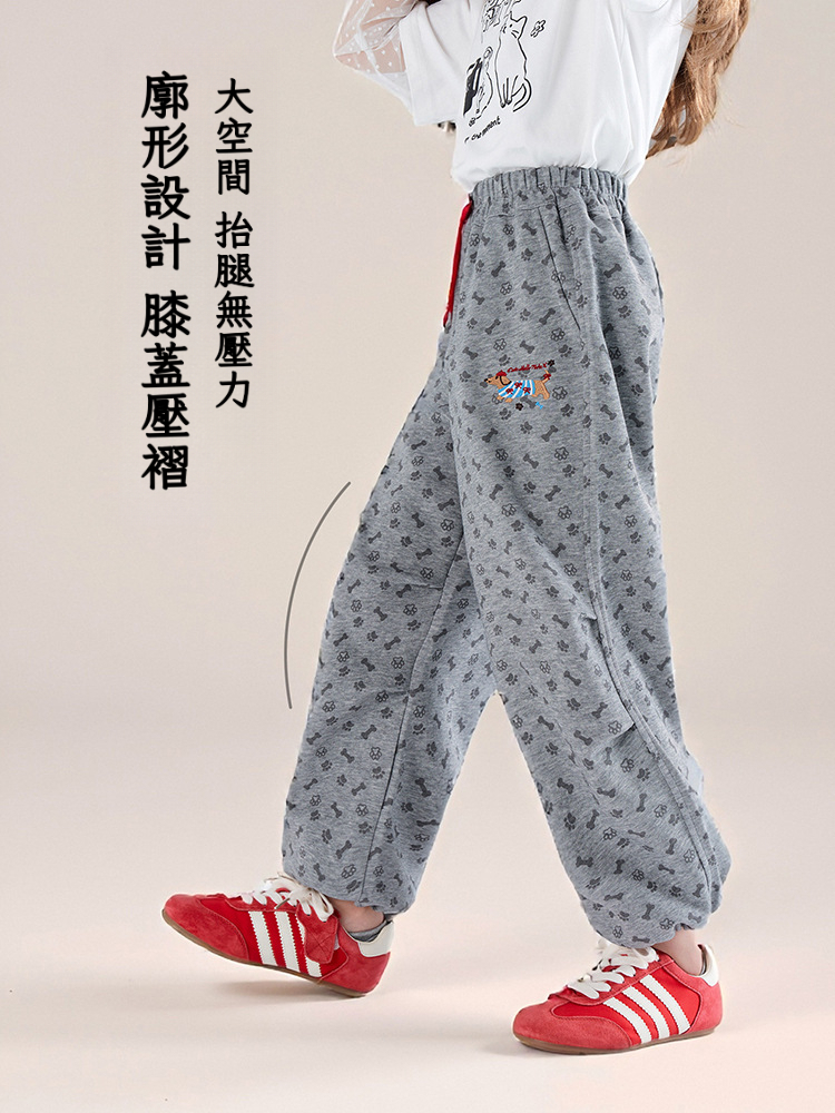 春秋款兒童印花抽繩束腳褲直筒長褲