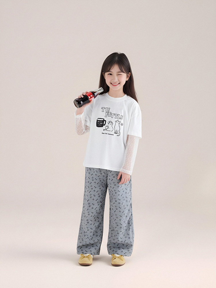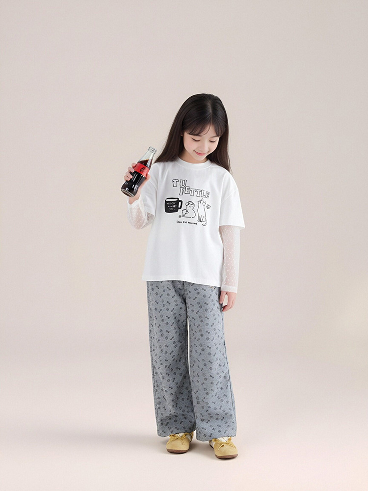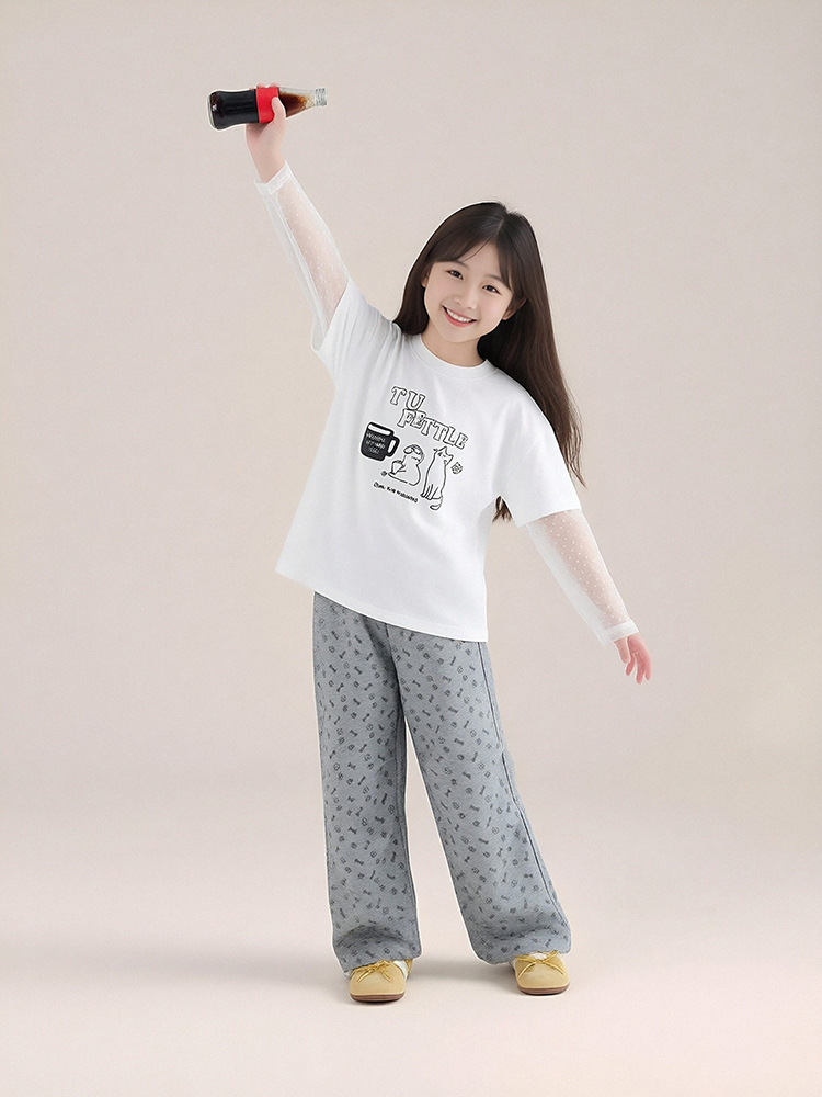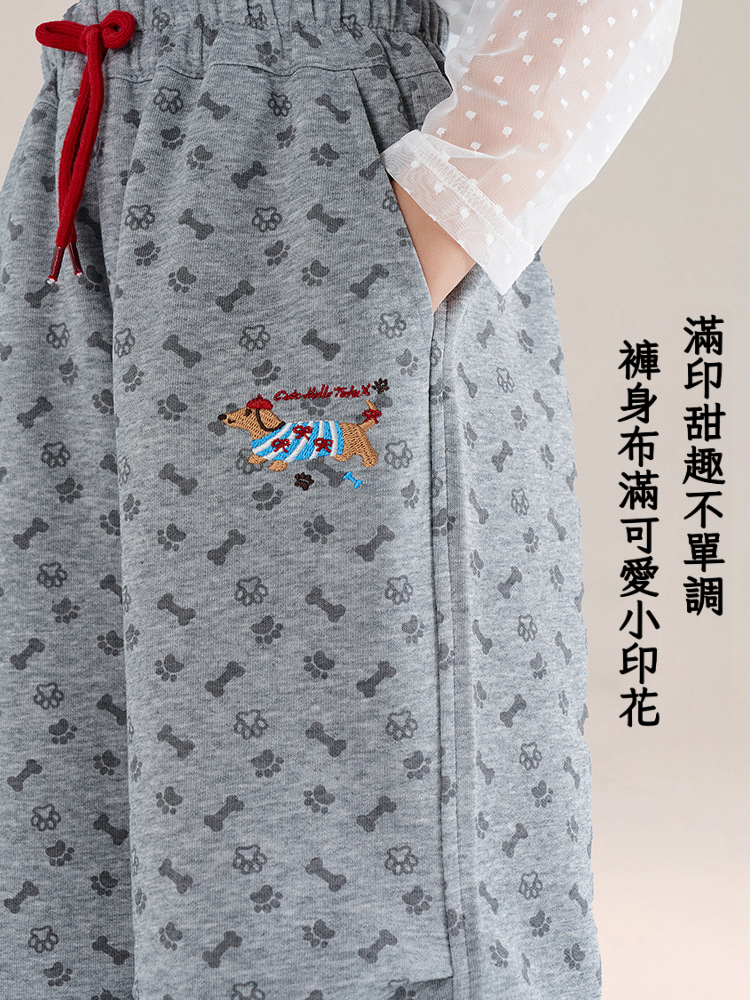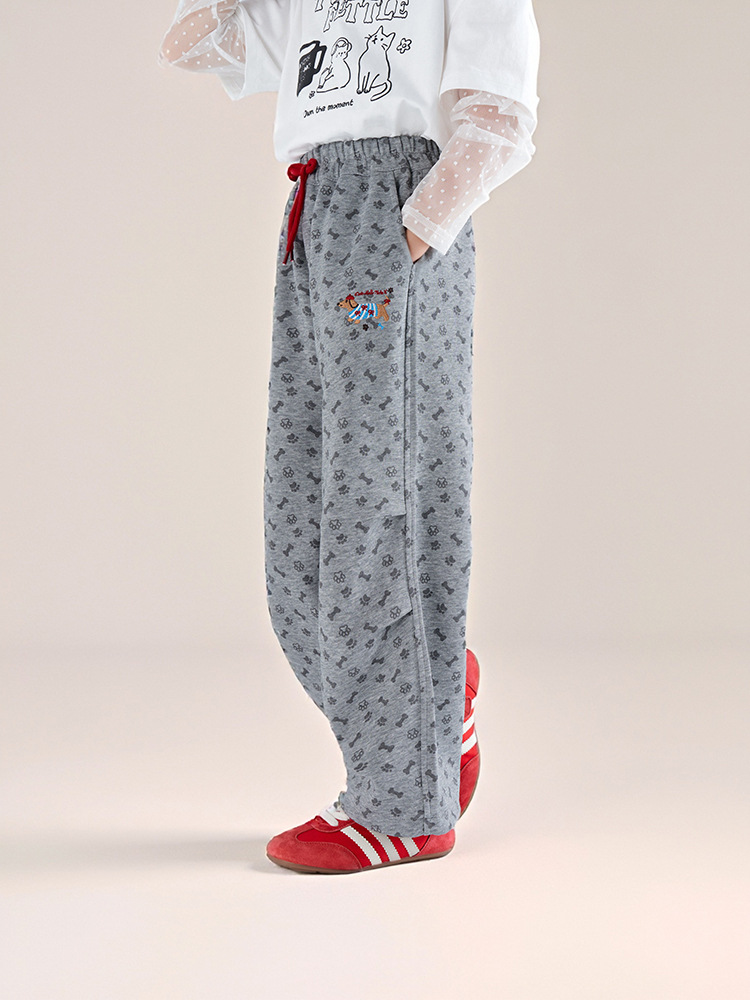 春秋款兒童印花抽繩束腳褲直筒長褲