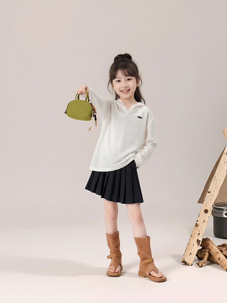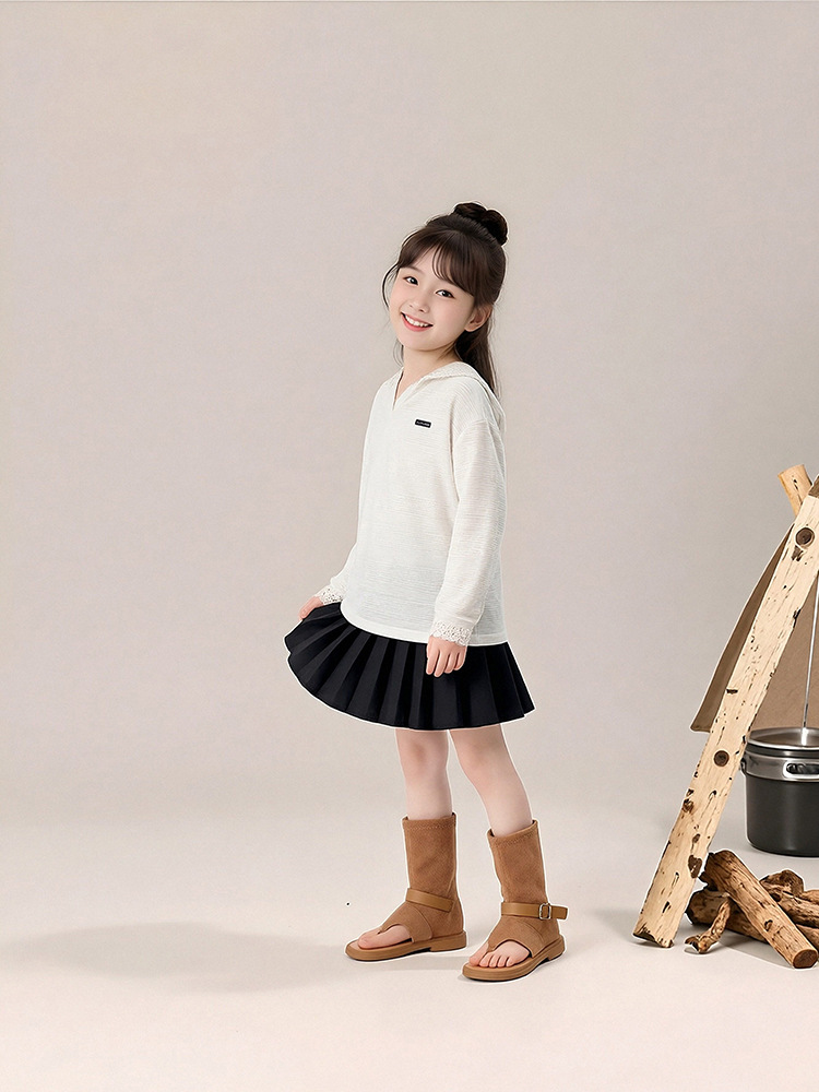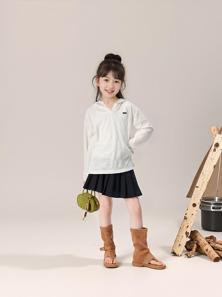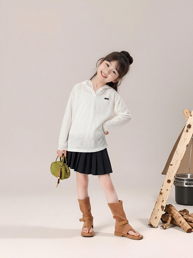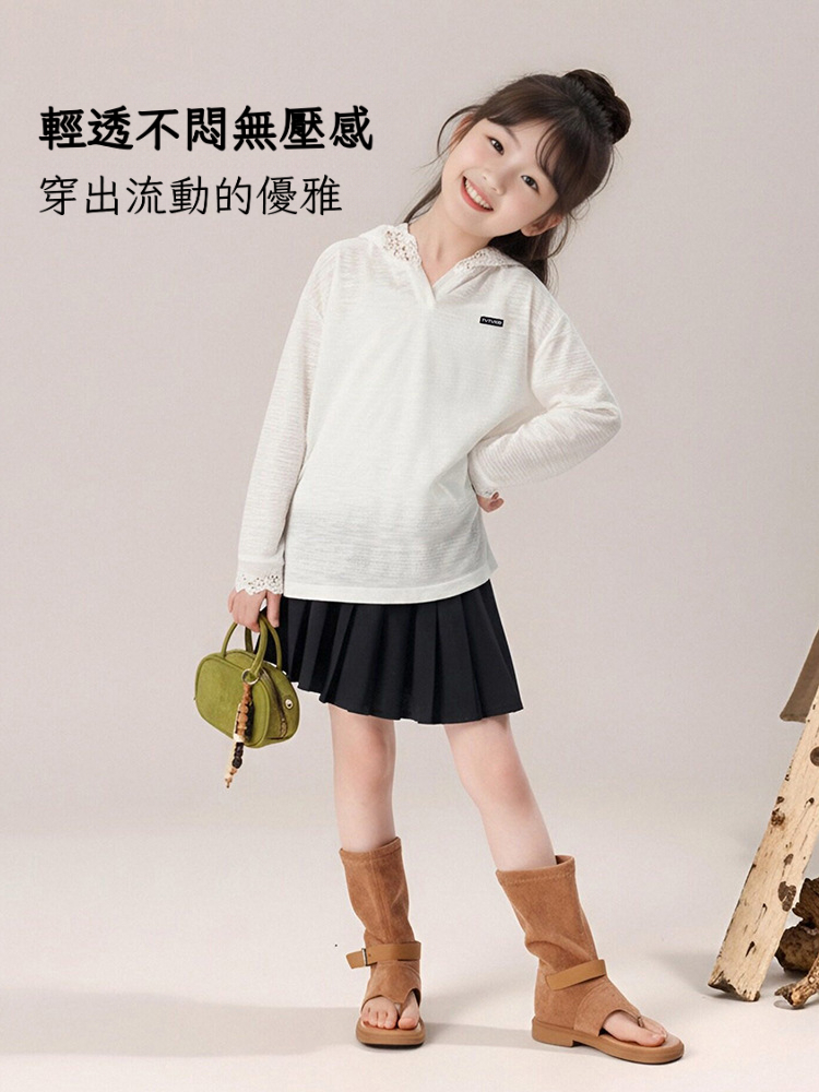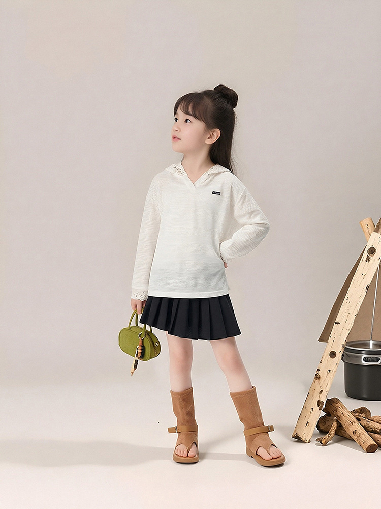 春秋款女童蕾絲長袖打底衫連帽上衣