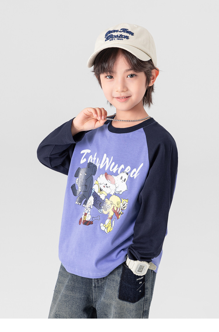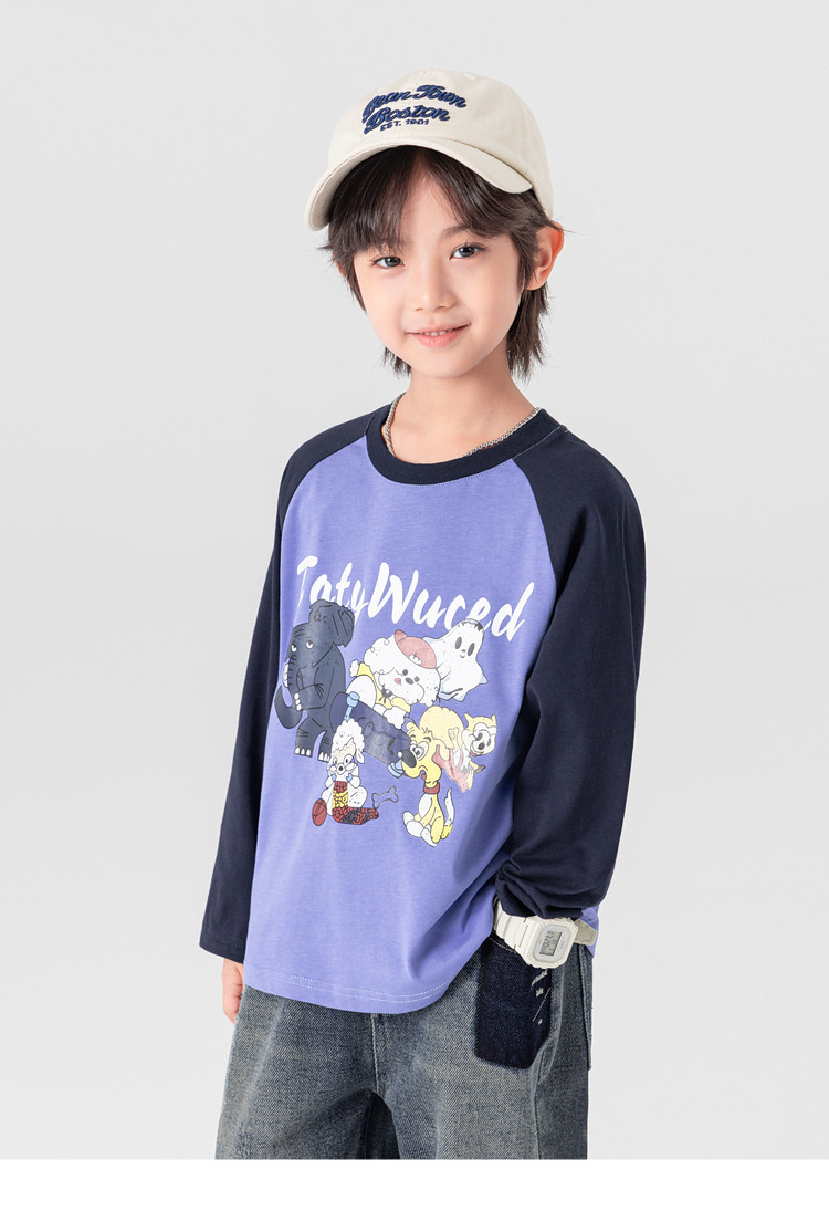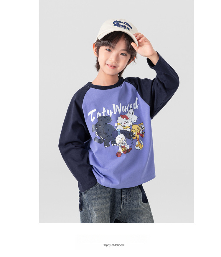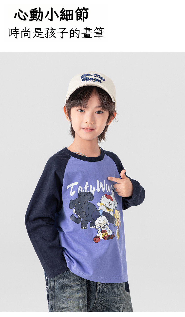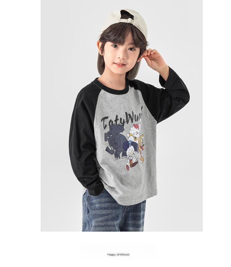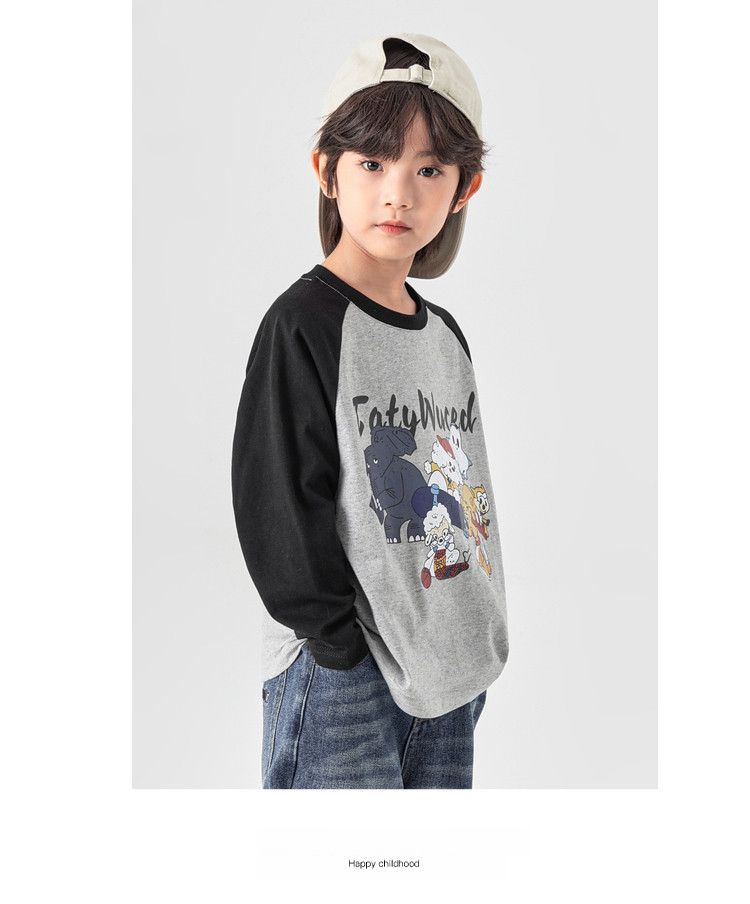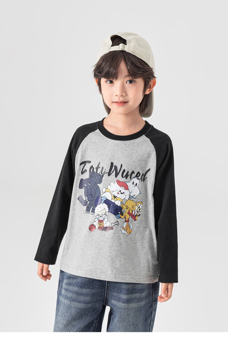 春秋男童動物燙書插肩袖長袖T恤