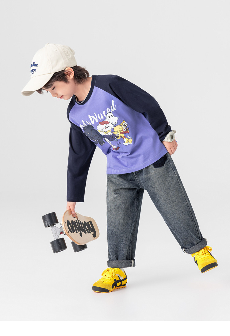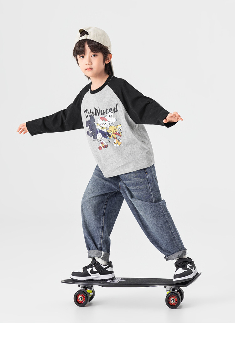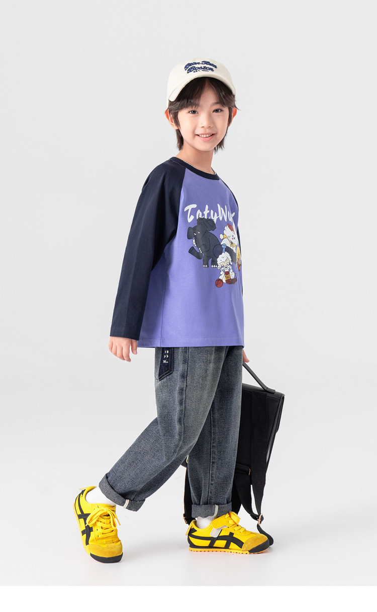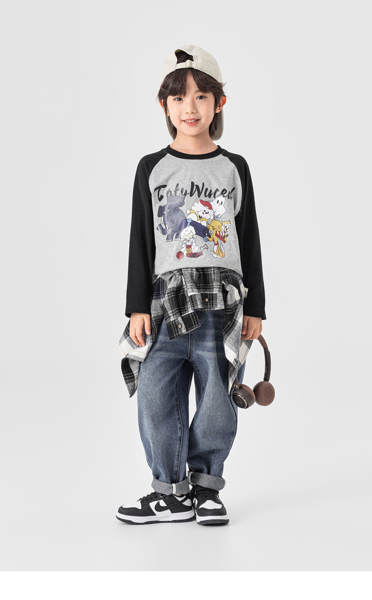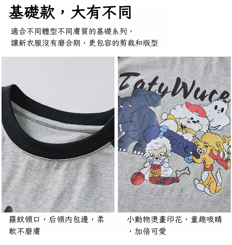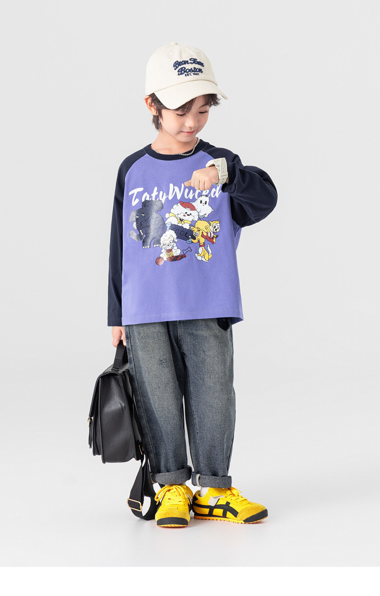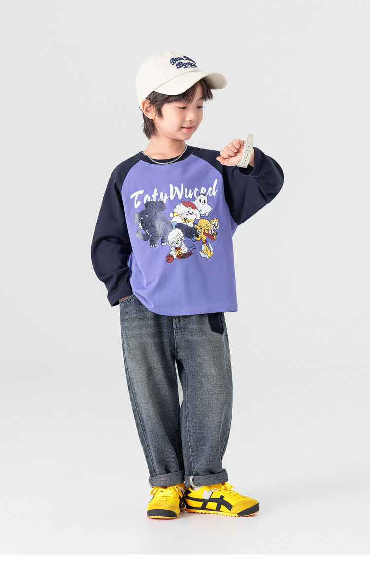 春秋男童動物燙書插肩袖長袖T恤