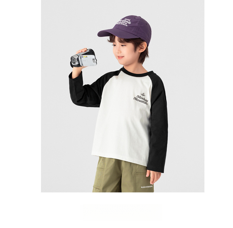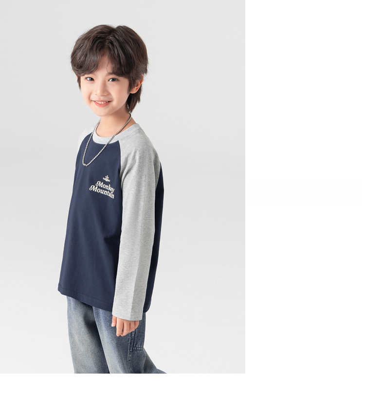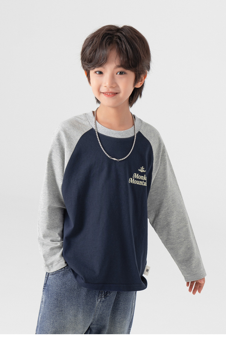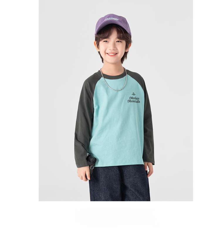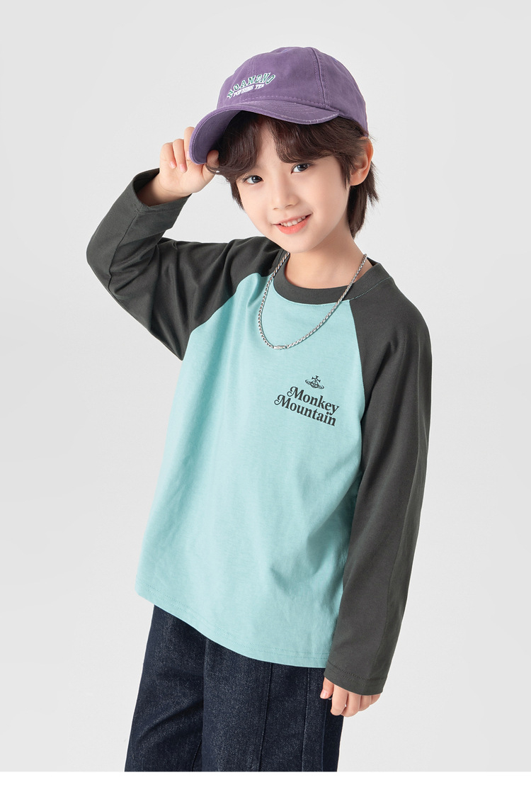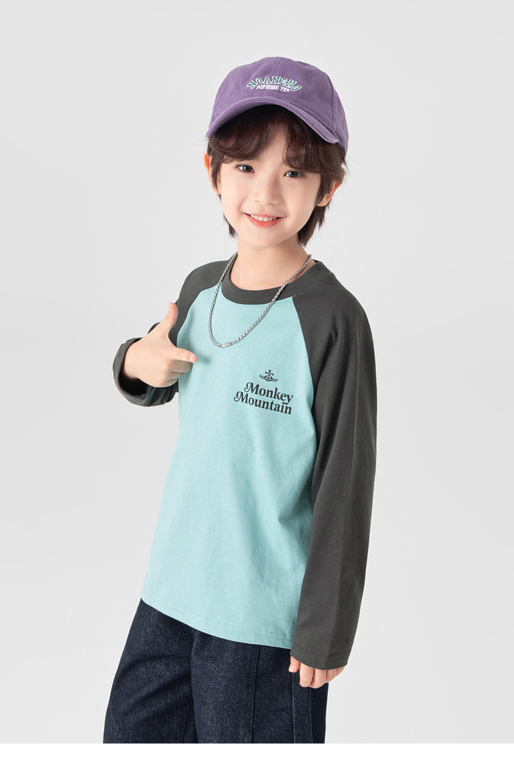 春秋男童純棉插肩袖印花打底上衣