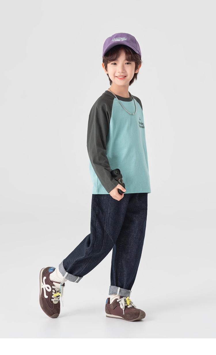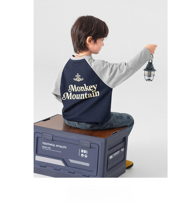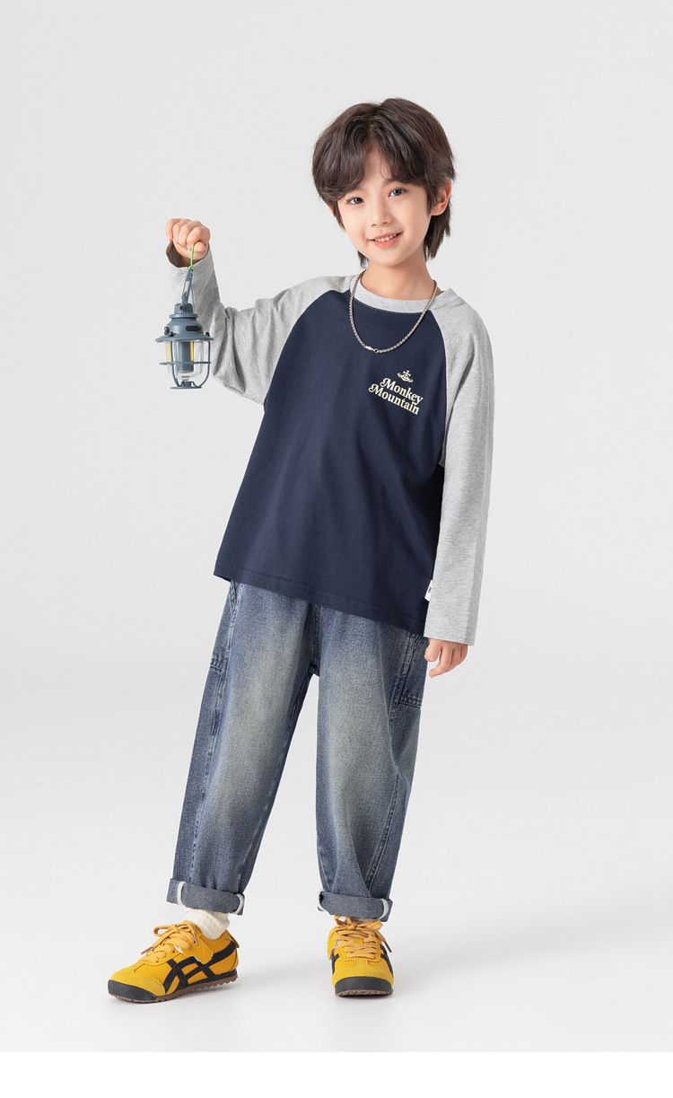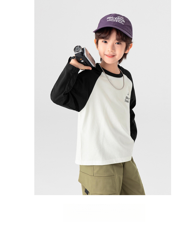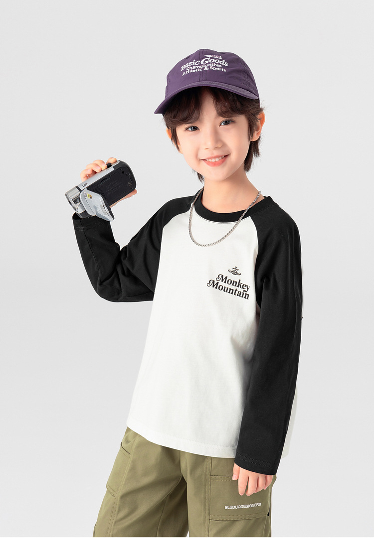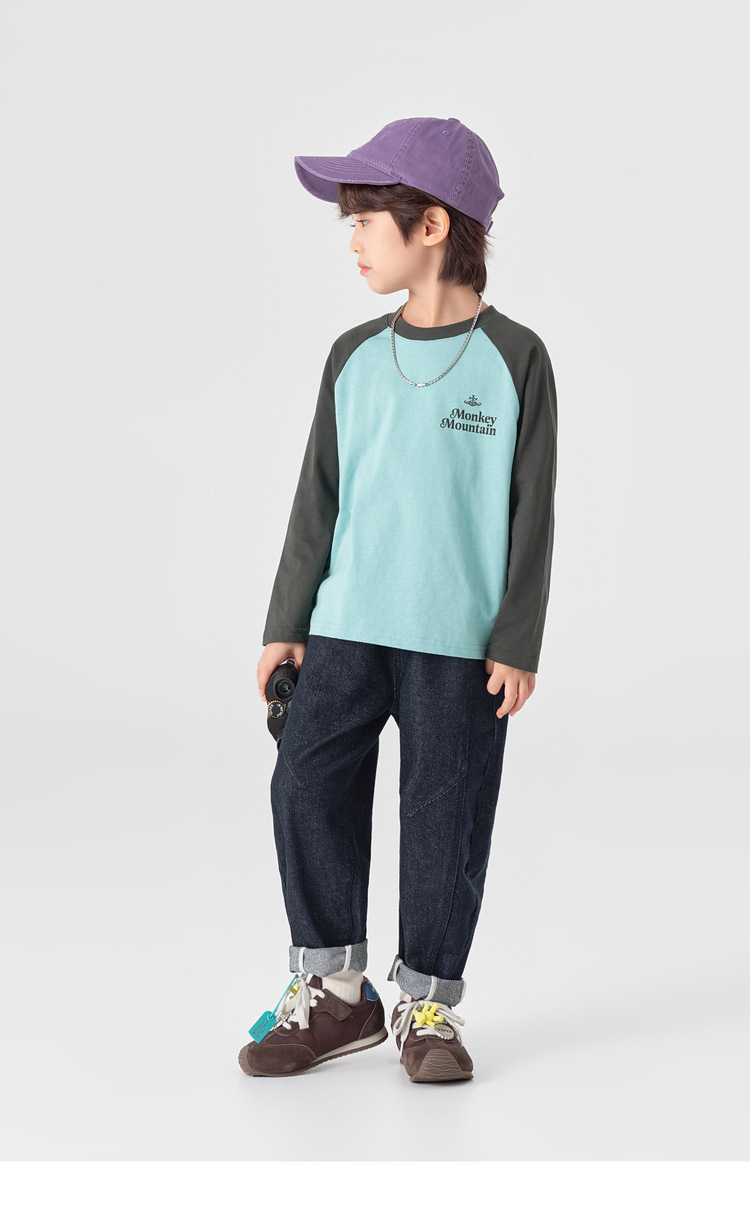 春秋男童純棉插肩袖印花打底上衣