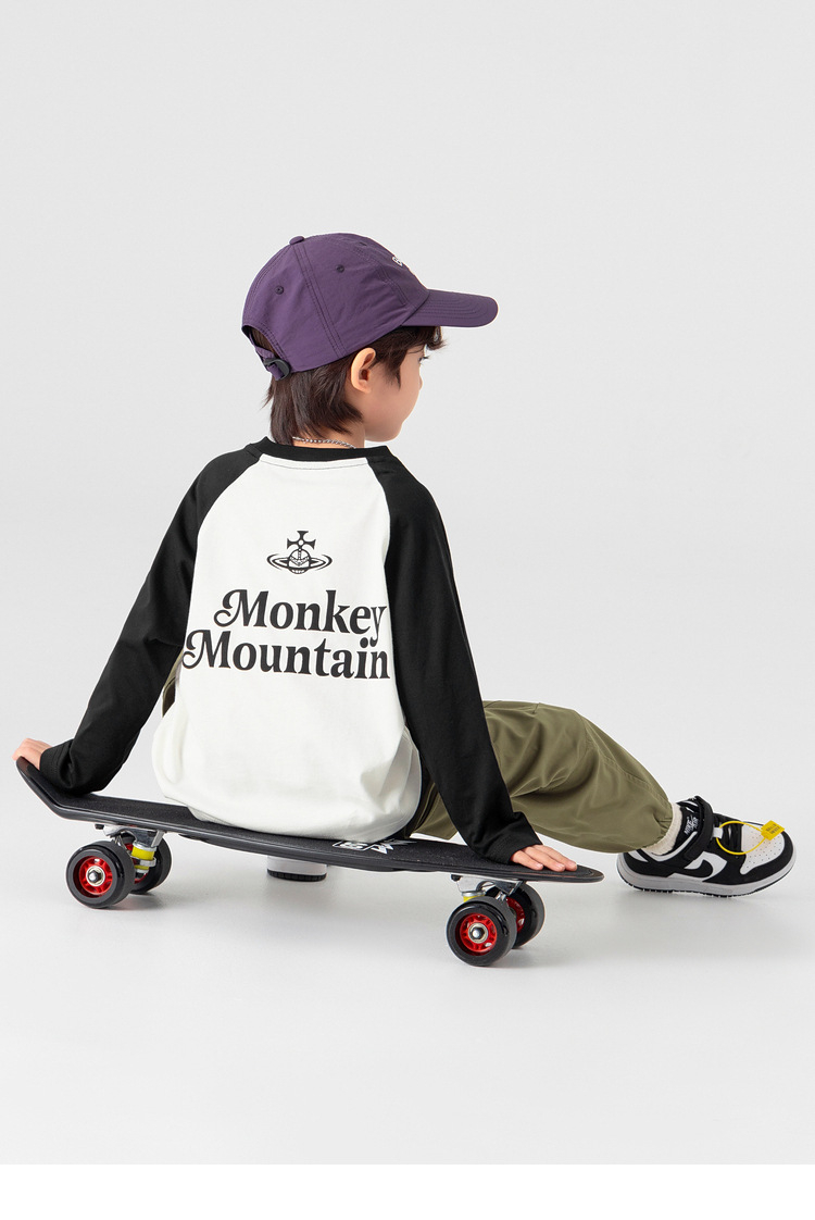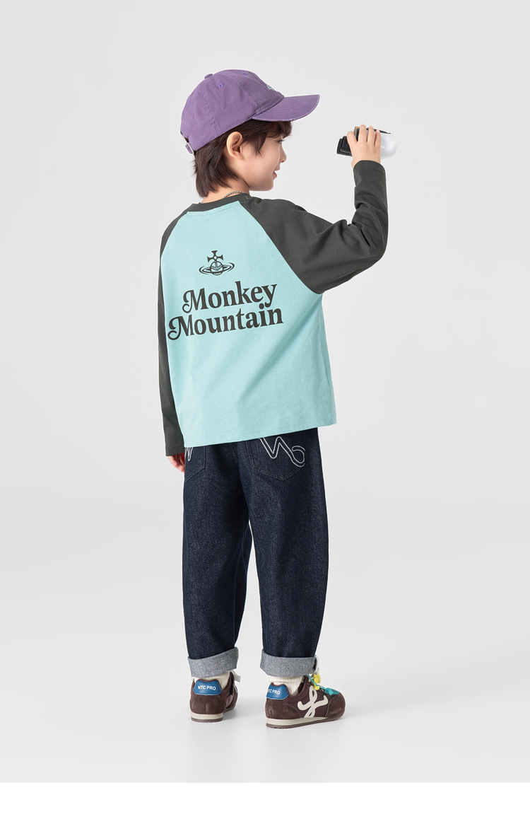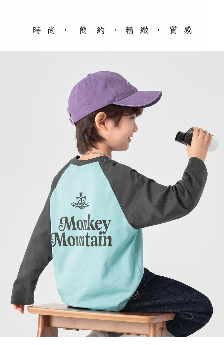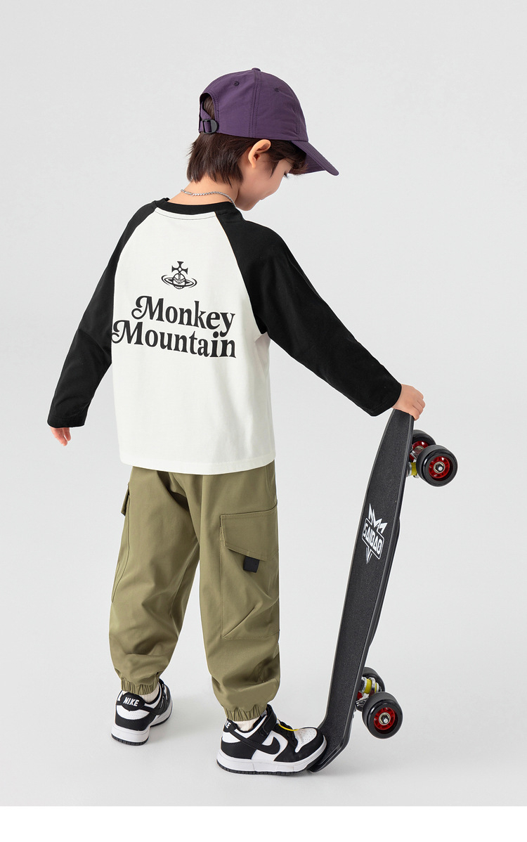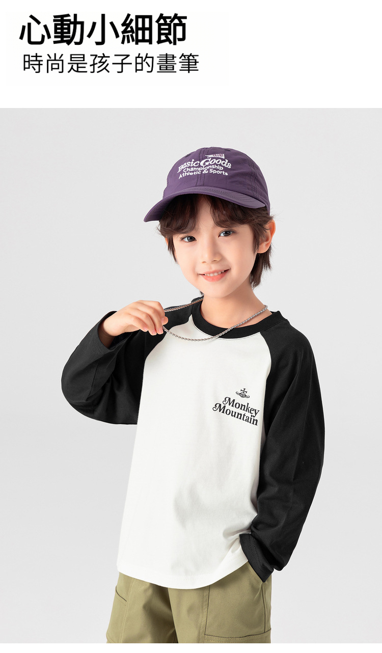 春秋男童純棉插肩袖印花打底上衣