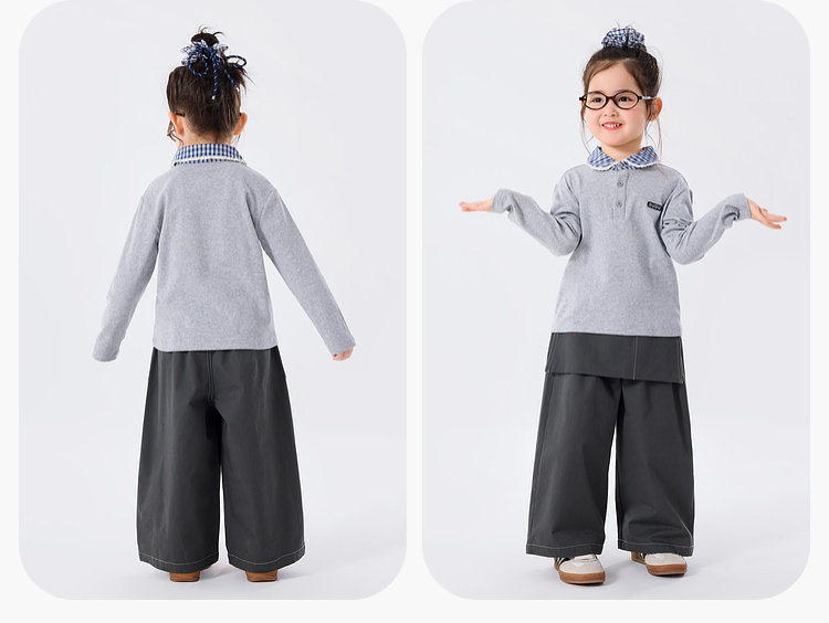 春裝女童學院風格紋領T恤