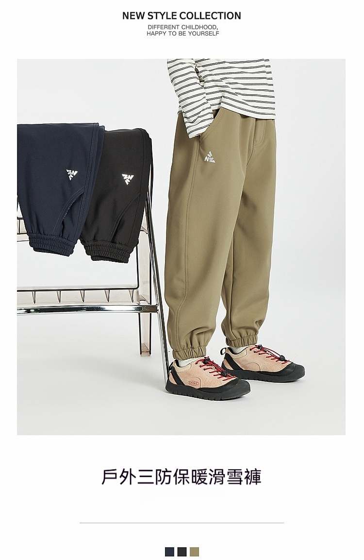 男童三防加絨軟殼滑雪褲