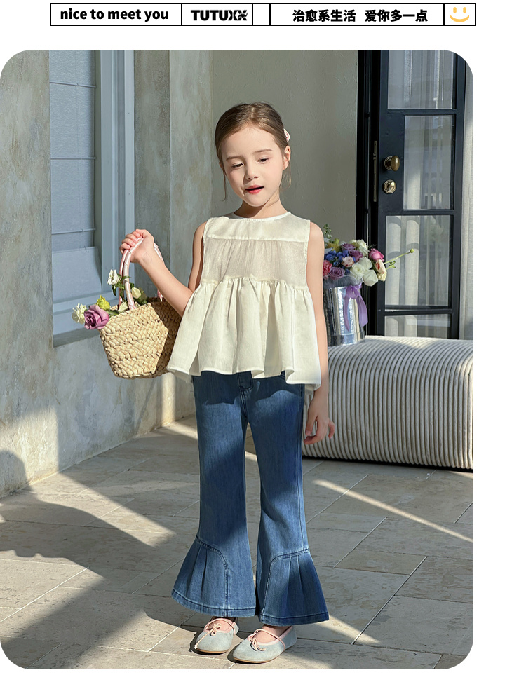 男童女童春秋韓版甜美時尚喇叭褲